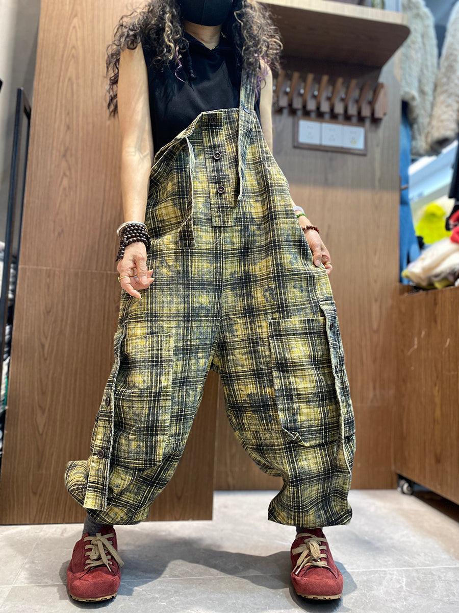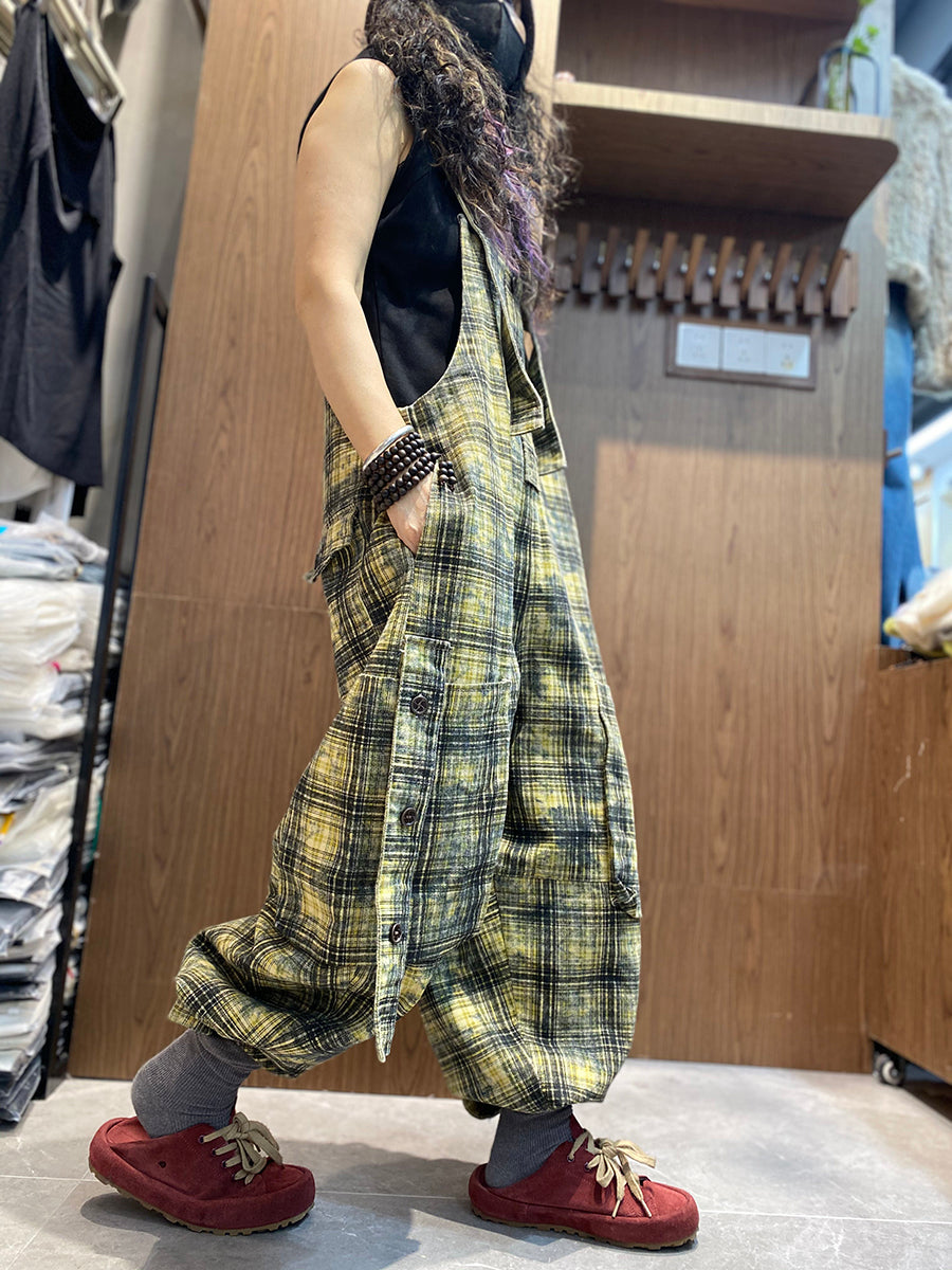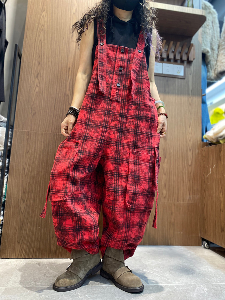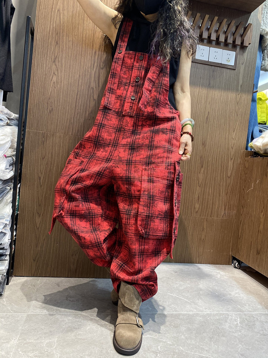 Kvinder Forår Vintage Ternet Løse Jumpsuits