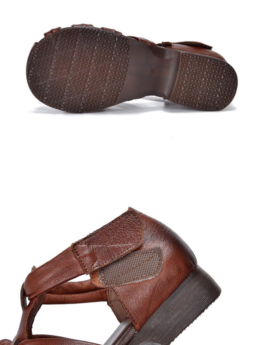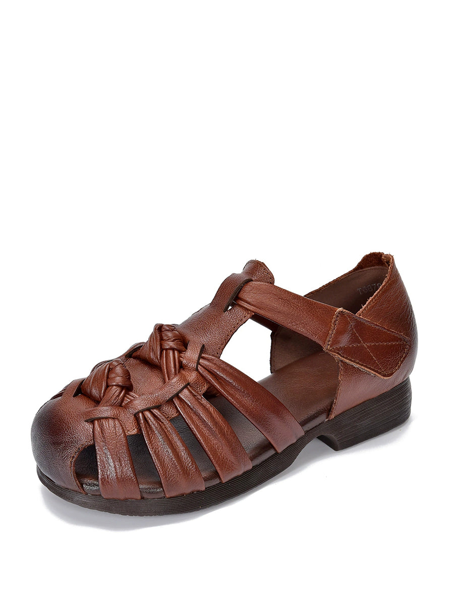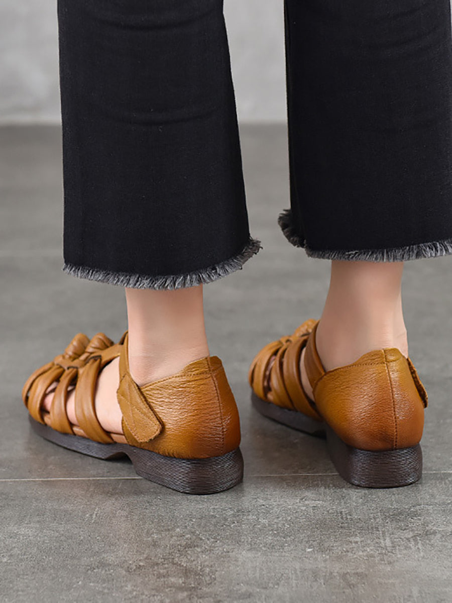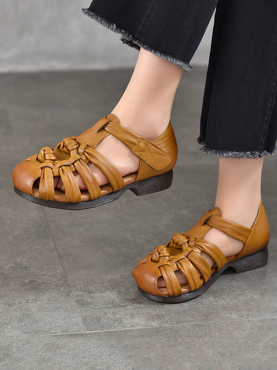 Kvinder Sommer Ægte Læder Vævet Lav Hæl Sandaler