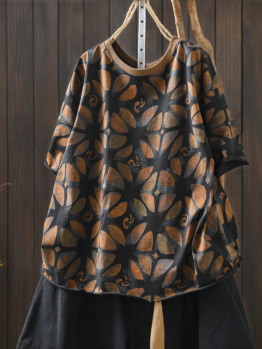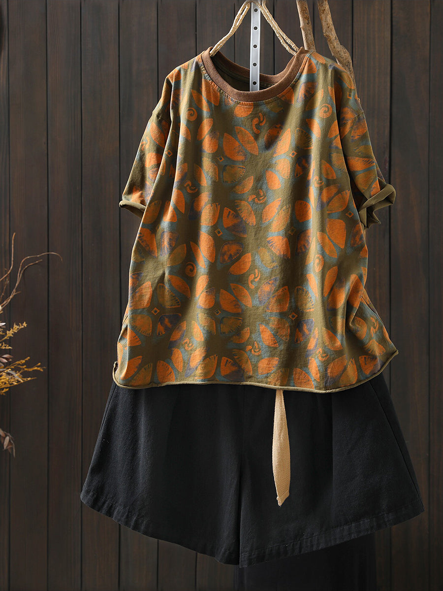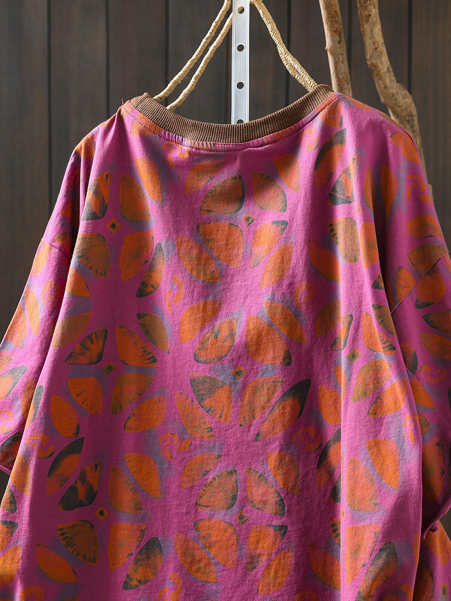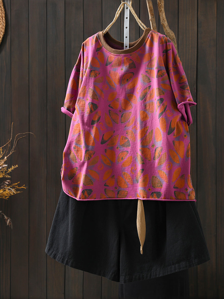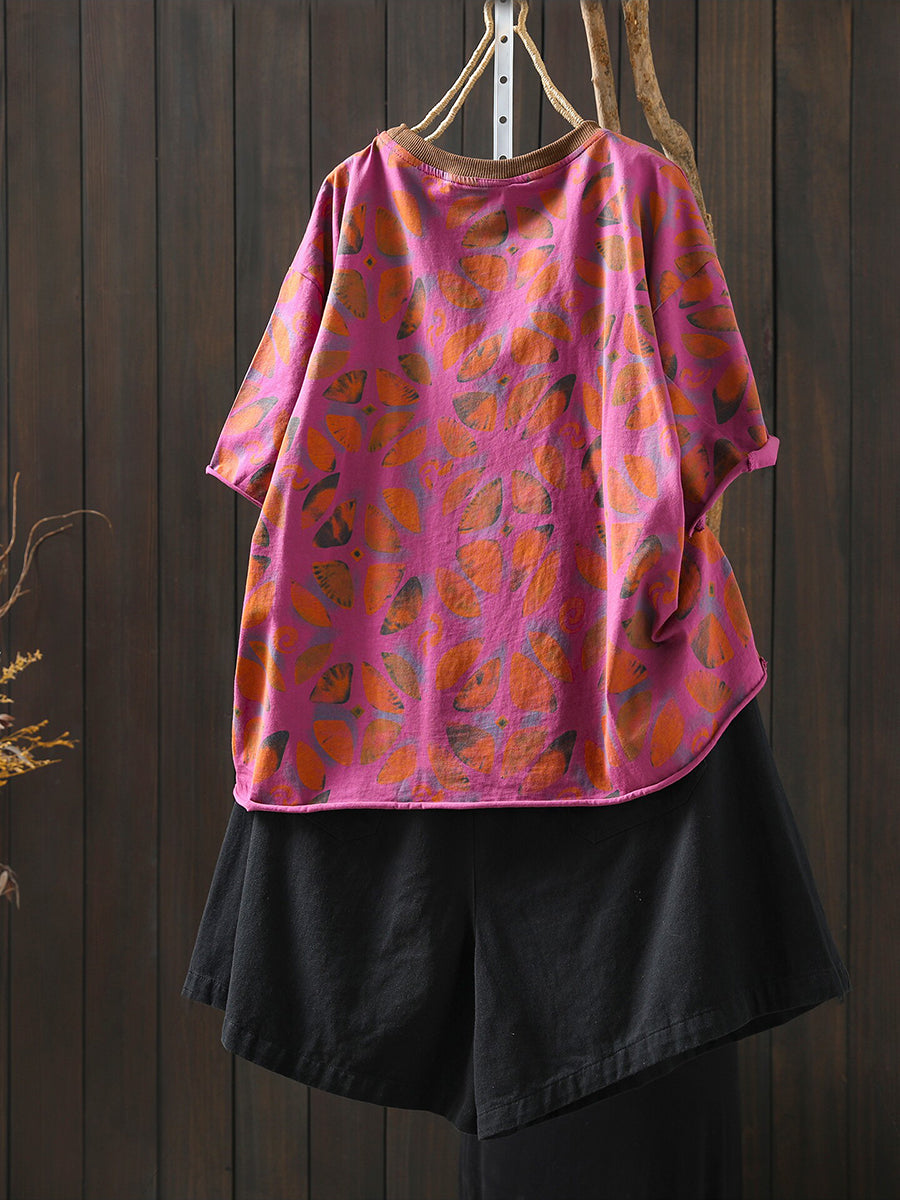 Dame Sommer Kunstnerisk Blomster Bomuldsskjorte