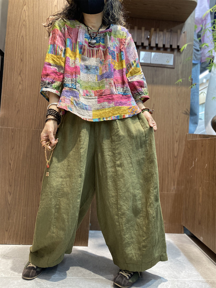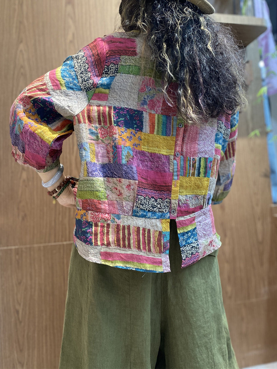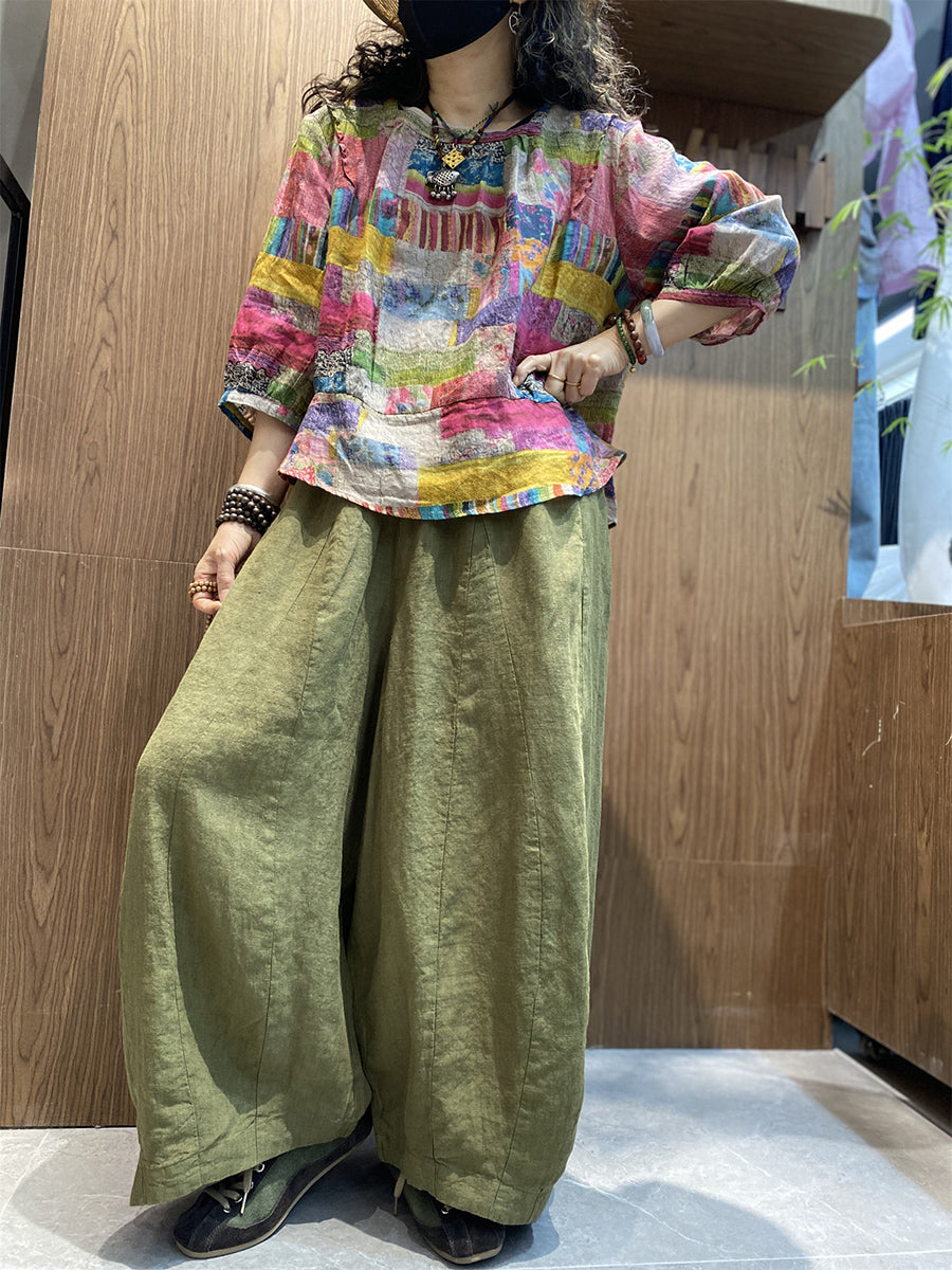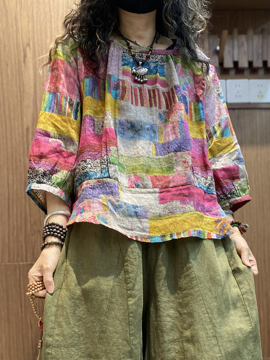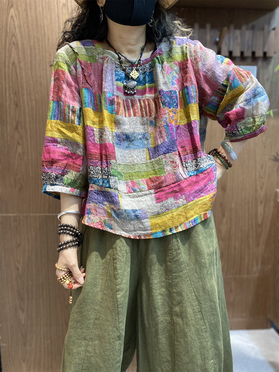 Kvinder Sommer Kunstnerisk Patchwork O-hals Bluse