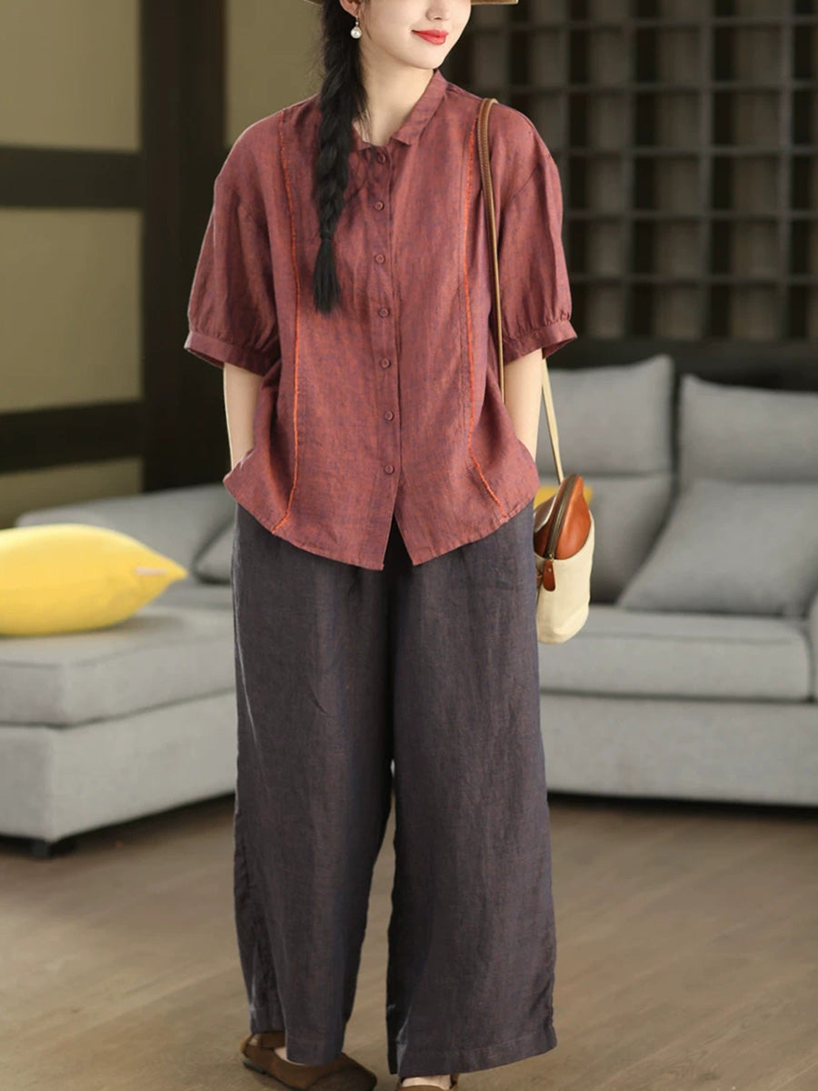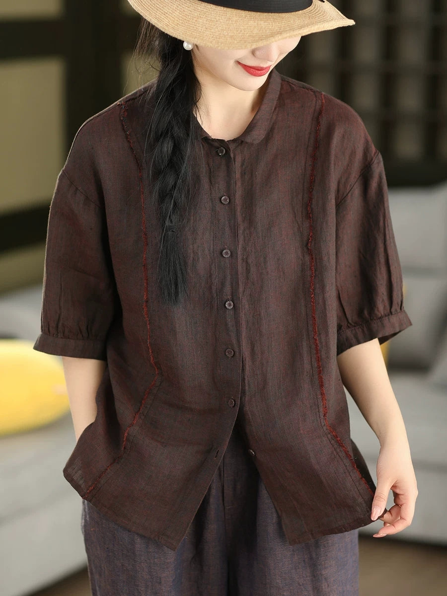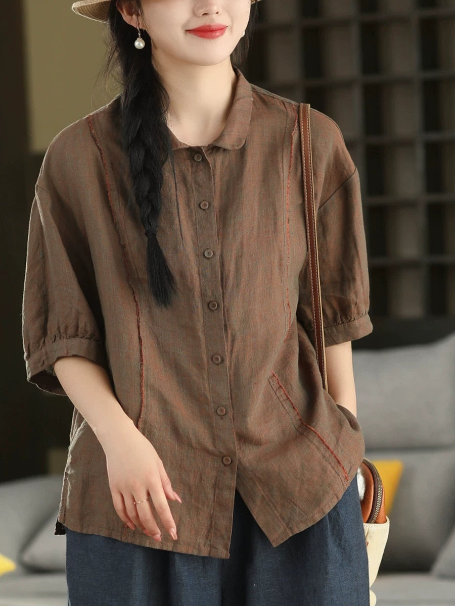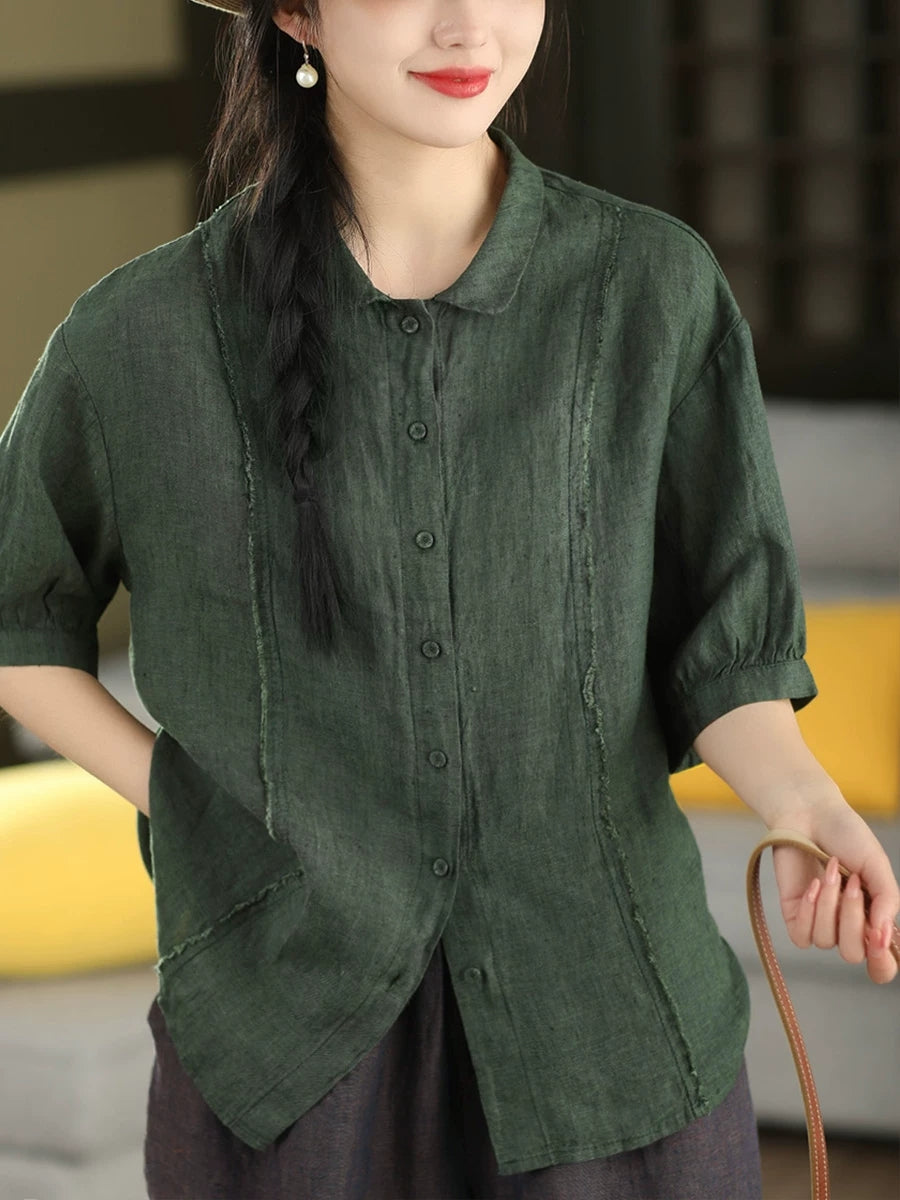 Kvinder Sommer Kunstnerisk Spliced 100% Hørbluse