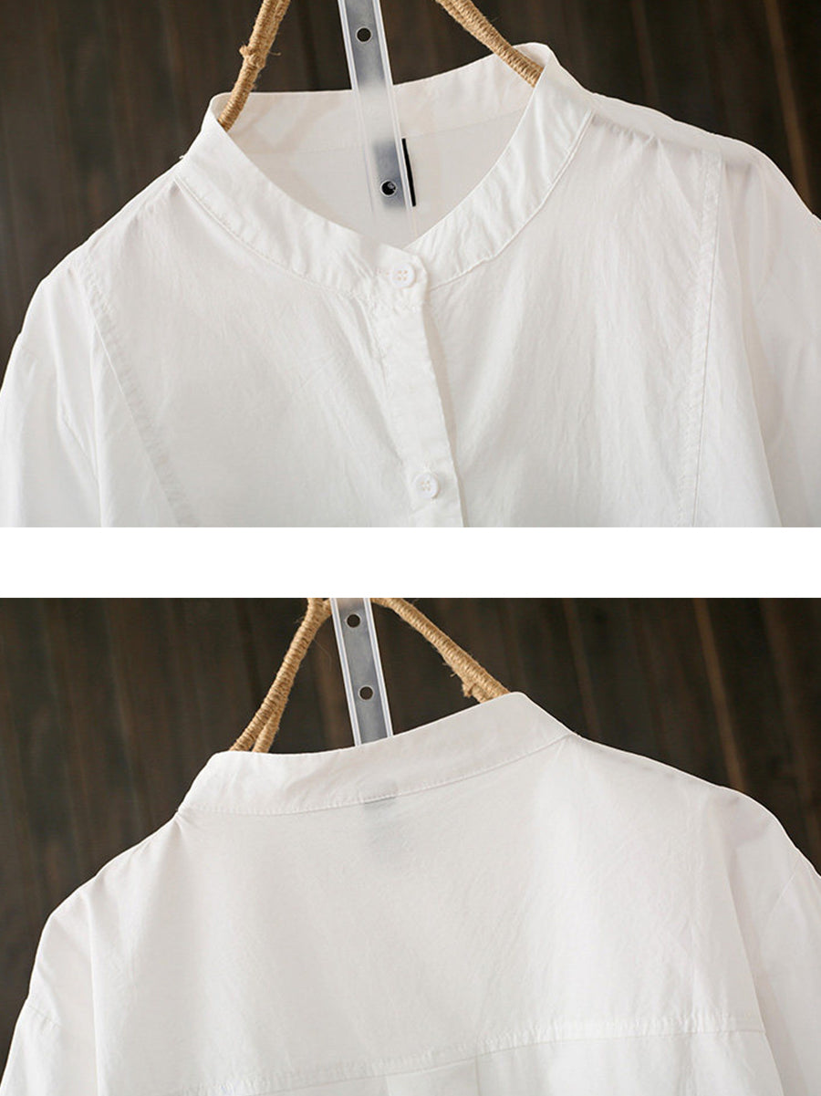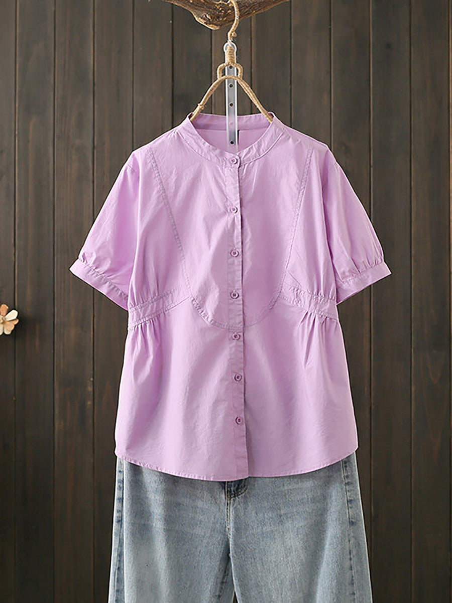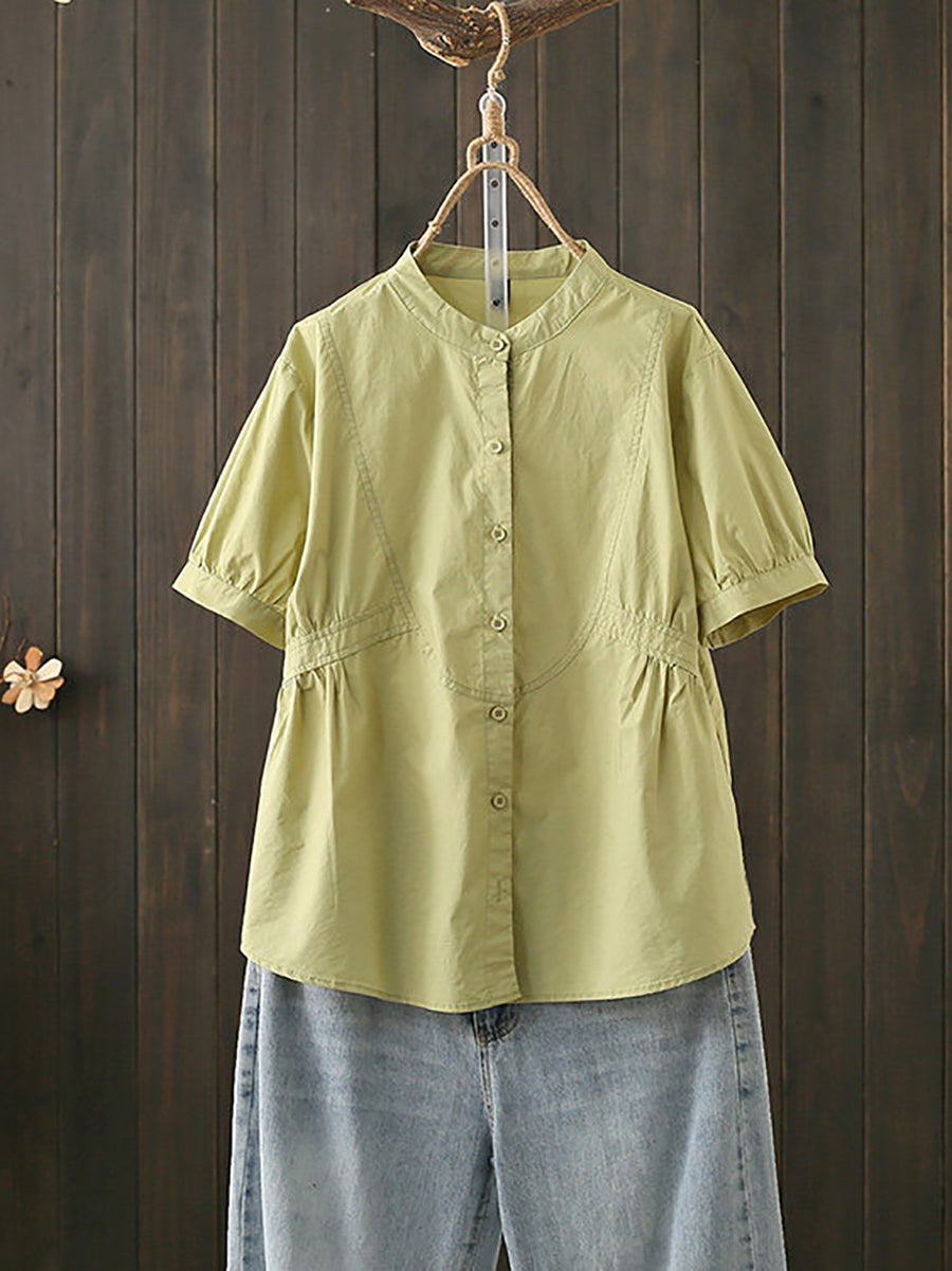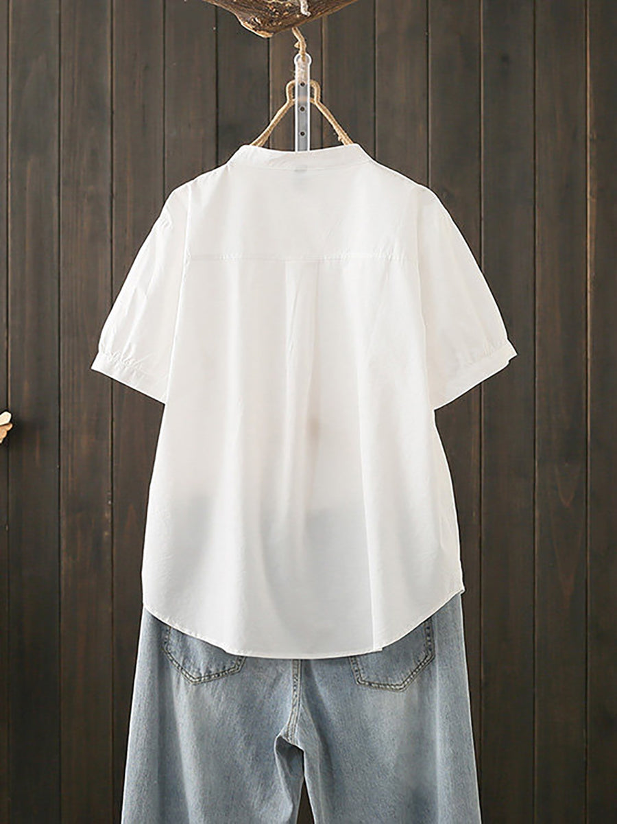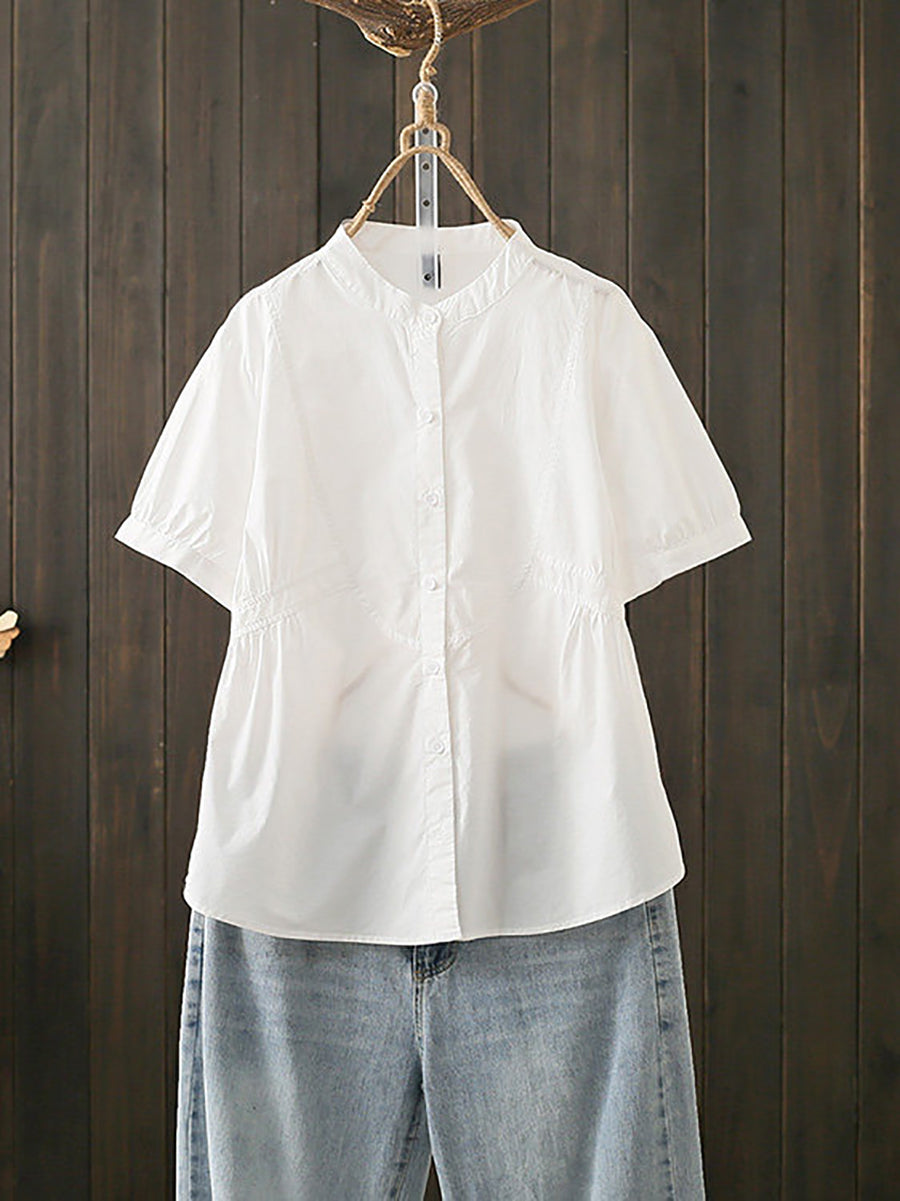 Kvinder Sommer Kunstnerisk Stand Collar Bomuldsbluse