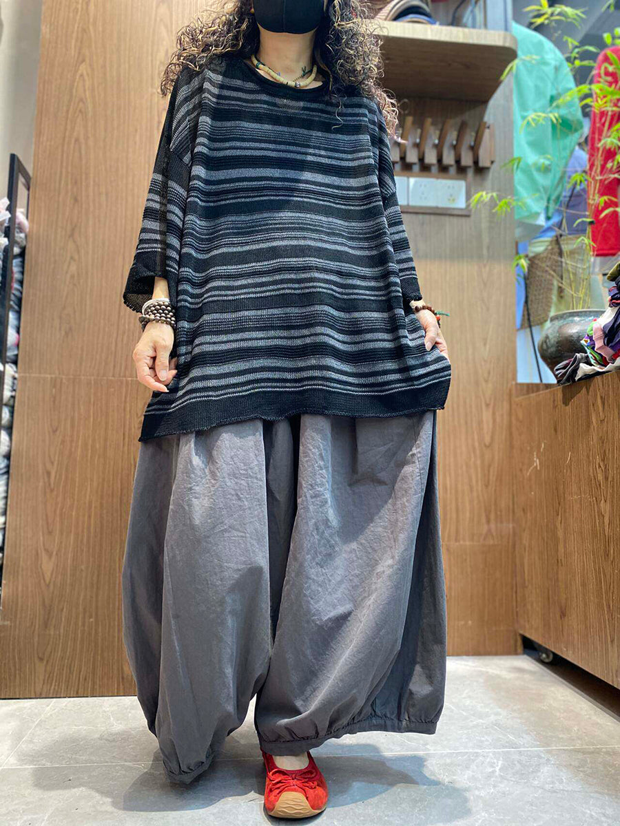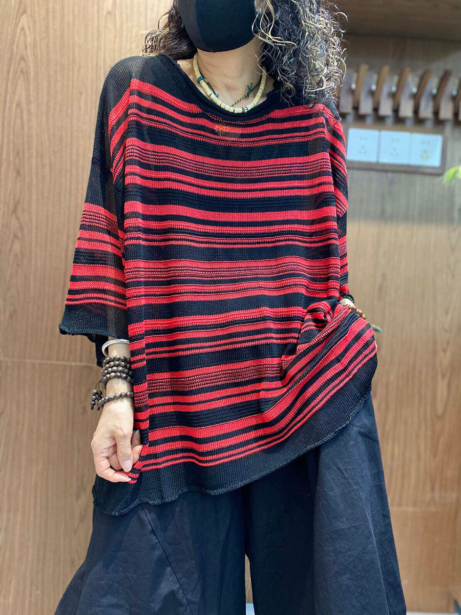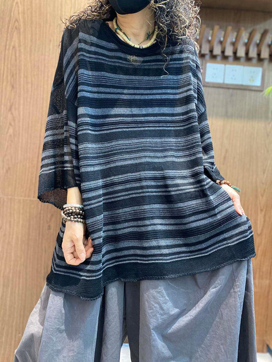 Kvinder Sommer Kunstnerisk Stribet O-Hals Strikket Bluse