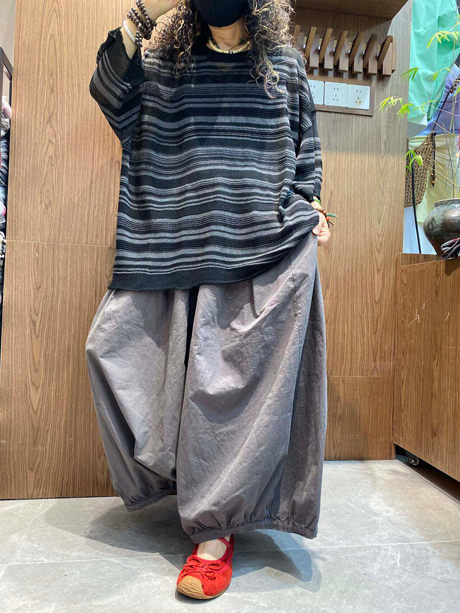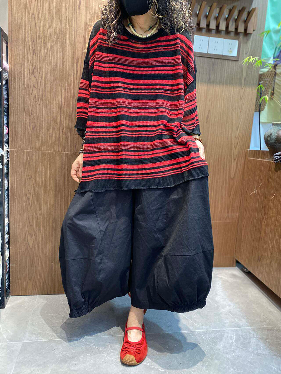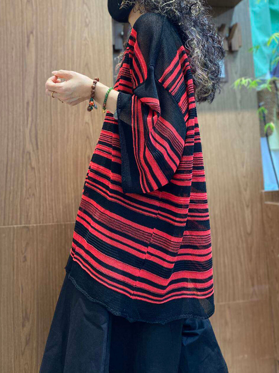 Kvinder Sommer Kunstnerisk Stribet O-Hals Strikket Bluse