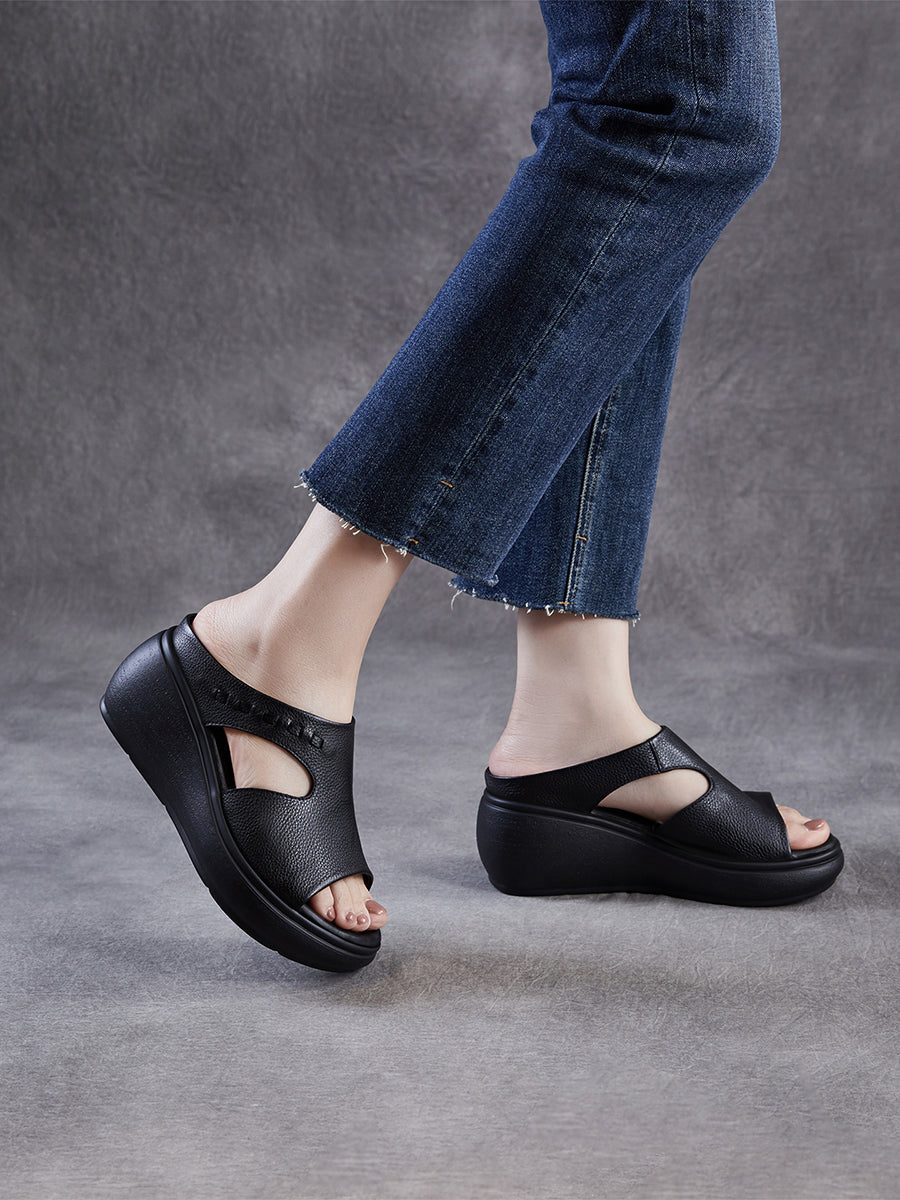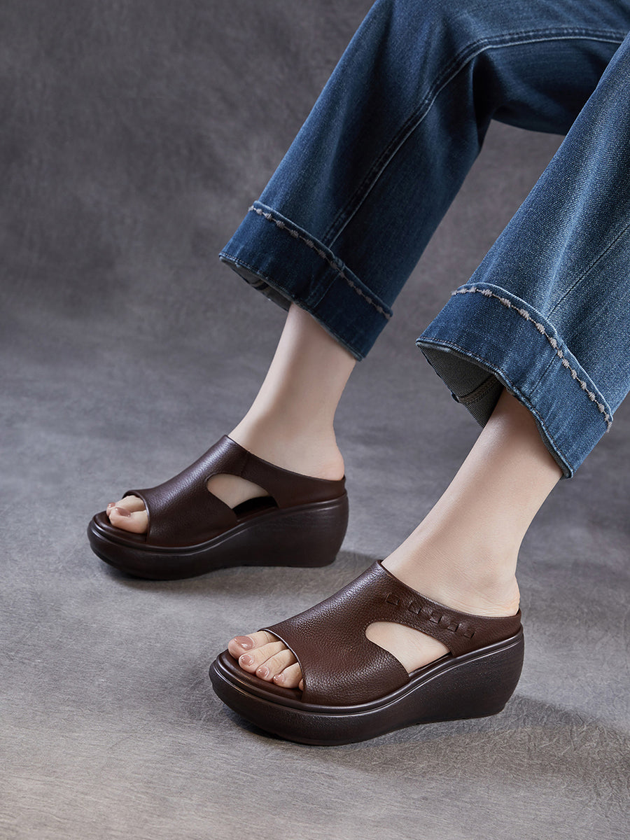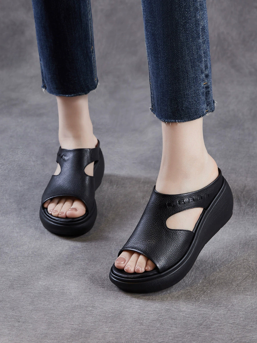 Kvinder Sommer Casual Ægte Læder Platform Sandaler