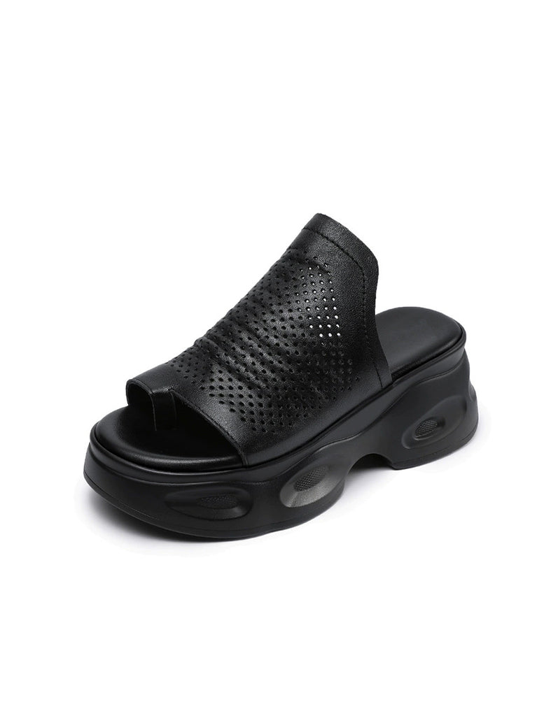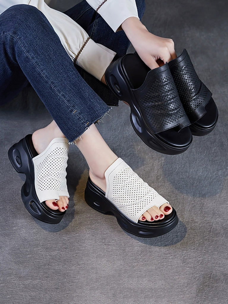 Kvinder Sommer Casual Ægte Læder Platform Tøfler