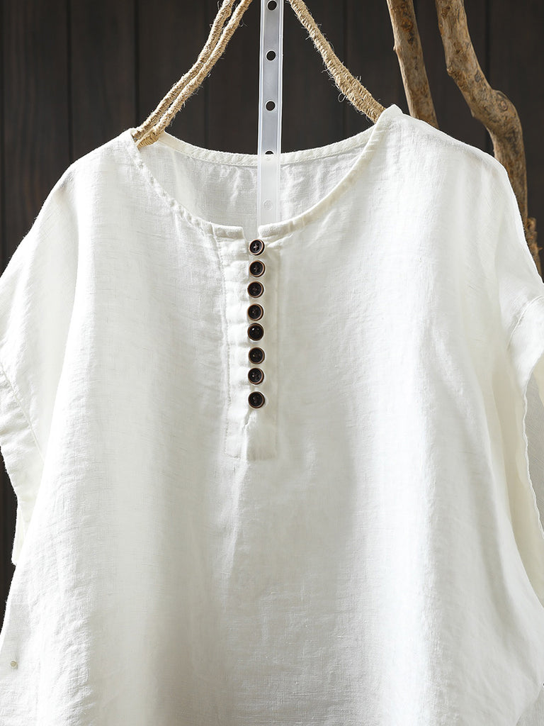 Kvinder Sommer Casual Ren Farve O-hals 100% Hørskjorte