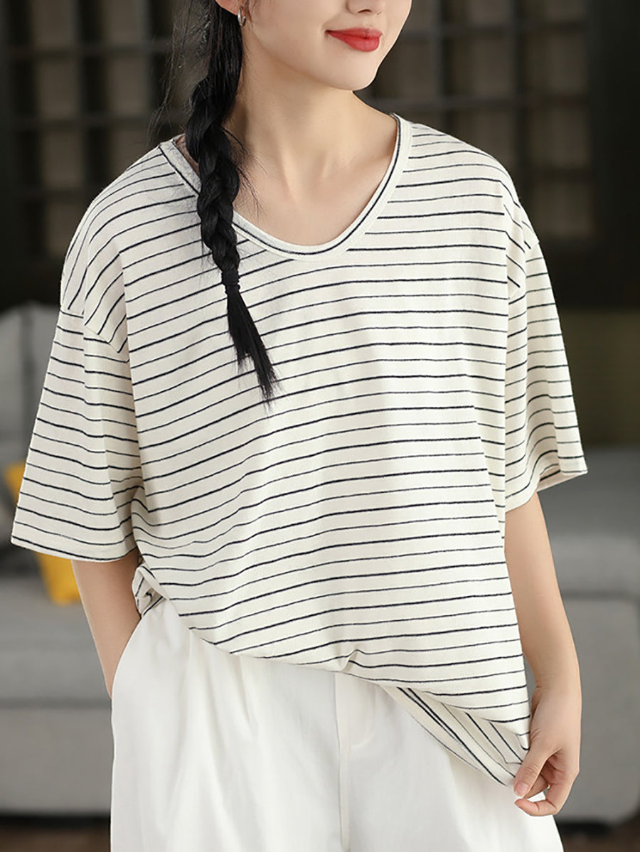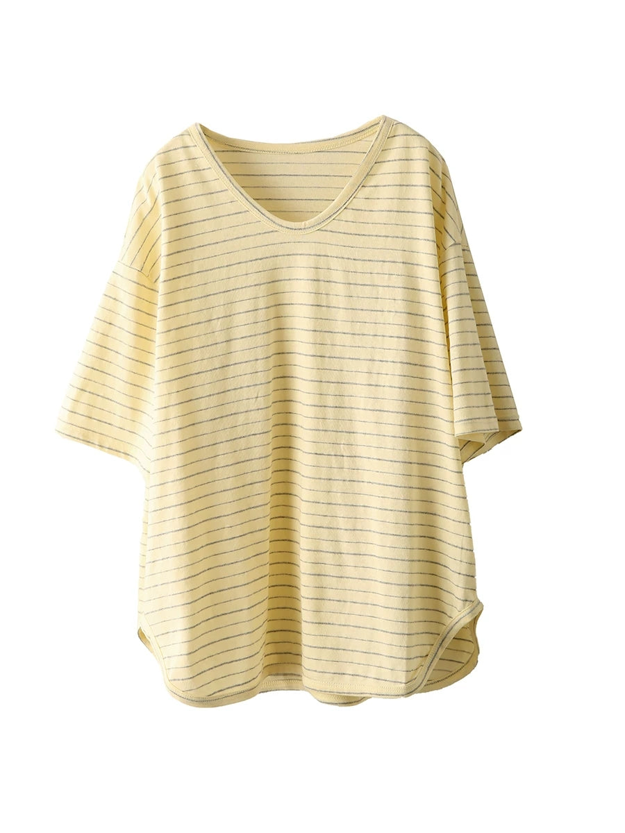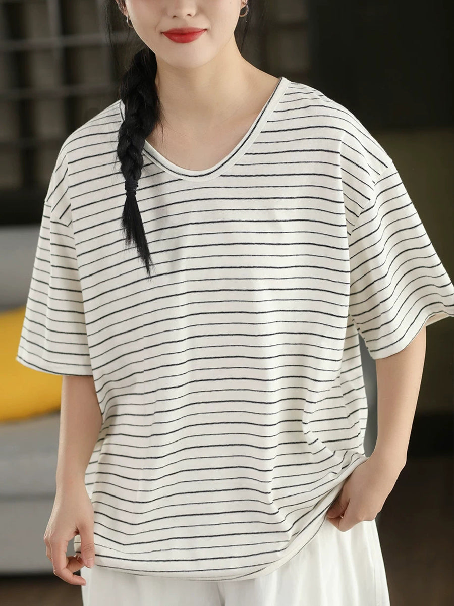 Kvinder Sommer Casual Stribet V-hals T-shirt