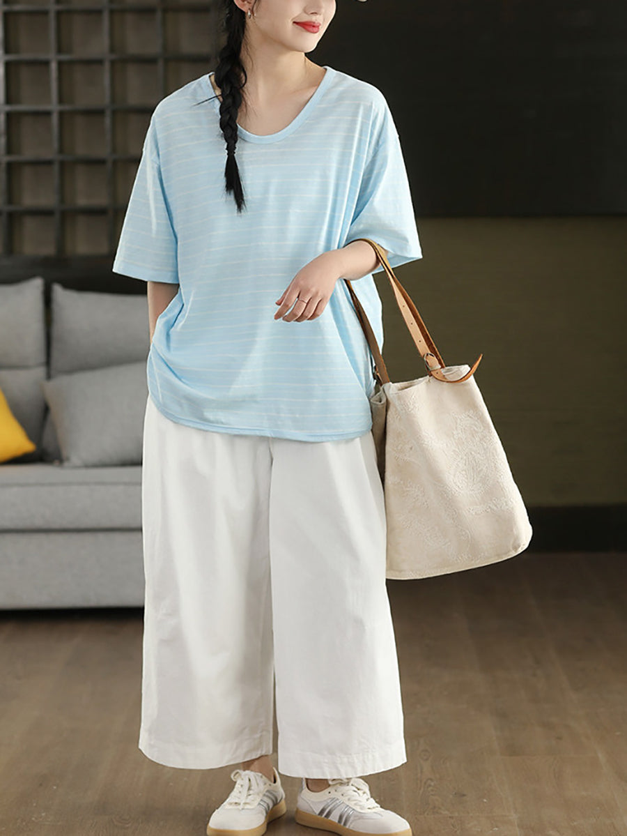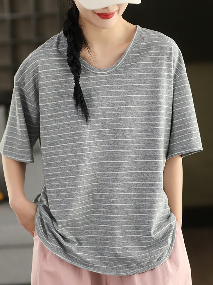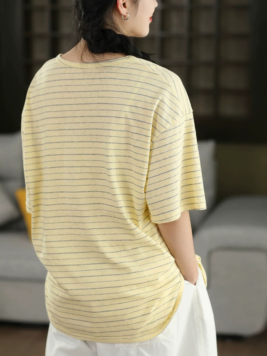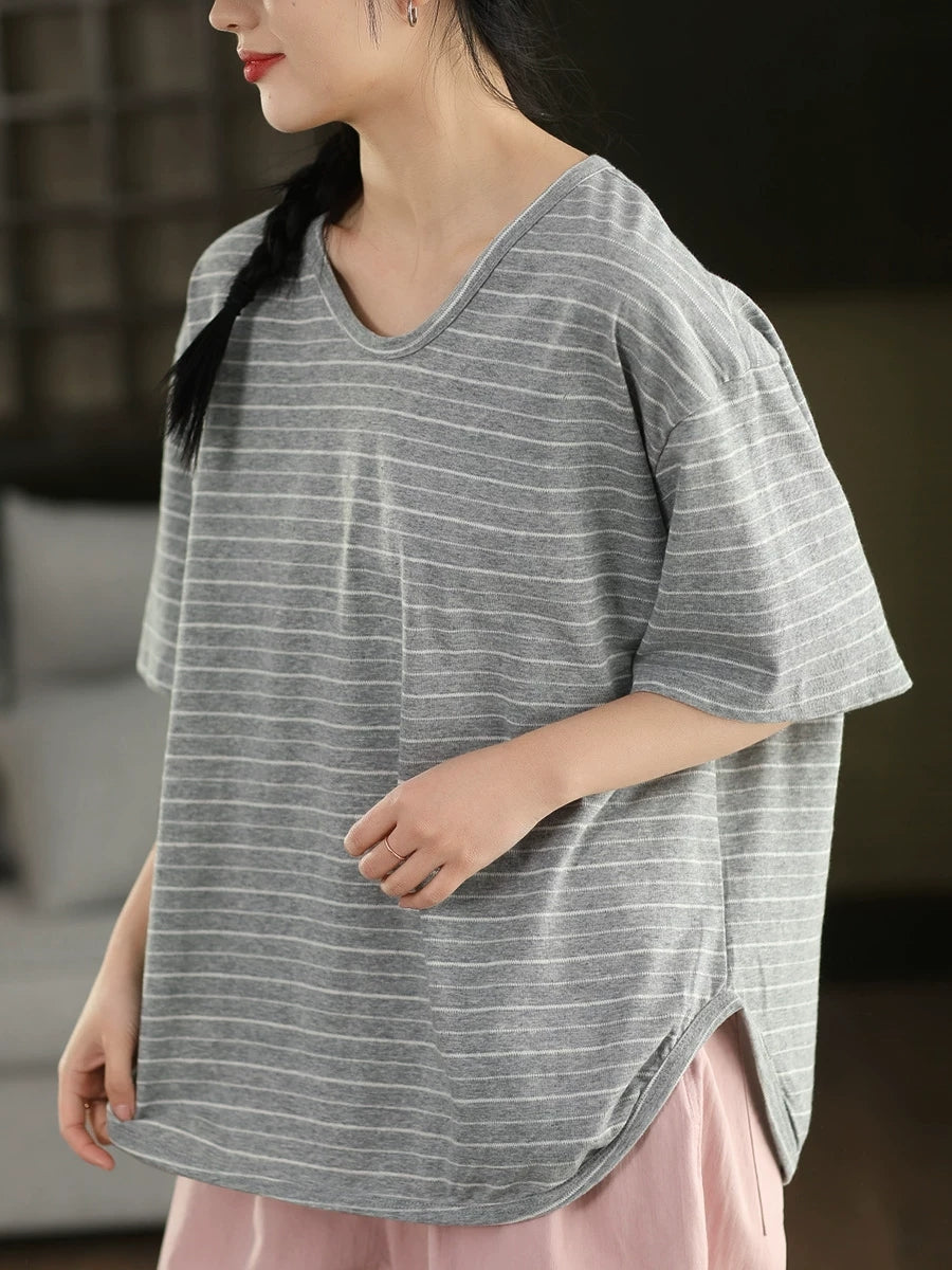 Kvinder Sommer Casual Stribet V-hals T-shirt