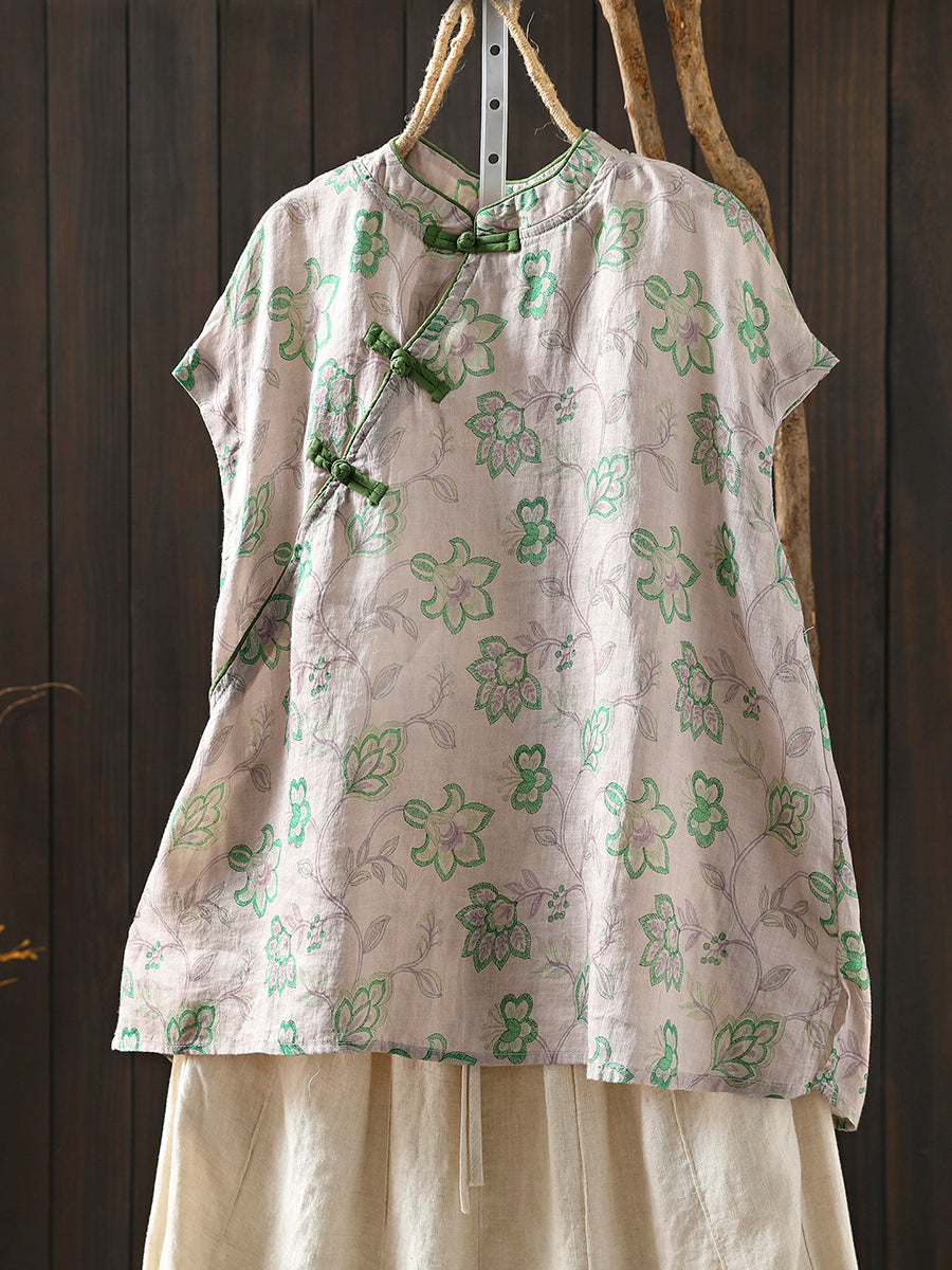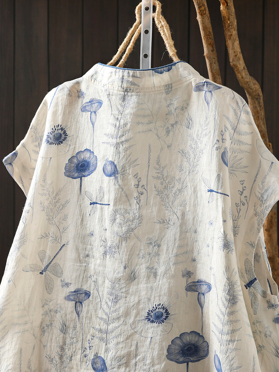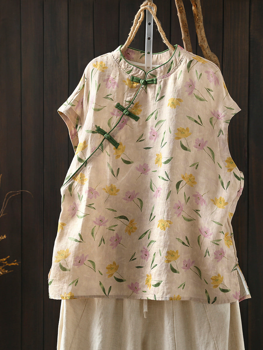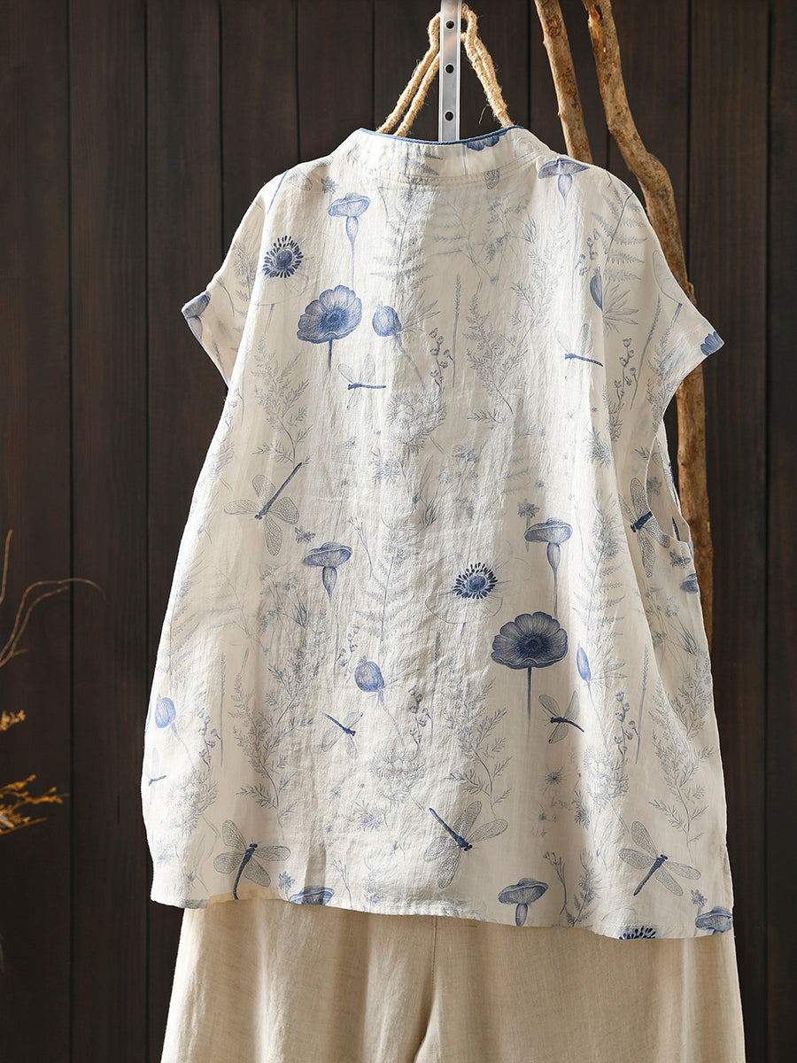 Kvinder Sommer Etnisk Blomster Stand Collar Bluse