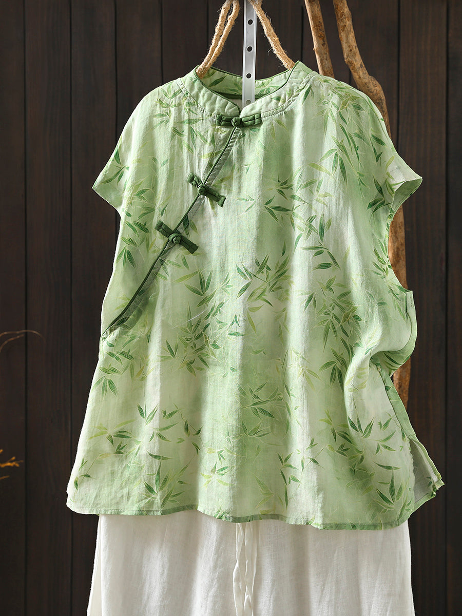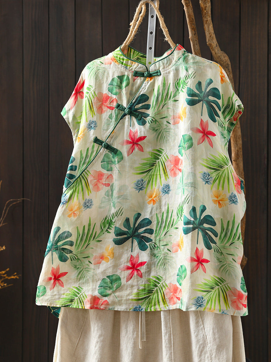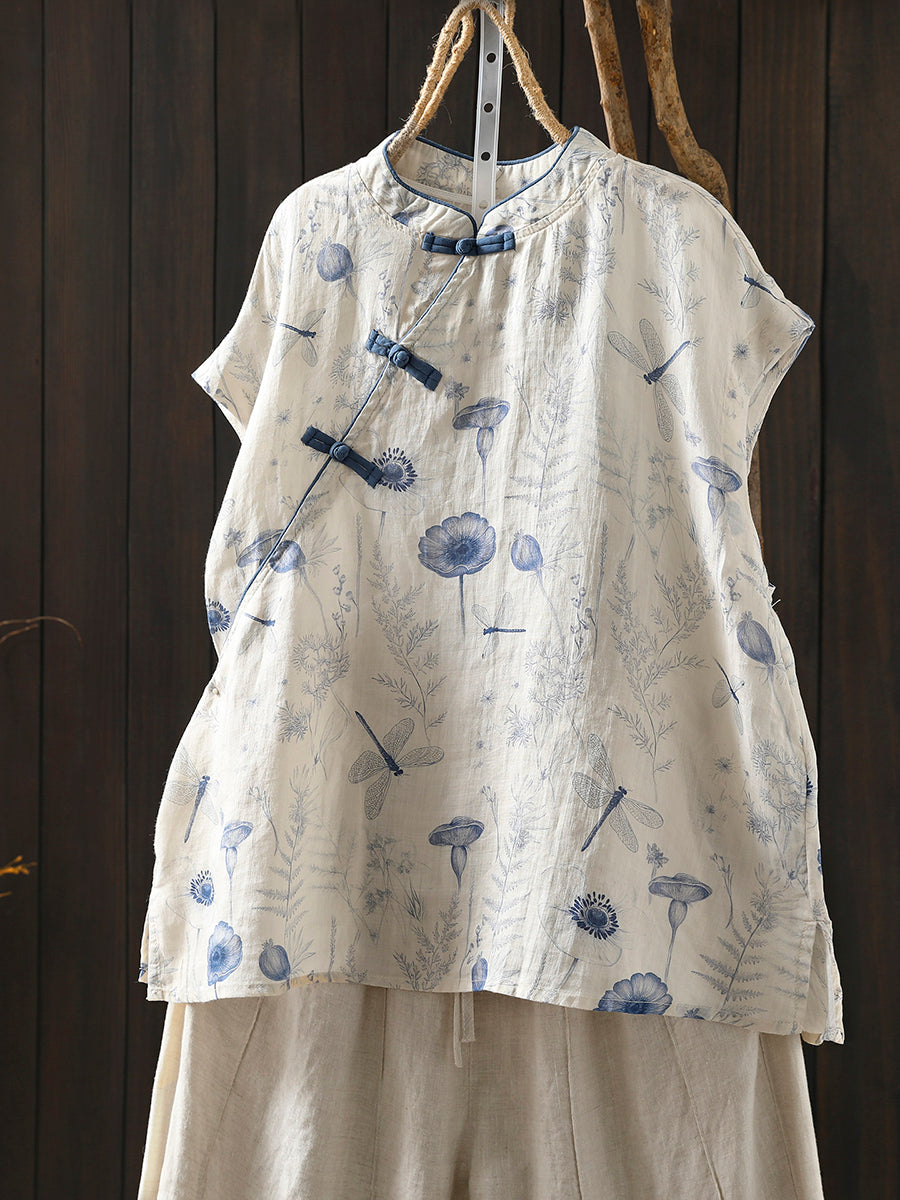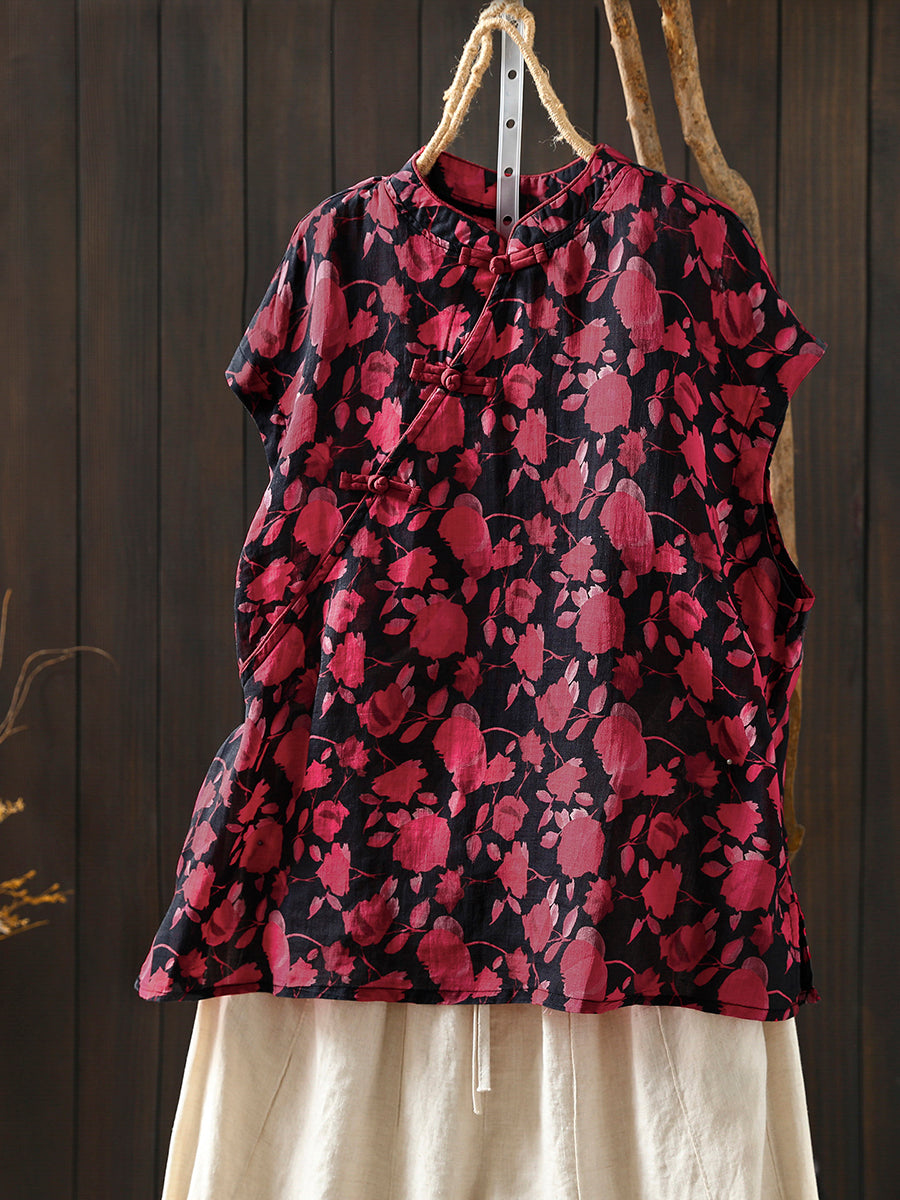 Kvinder Sommer Etnisk Blomster Stand Collar Bluse
