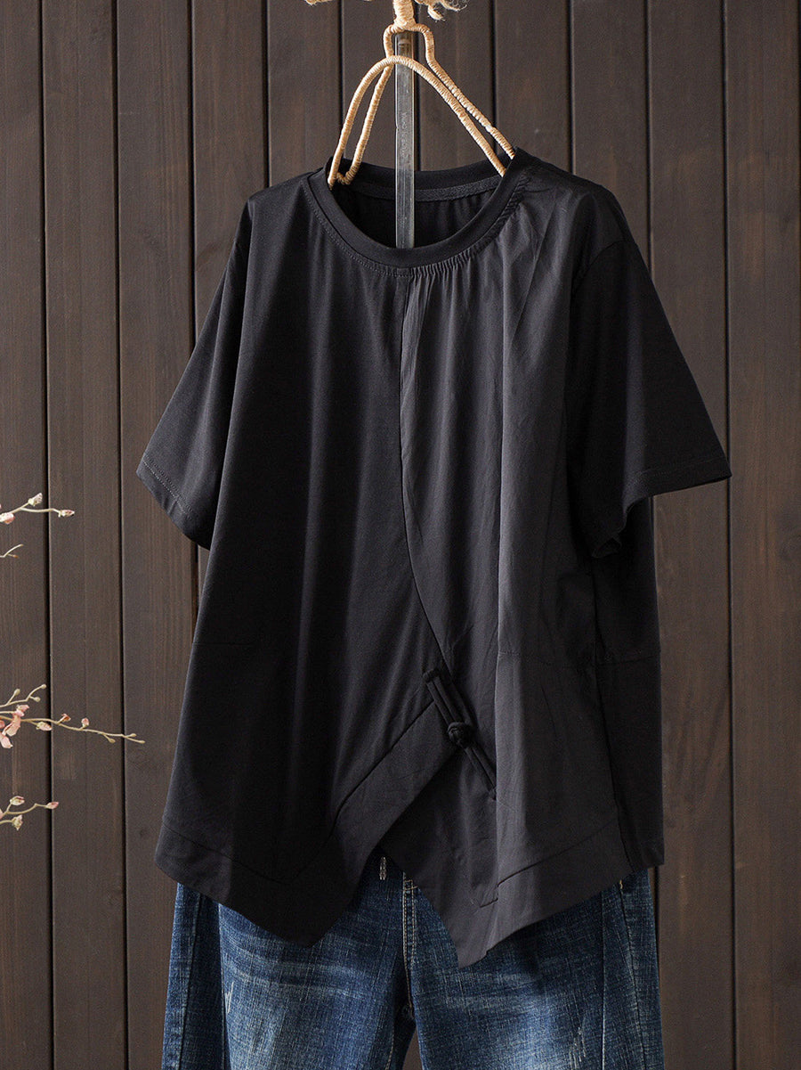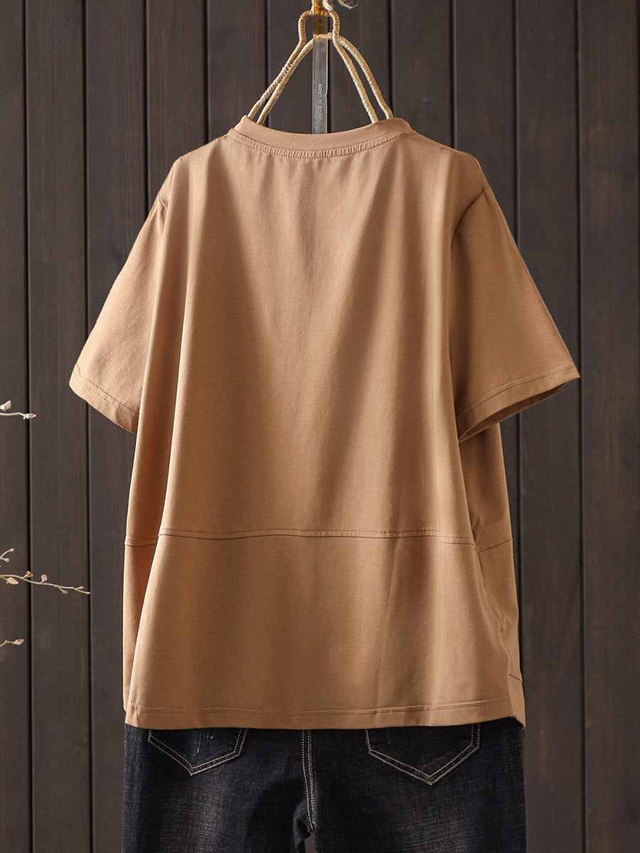 Kvinder Sommer Etnisk Uregelmæssig Kant O-Hals T-shirt