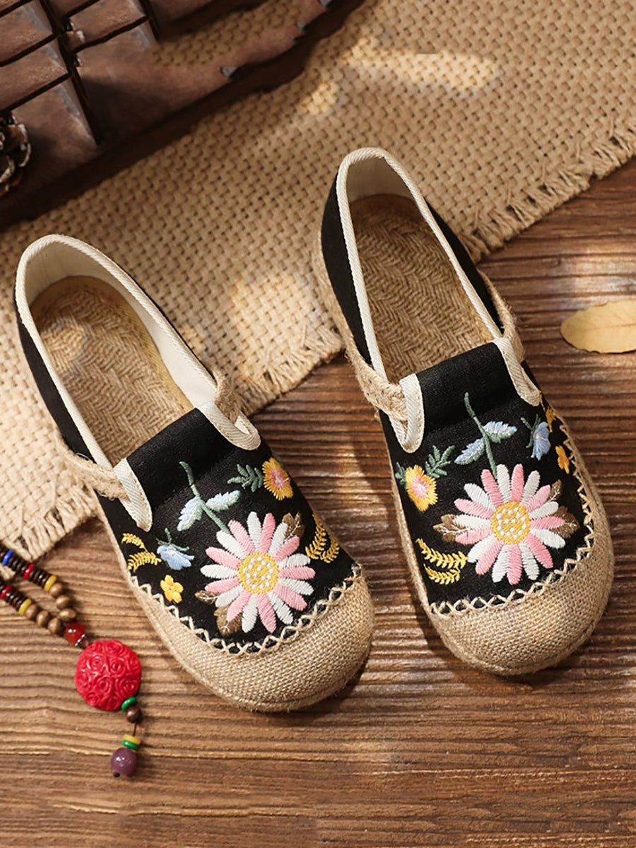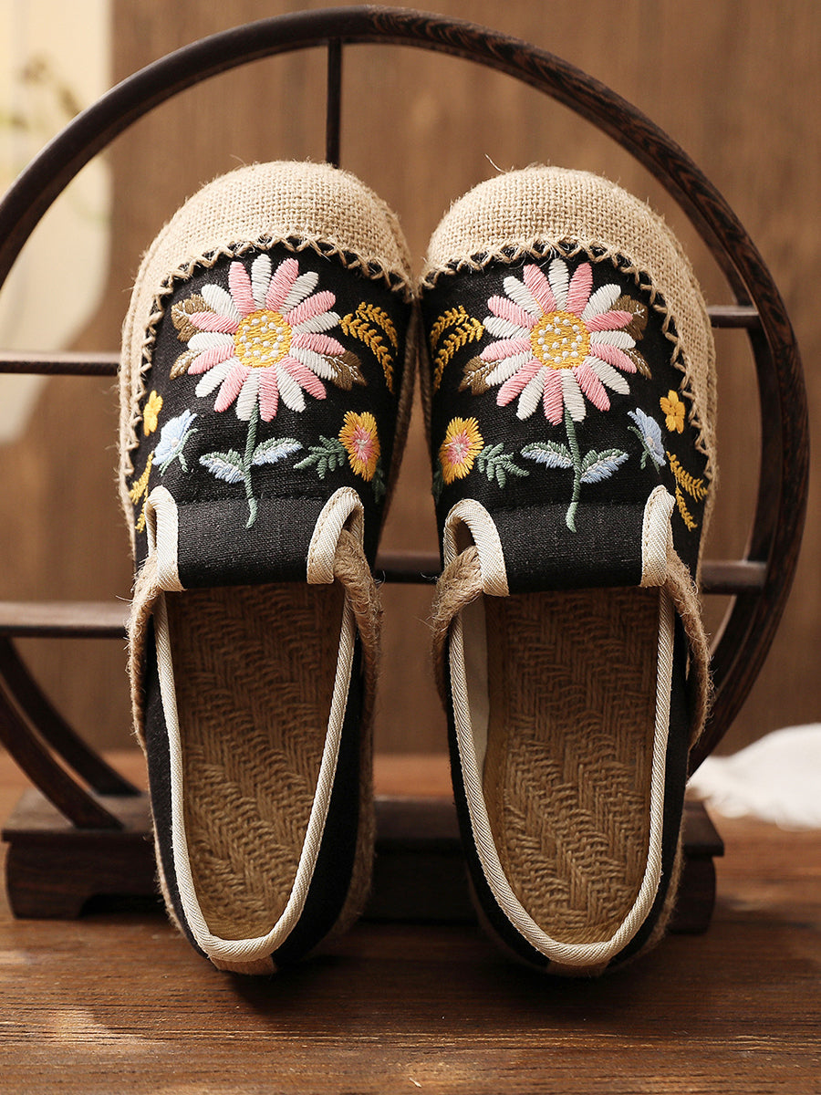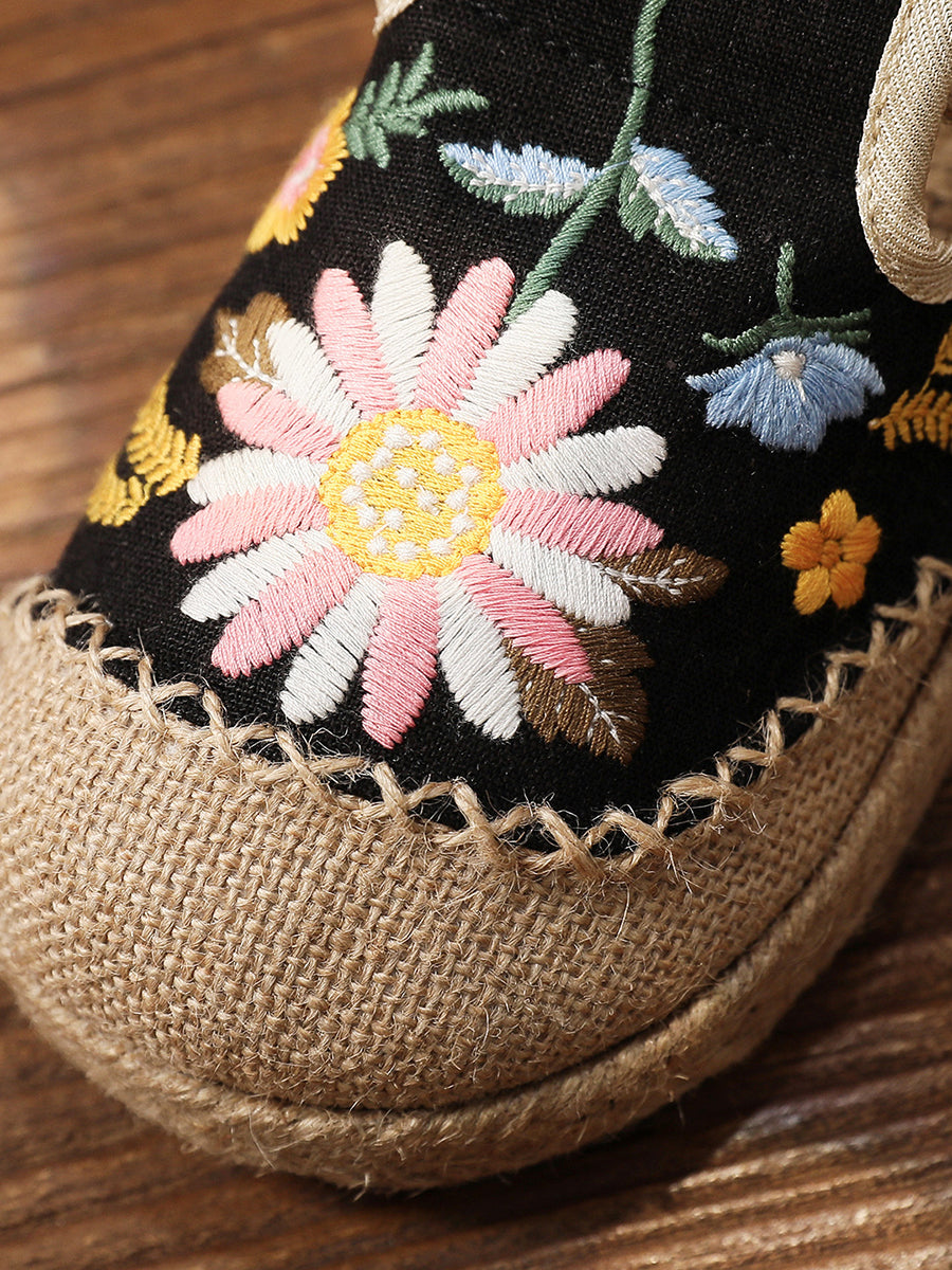 Kvinder Sommer Blomsterbroderi Flade Lærredssko