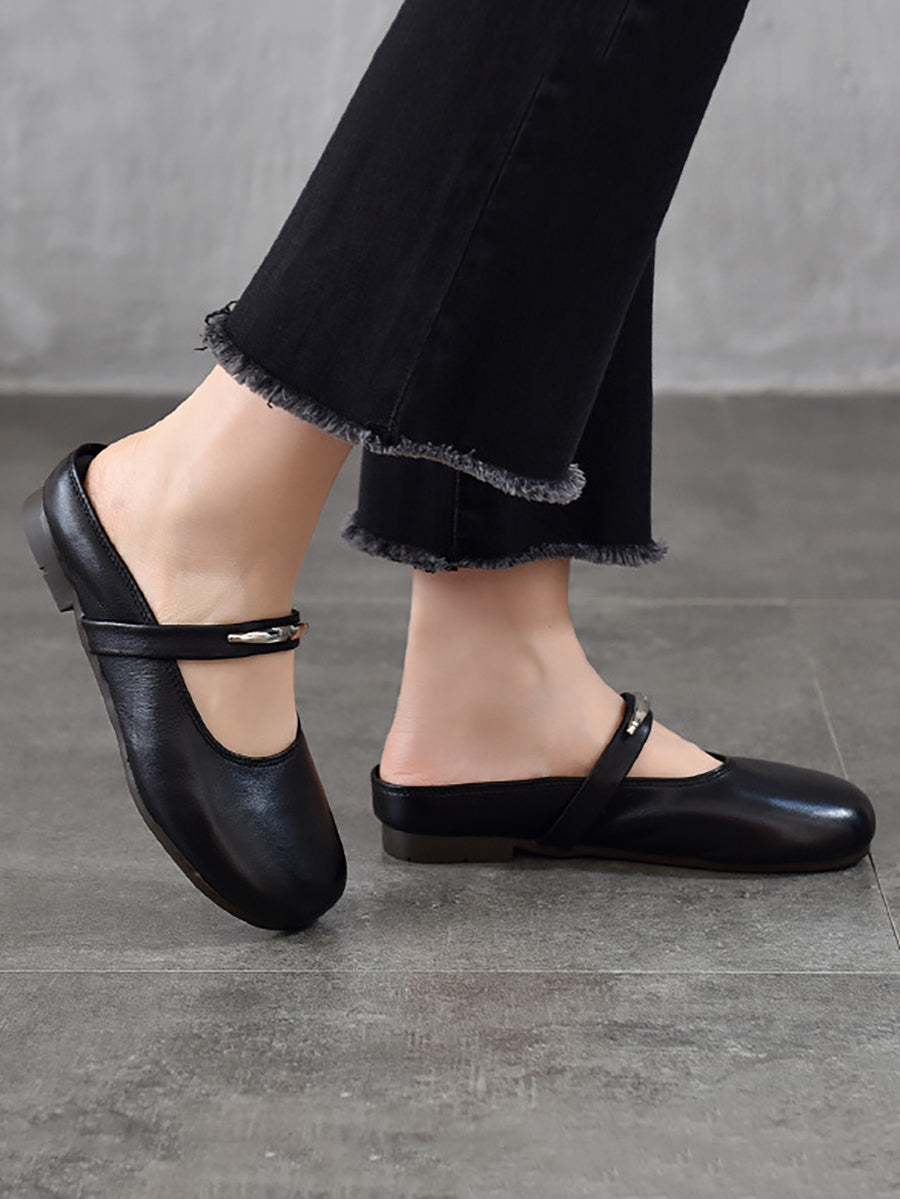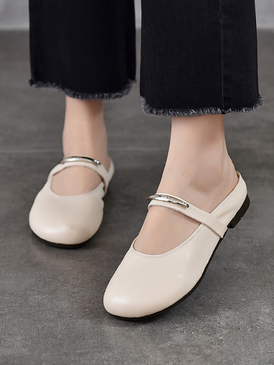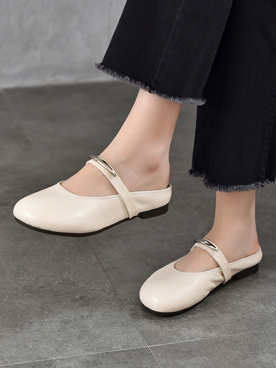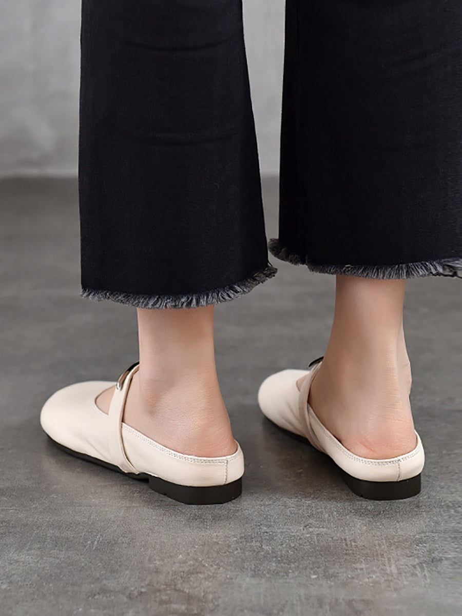 Kvinder Sommer Ægte Læder Flade Tøfler