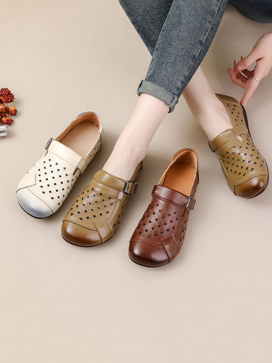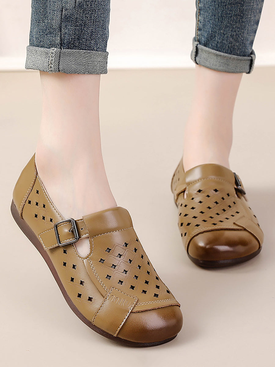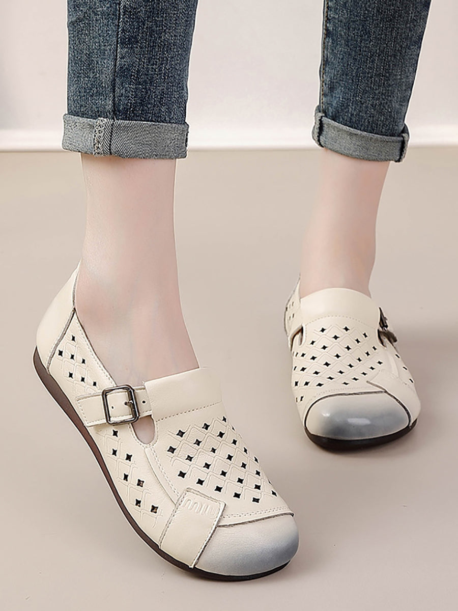 Kvinder Sommer Ægte Læder Spliced Flade Sko