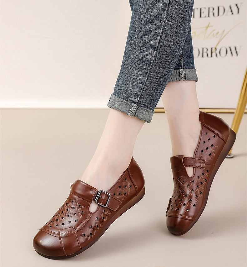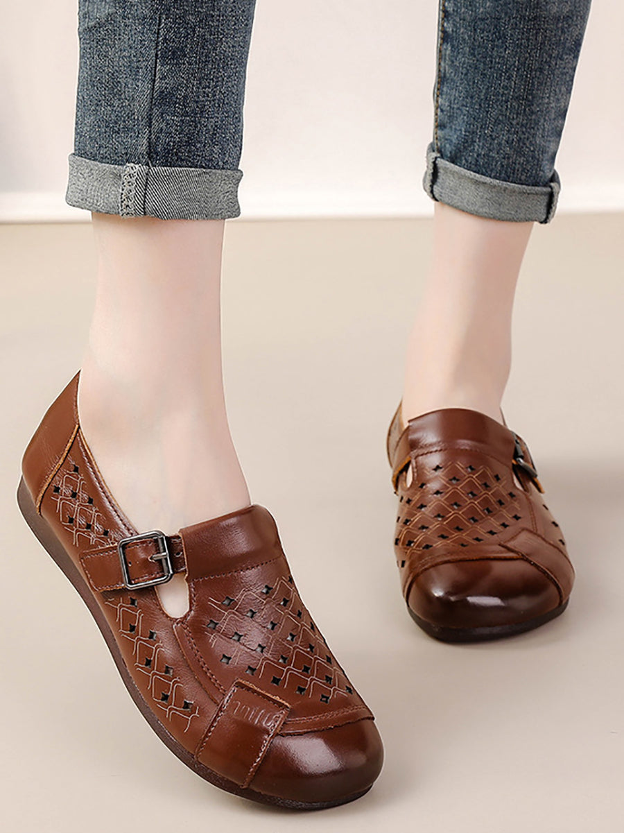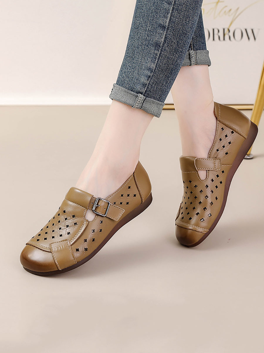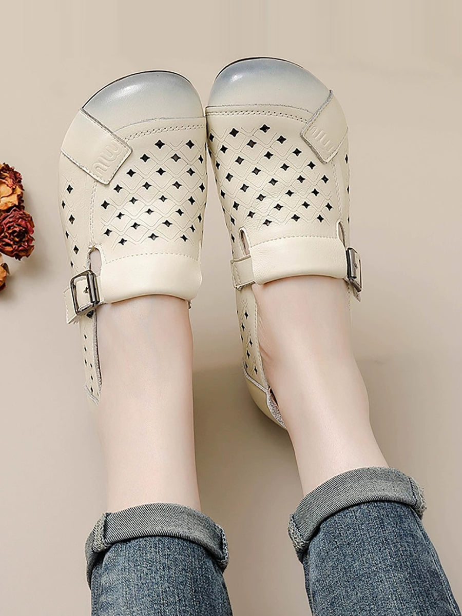 Kvinder Sommer Ægte Læder Spliced Flade Sko