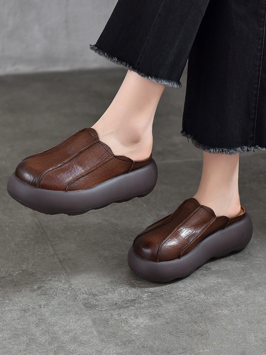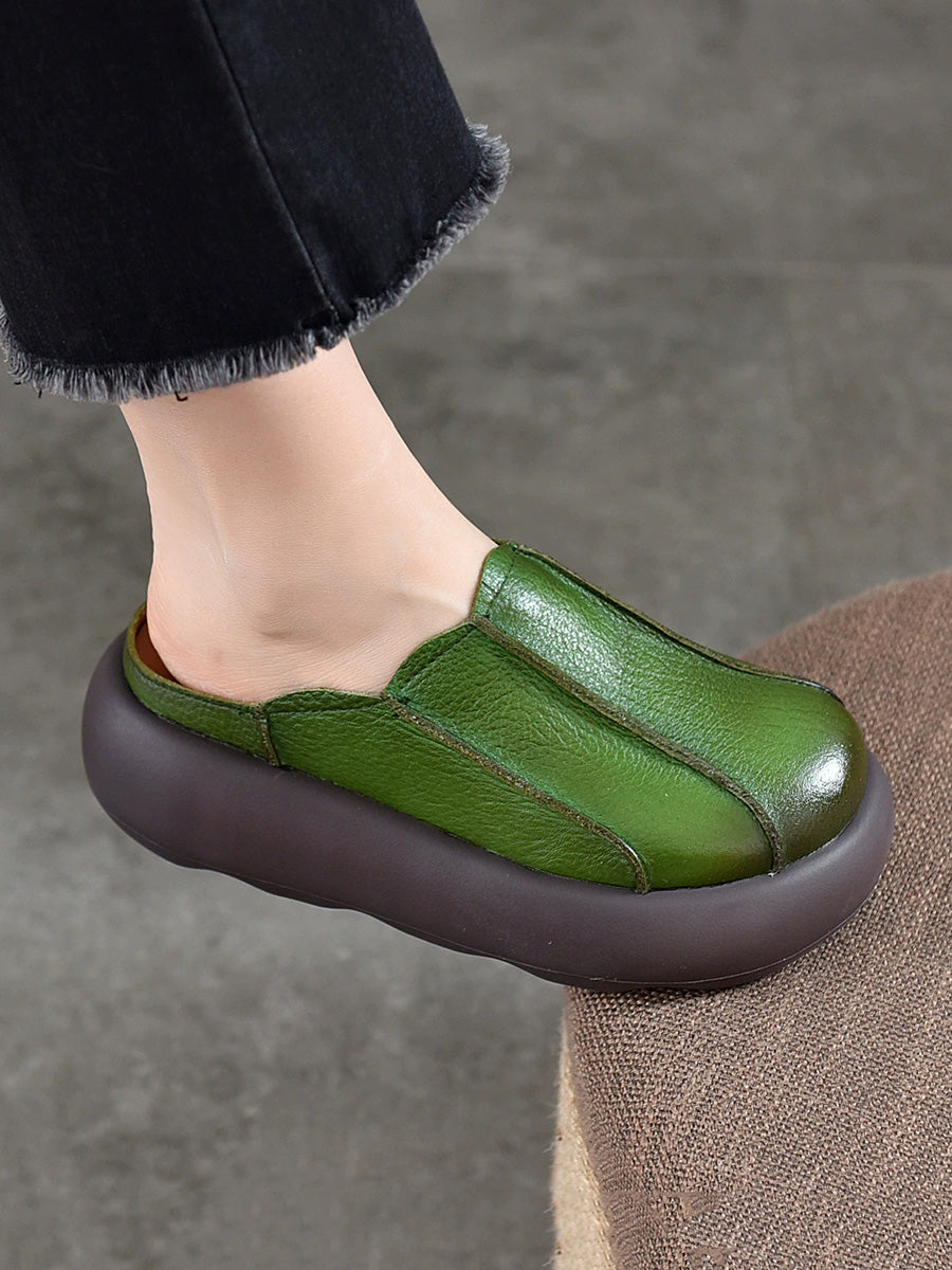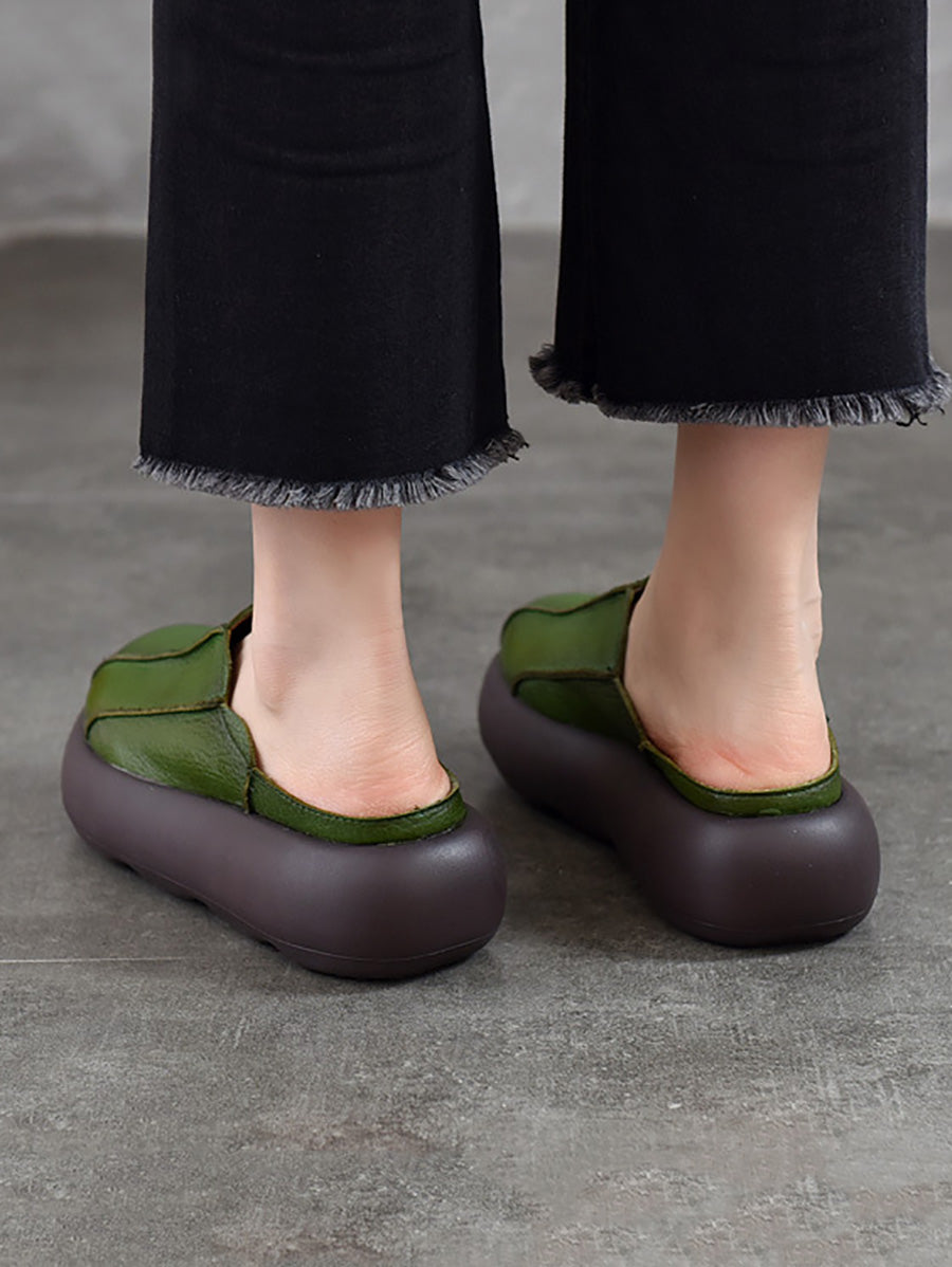 Kvinder Sommer Ægte Læder Spliced Platform Tøfler