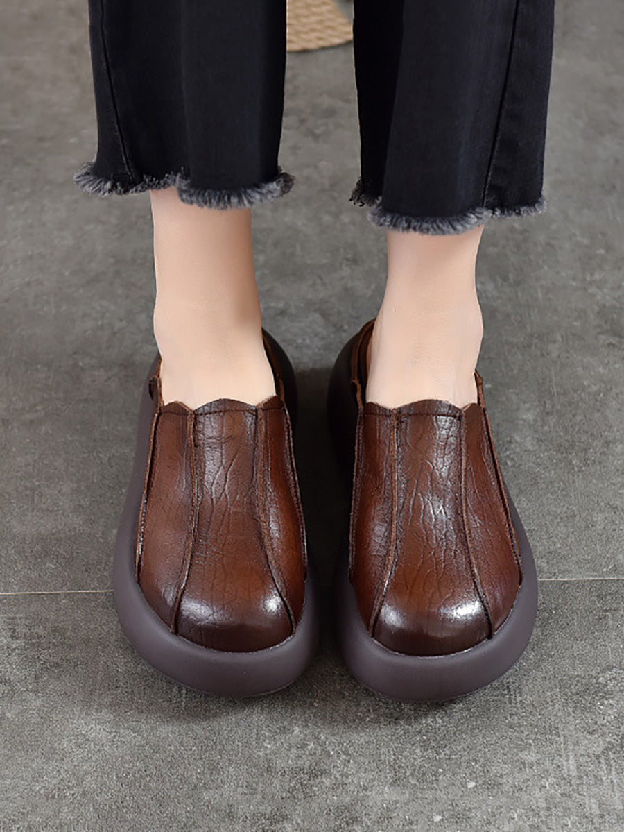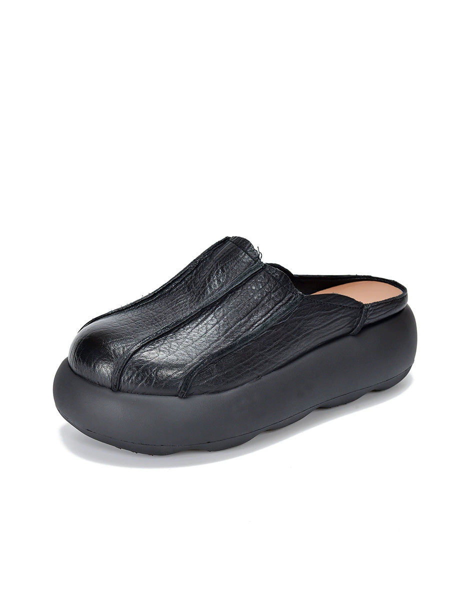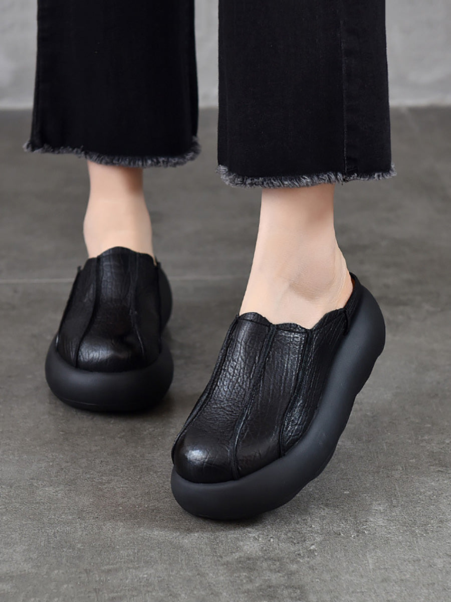 Kvinder Sommer Ægte Læder Spliced Platform Tøfler