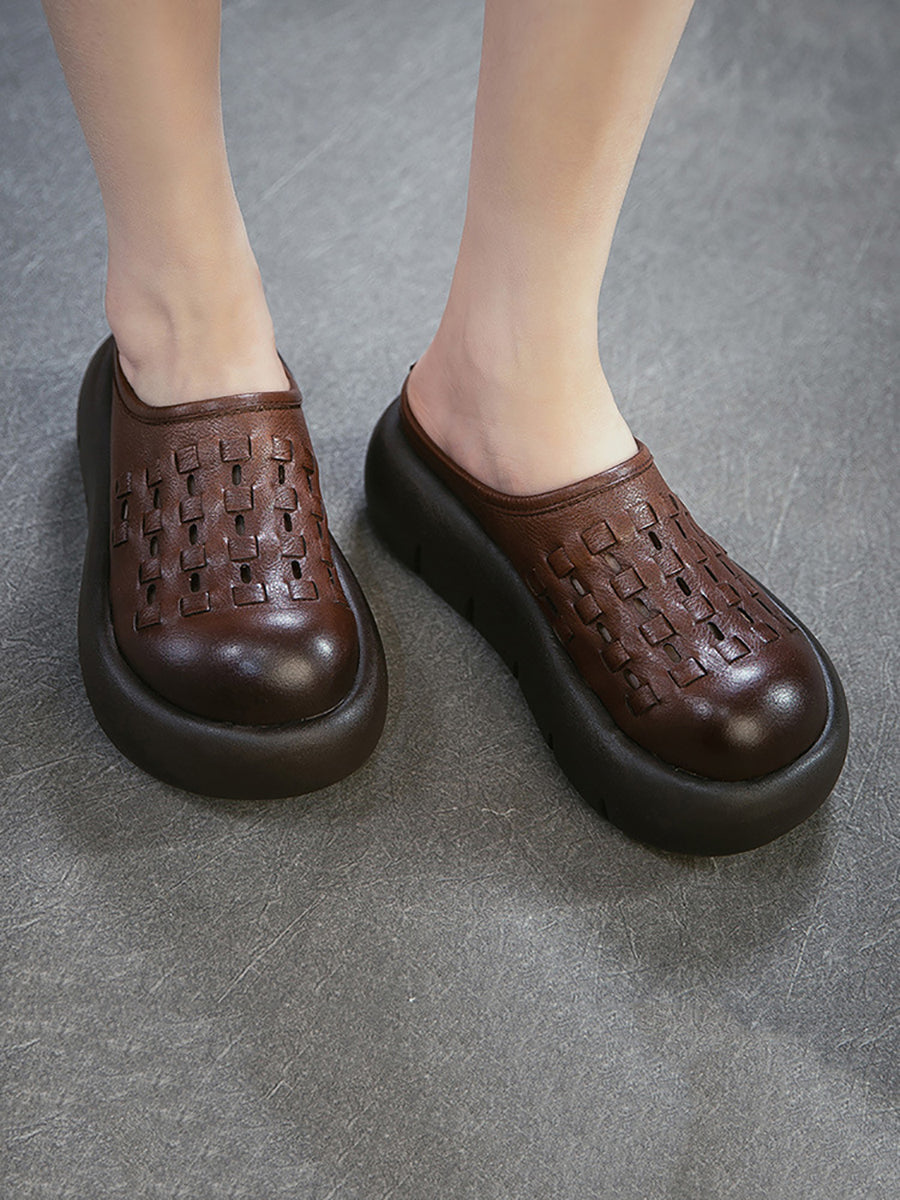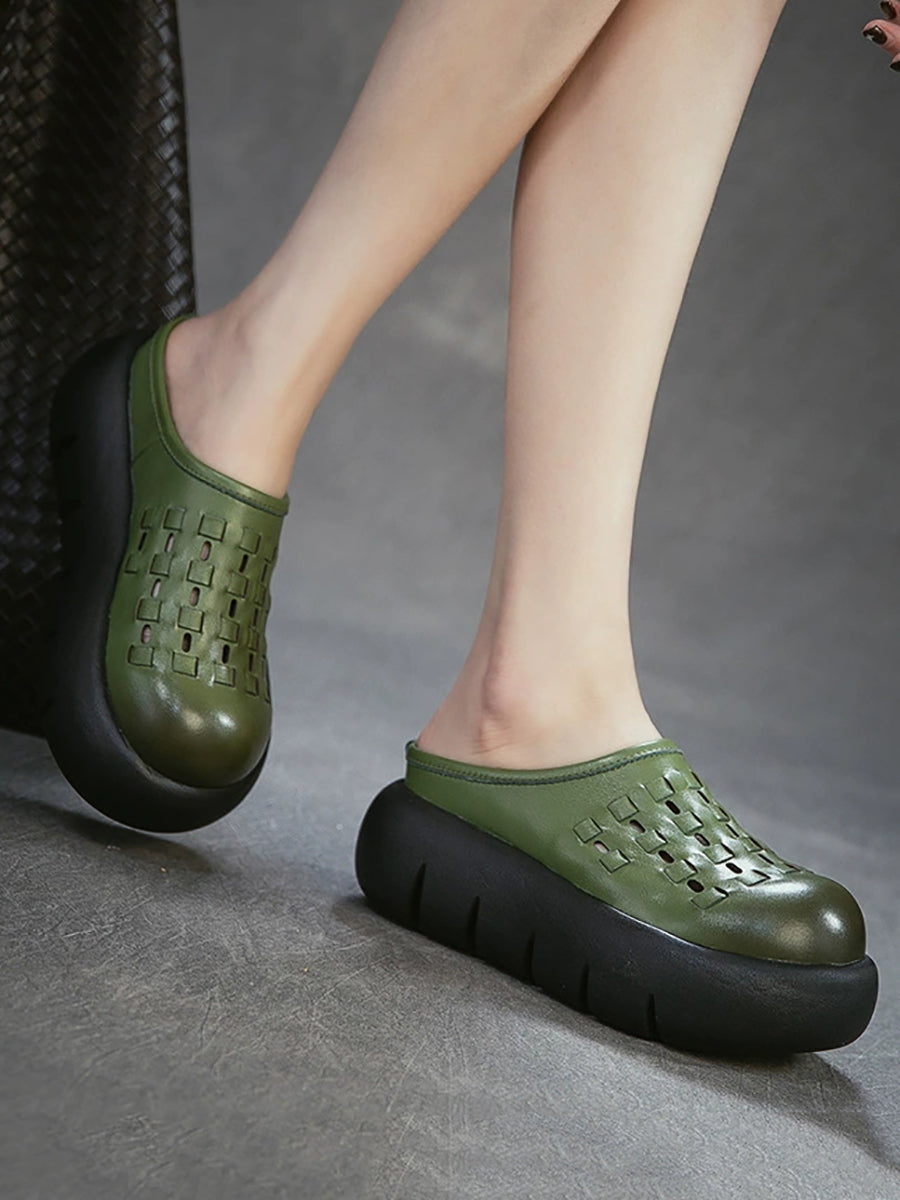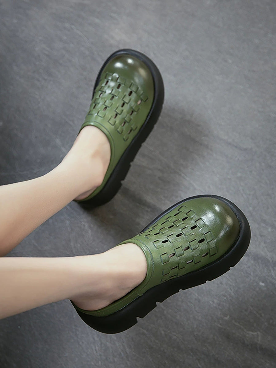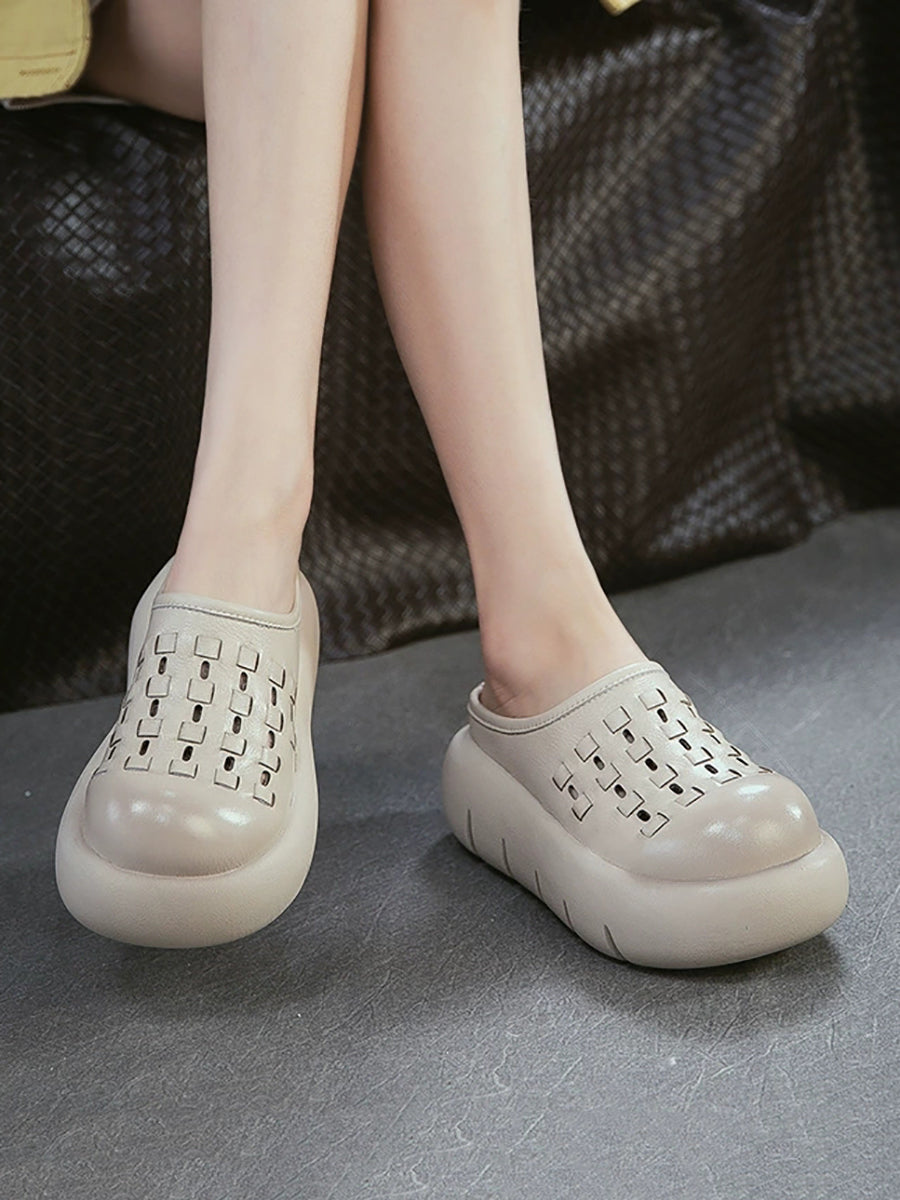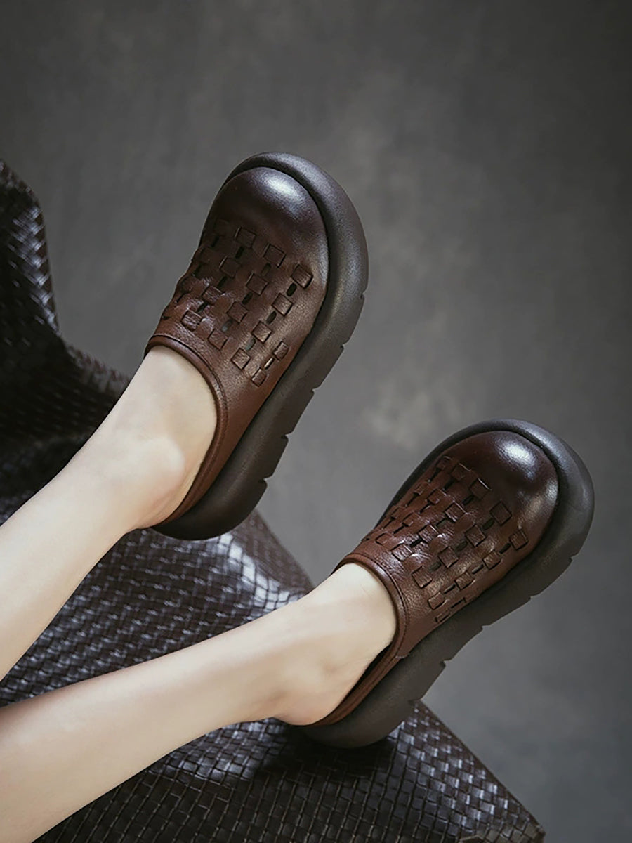 Kvinder Sommer Ægte Læder Vævet Platform Tøfler
