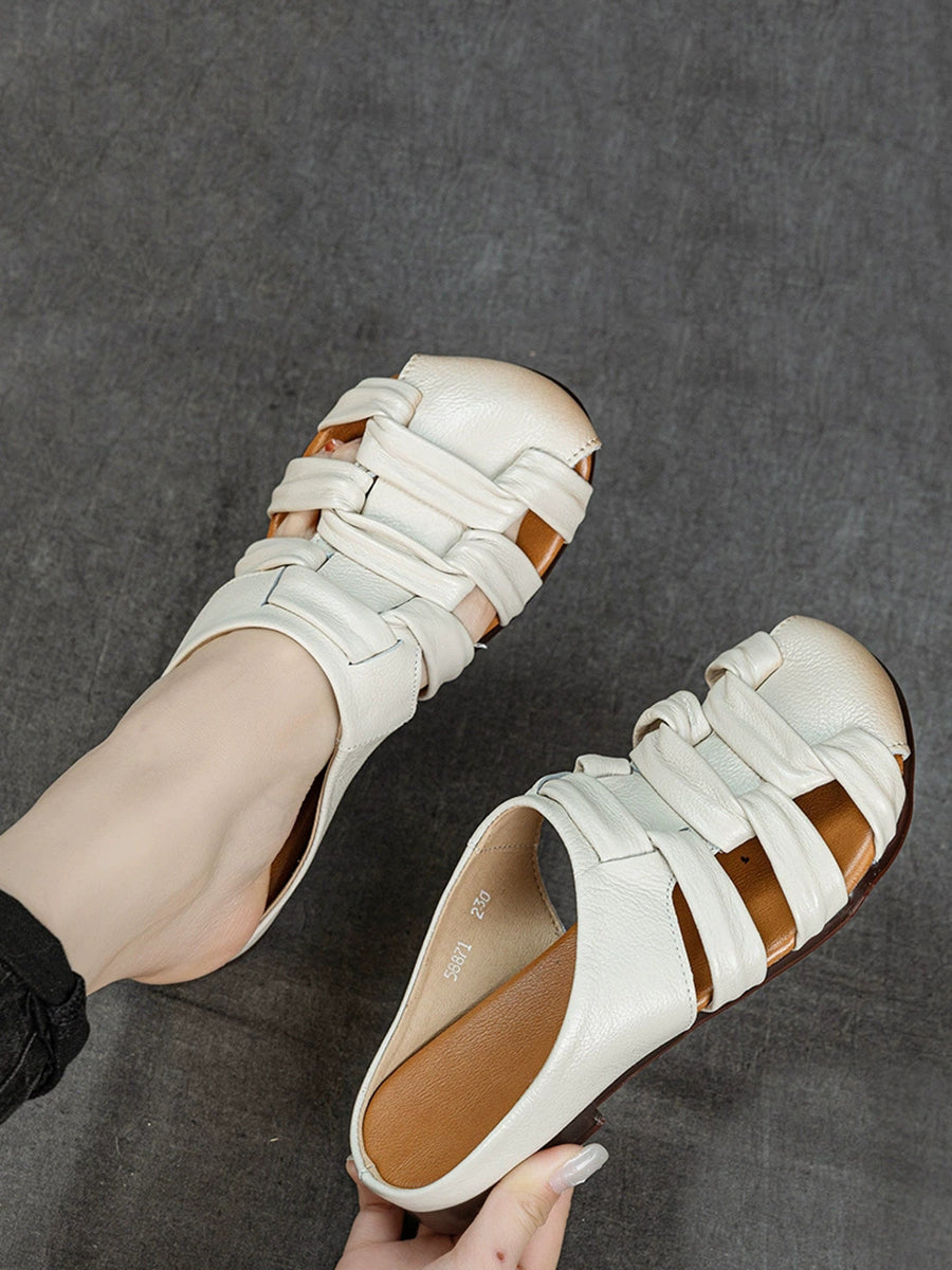 Kvinder Sommer Ægte Læder Vævede Hjemmesko