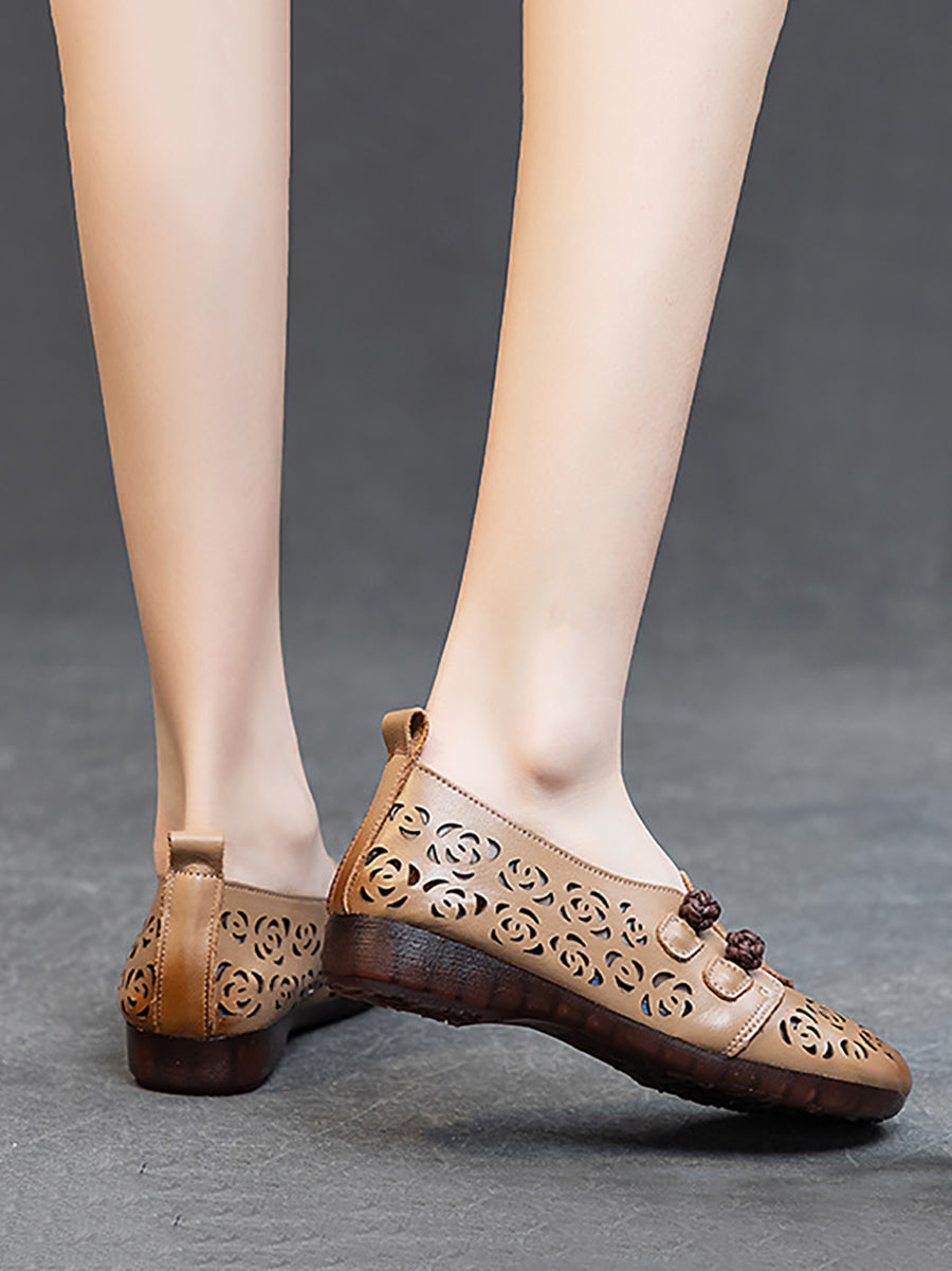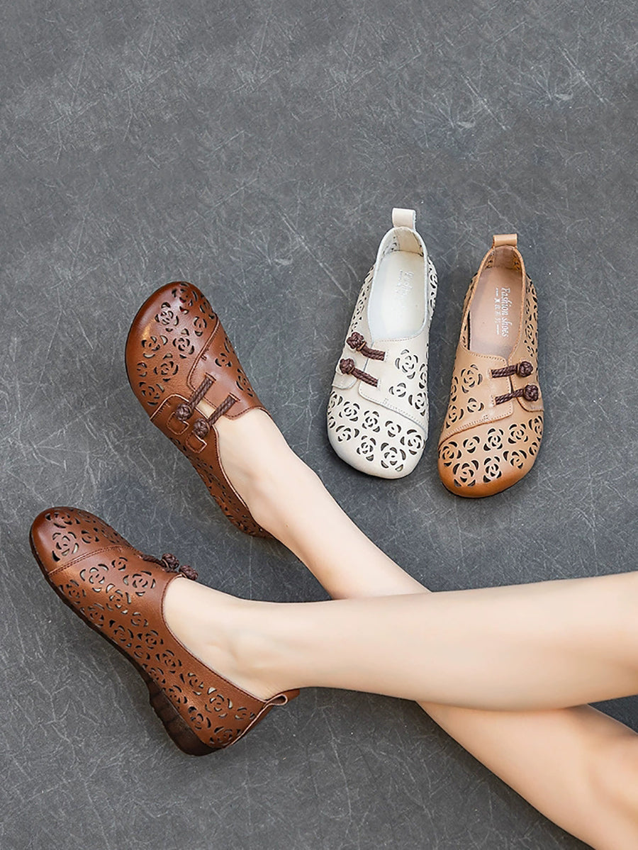 Kvinder Sommer Udhulede Blomster Lædersko