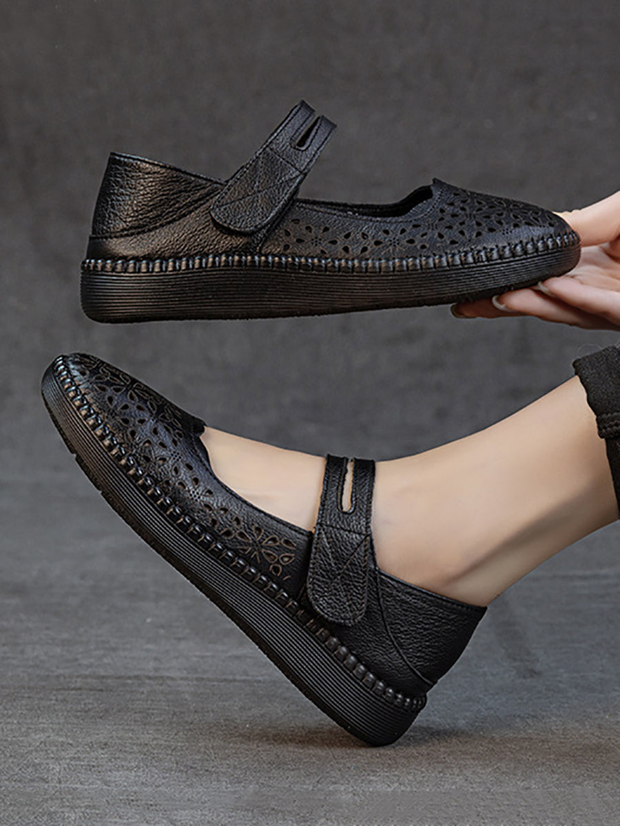 Kvinder Sommer Udhulede Læder Flade Sandaler