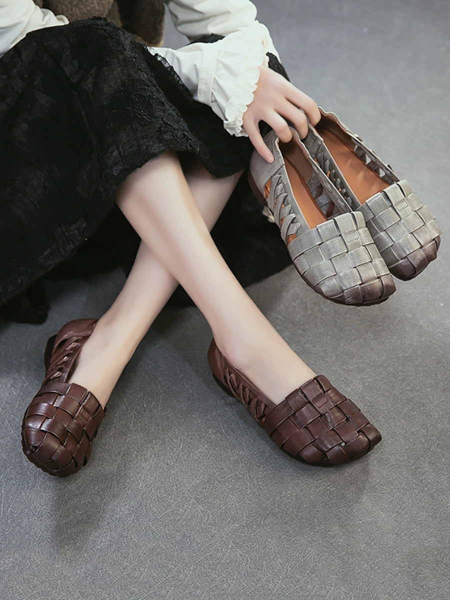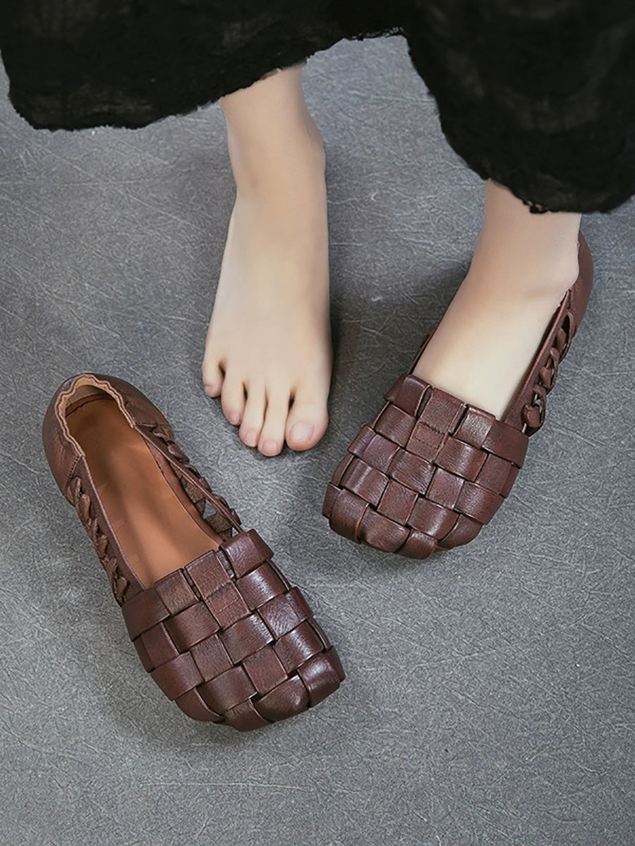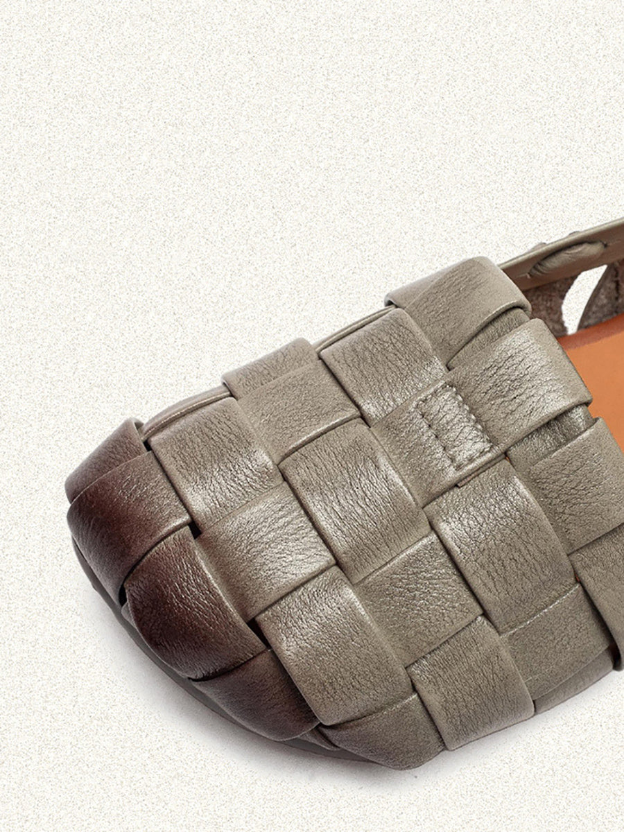 Kvinder Sommer Lædervævede Lavhælede Sandaler