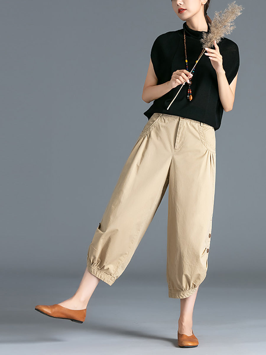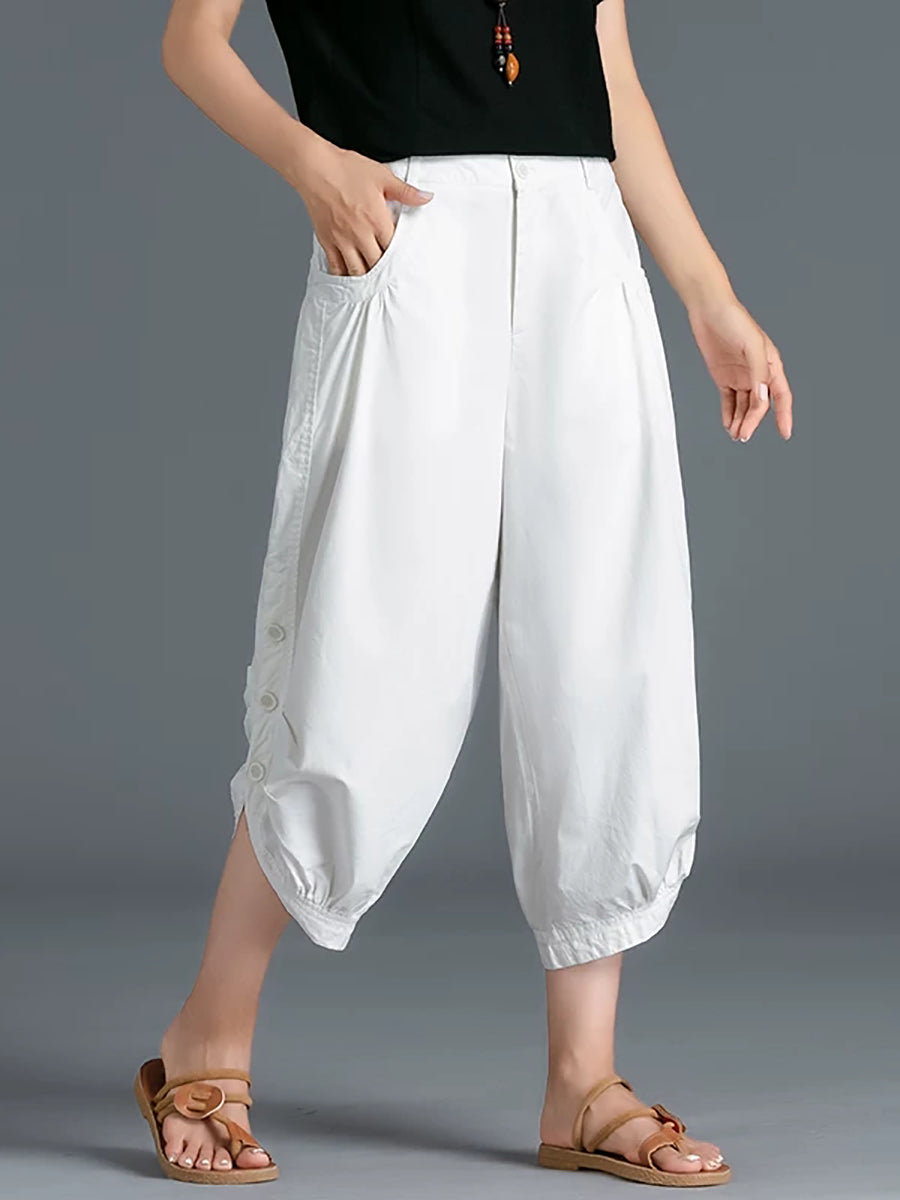 Kvinder Sommer Capribukser i Ren Farve i 100% Bomuld
