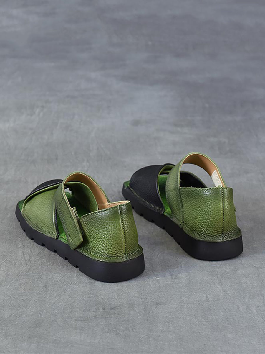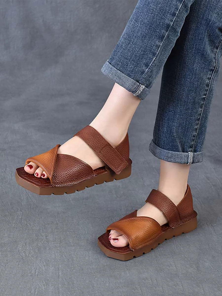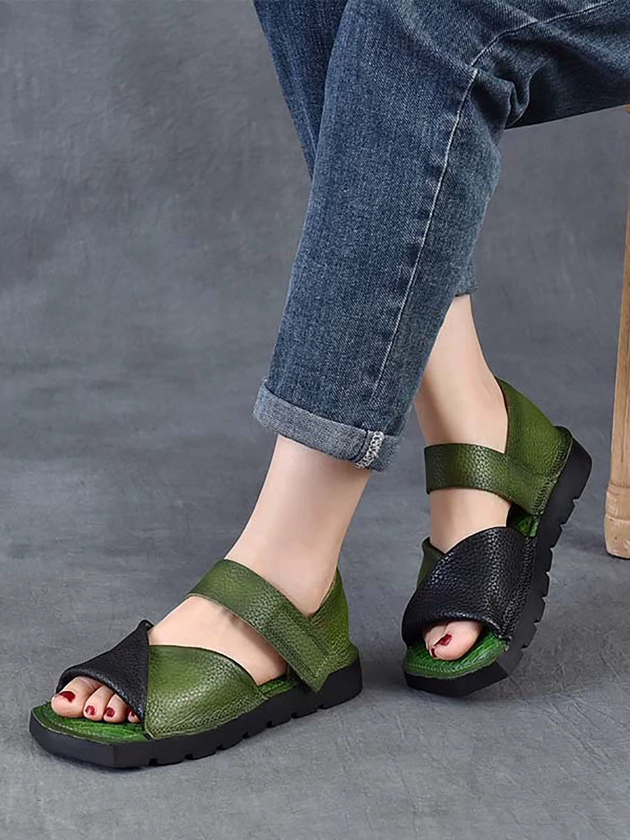 Kvinder Sommer Retro Colorblock Læder Flade Sandaler