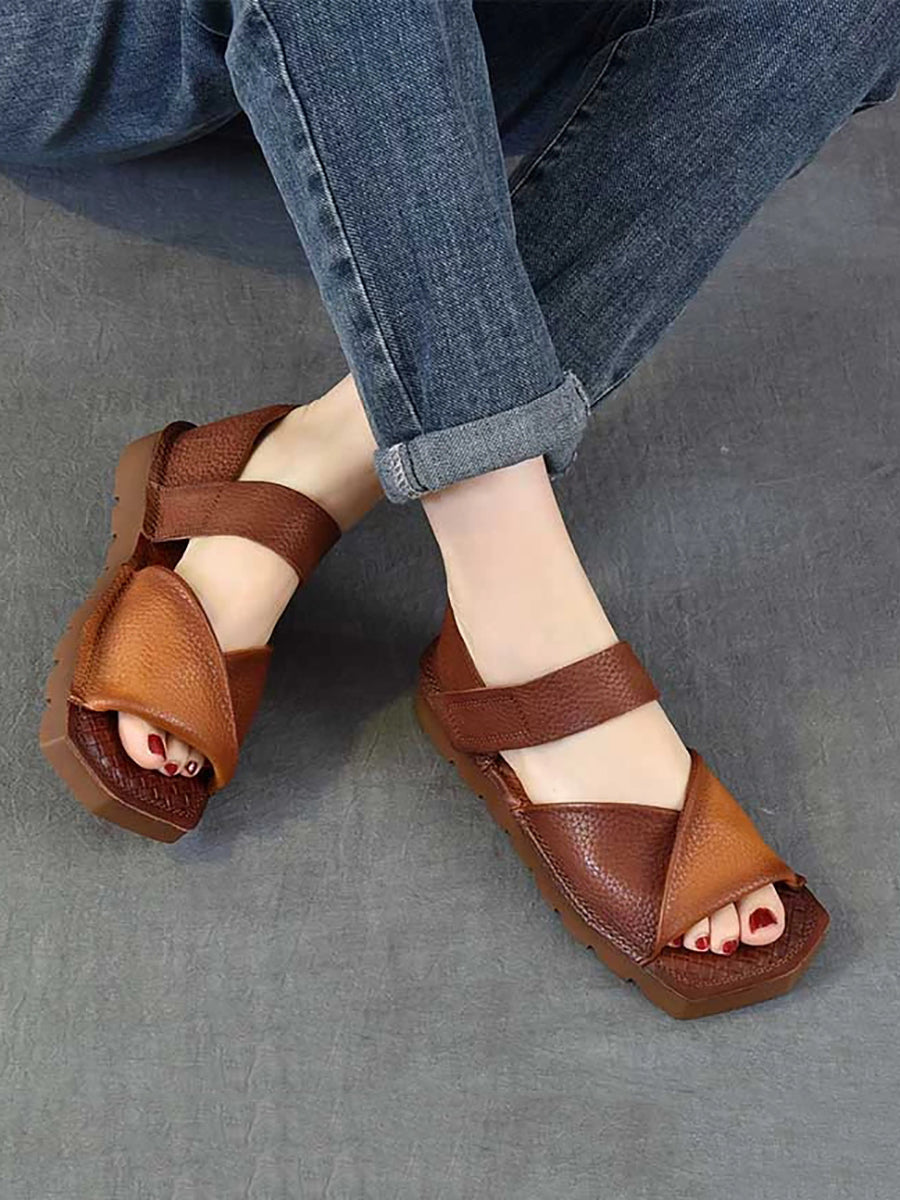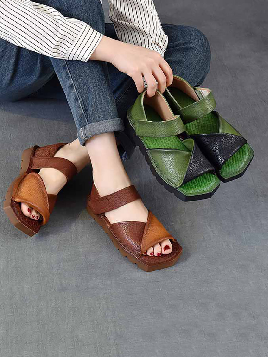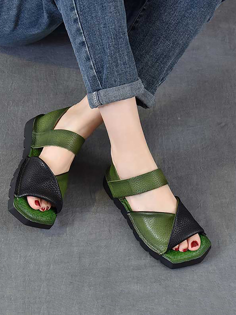 Kvinder Sommer Retro Colorblock Læder Flade Sandaler
