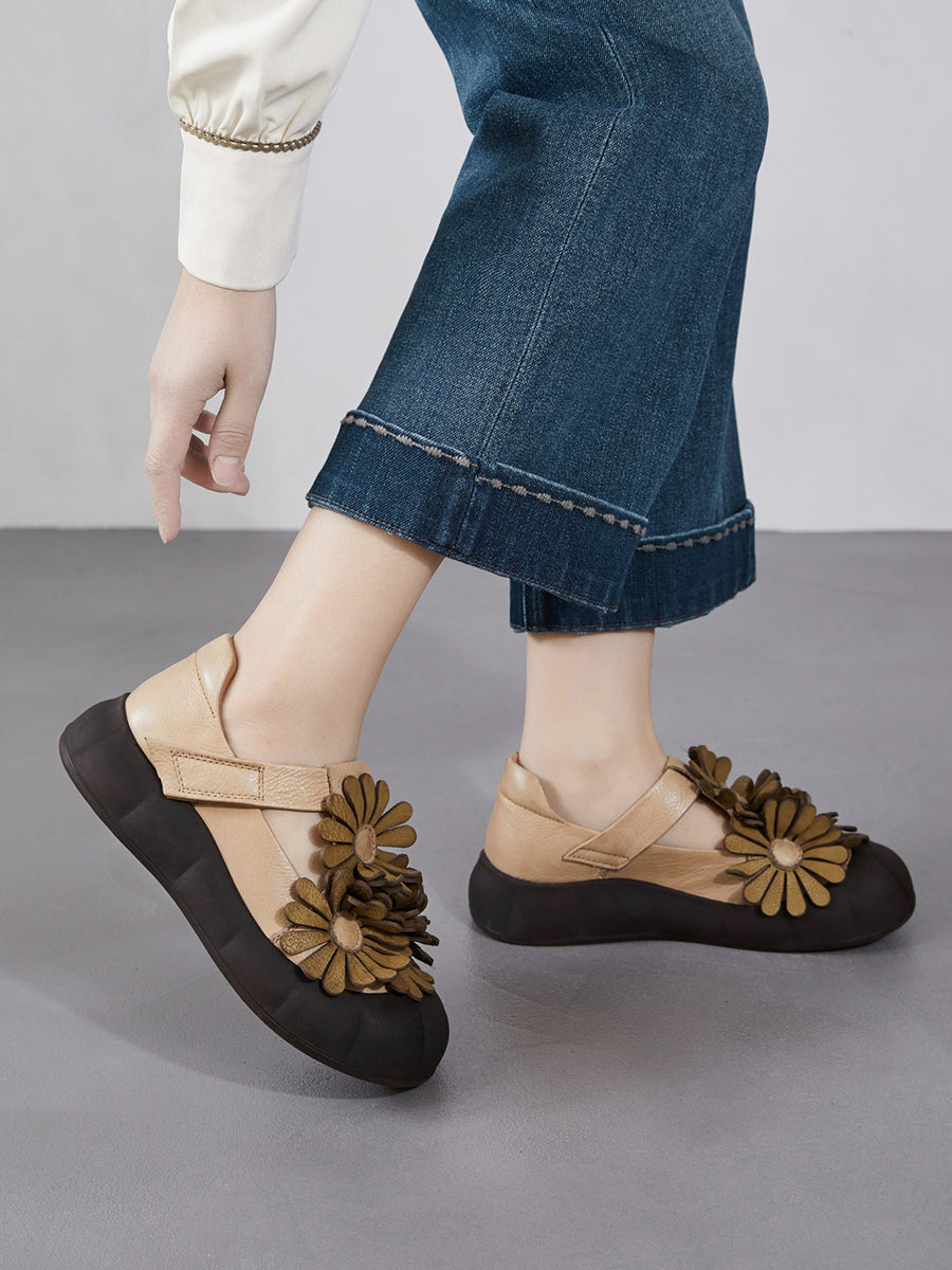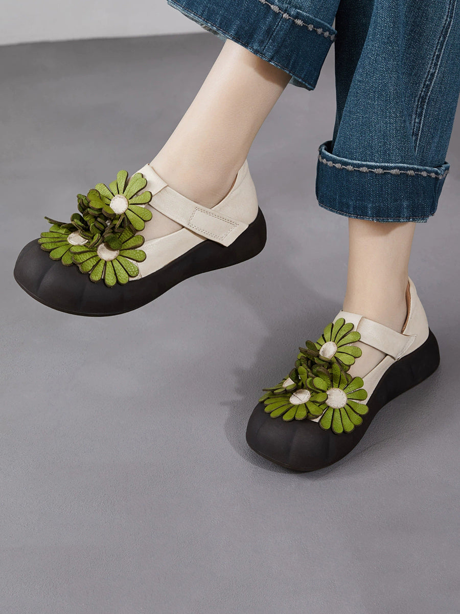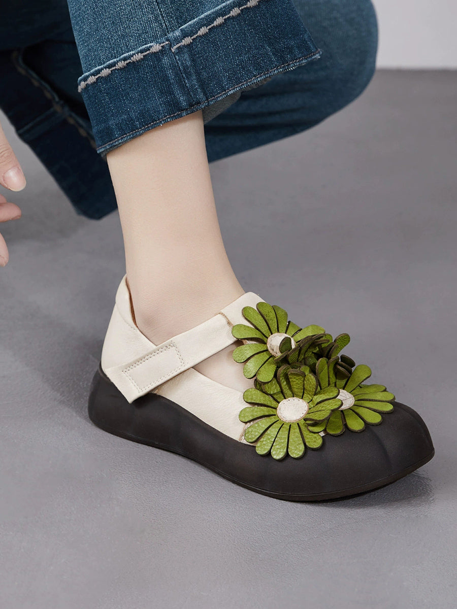 Kvinder Sommer Retro Ægte Læder Blomstersko
