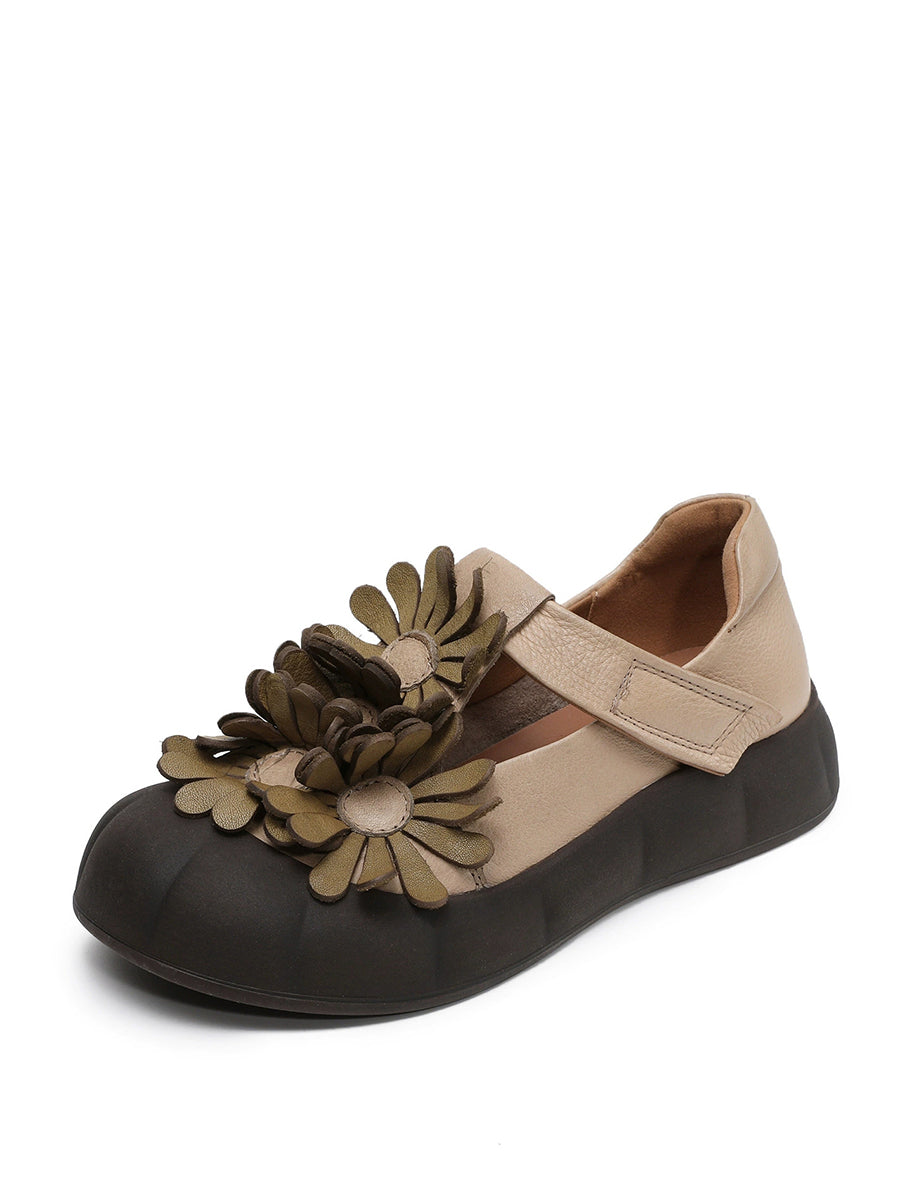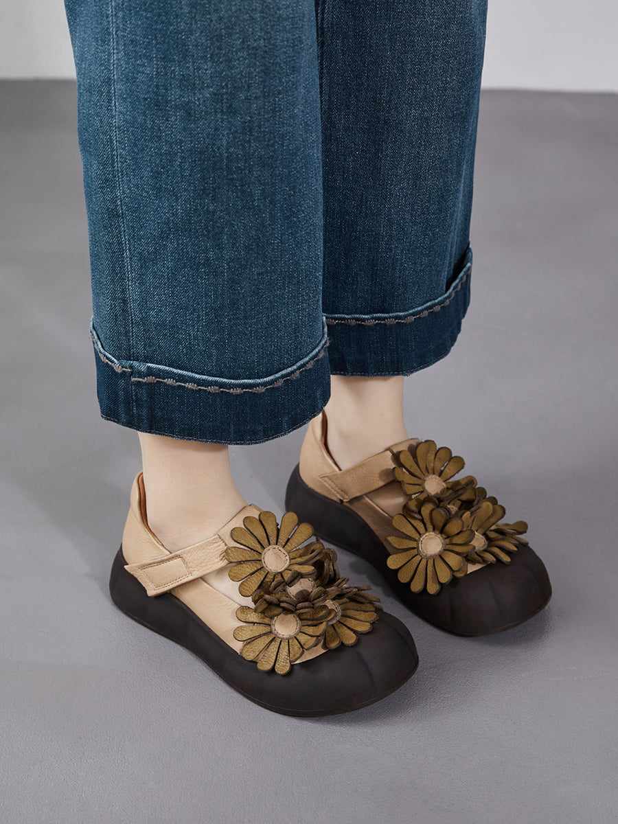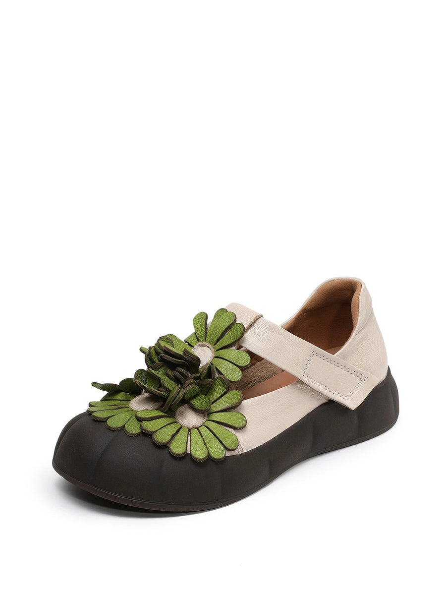 Kvinder Sommer Retro Ægte Læder Blomstersko