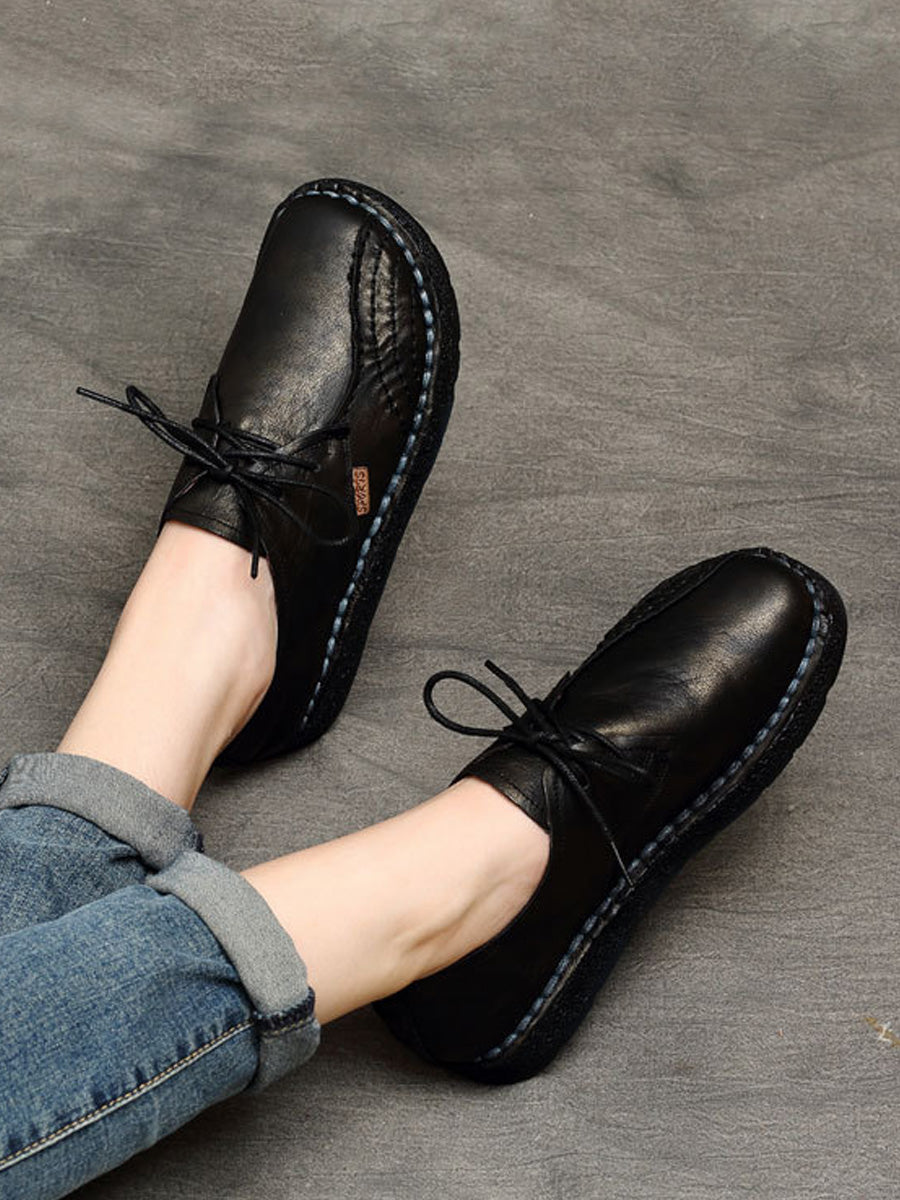 Kvinder Sommer Retro Ægte Læder Spliced Flade Sko