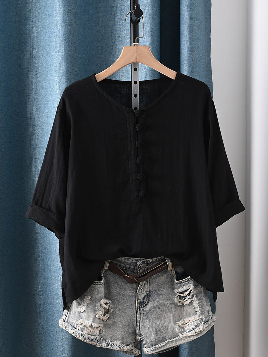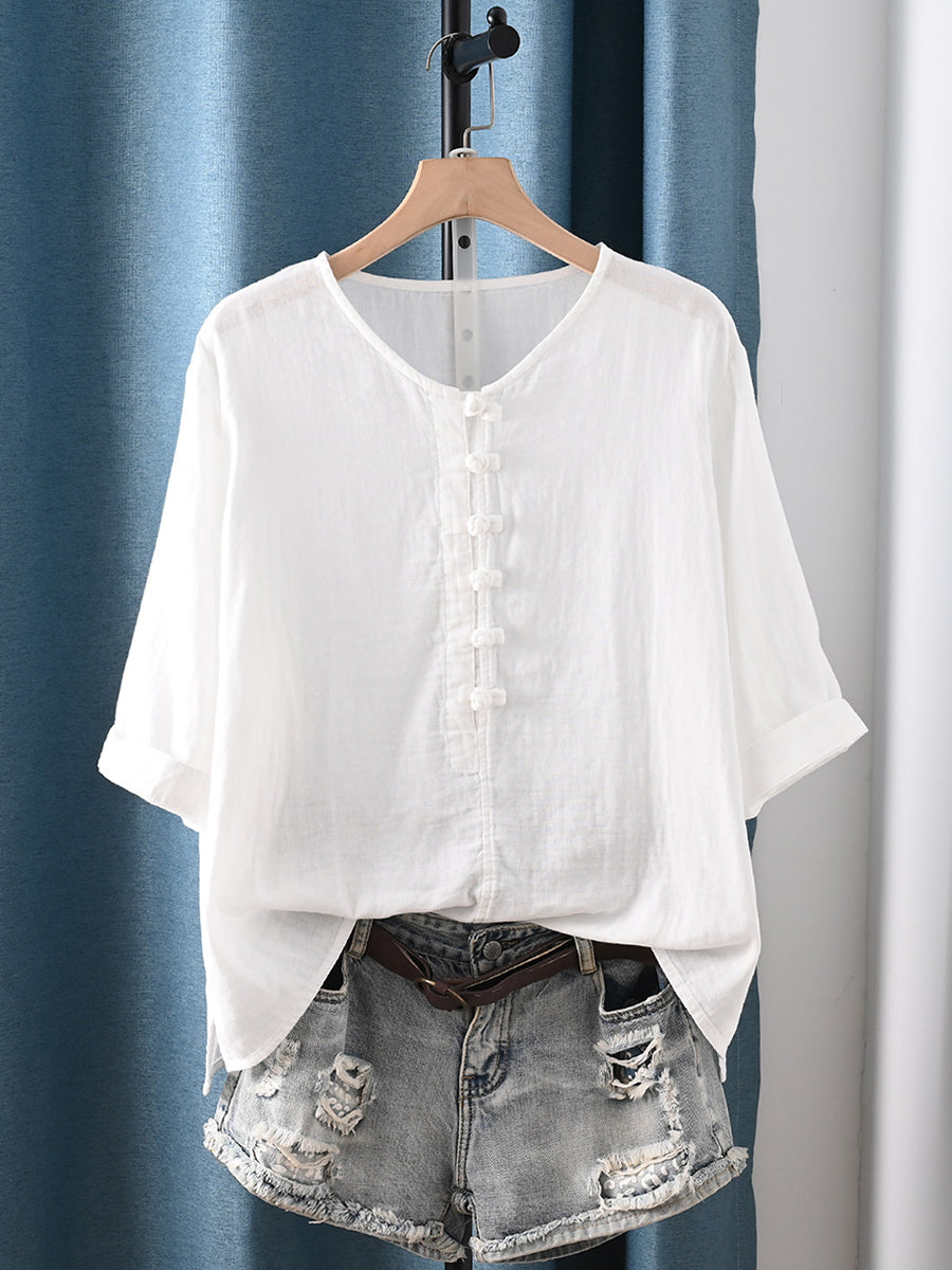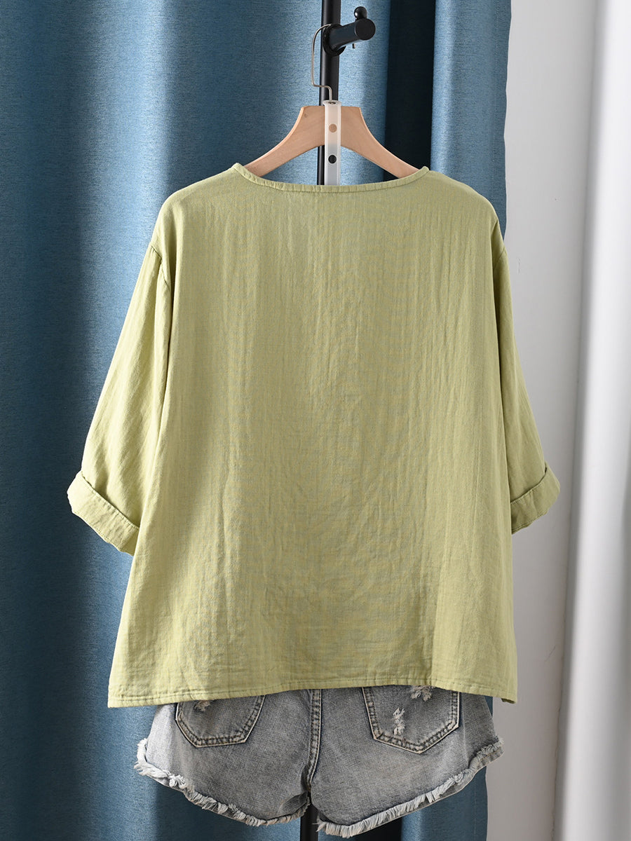 Kvinder Sommer Retro Ren Farve 100% Bomuld Bluse