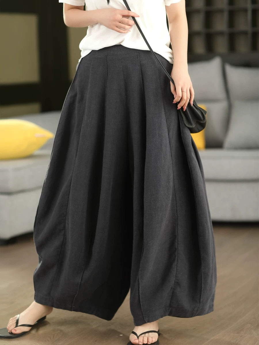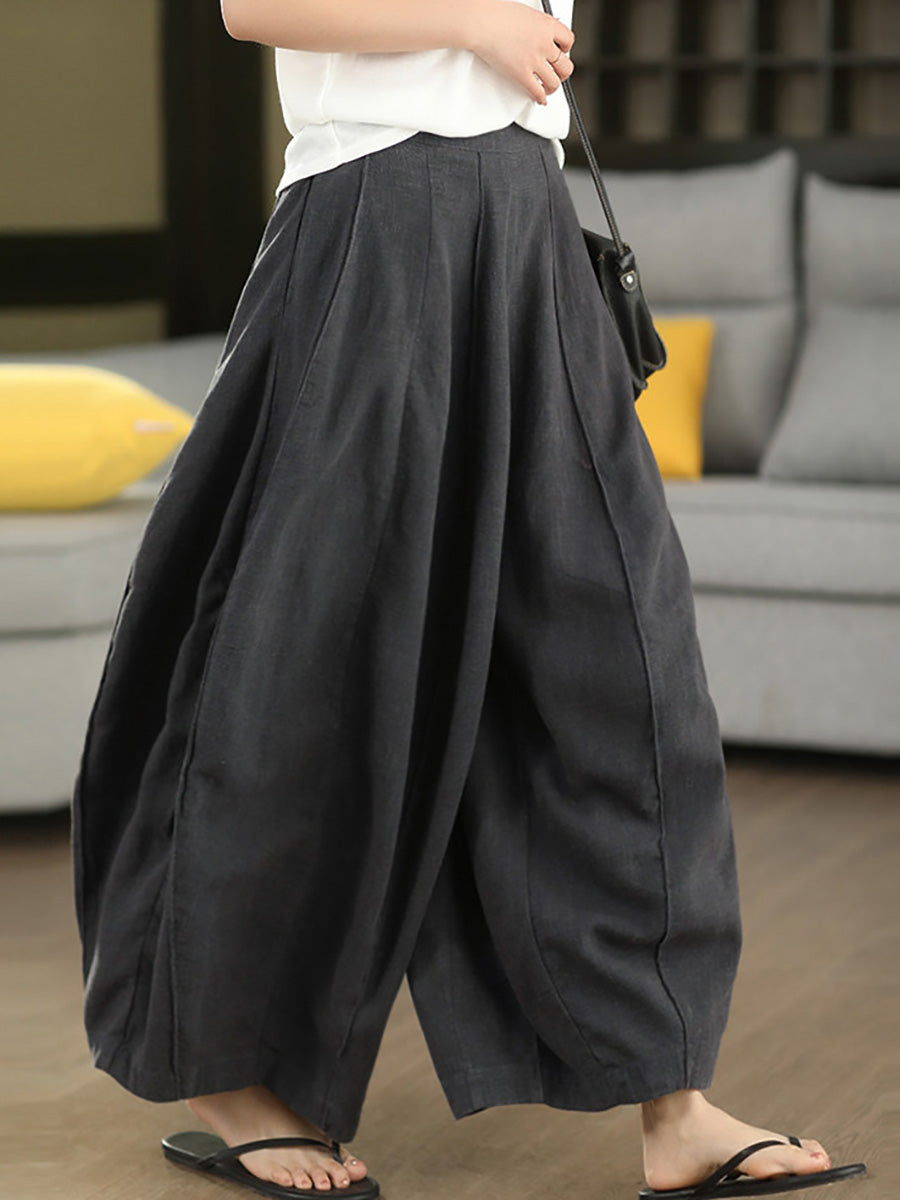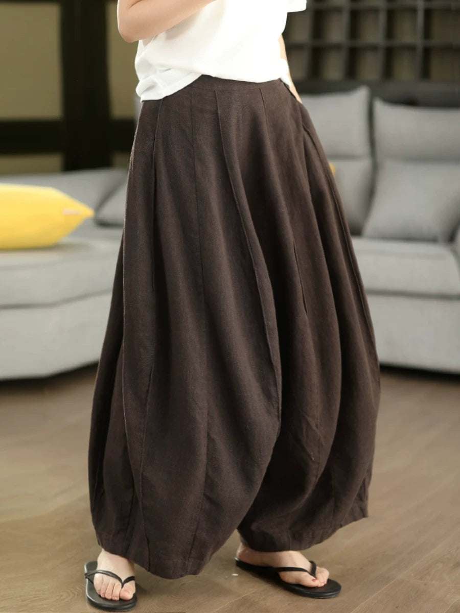 Kvinder Summer Retro Pure Color Ramie Blommers