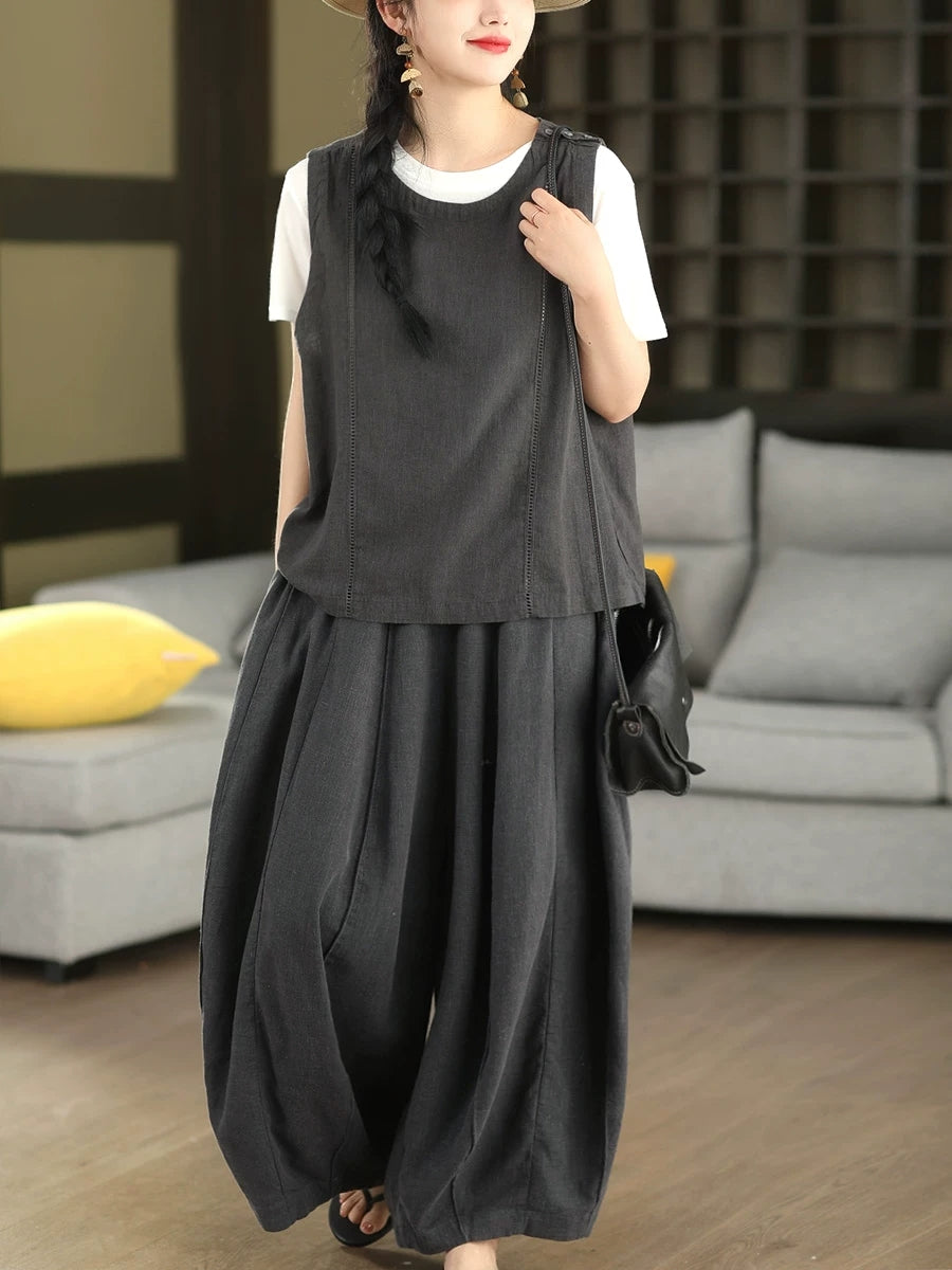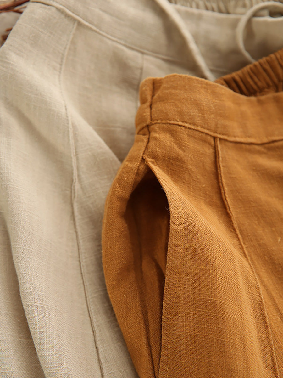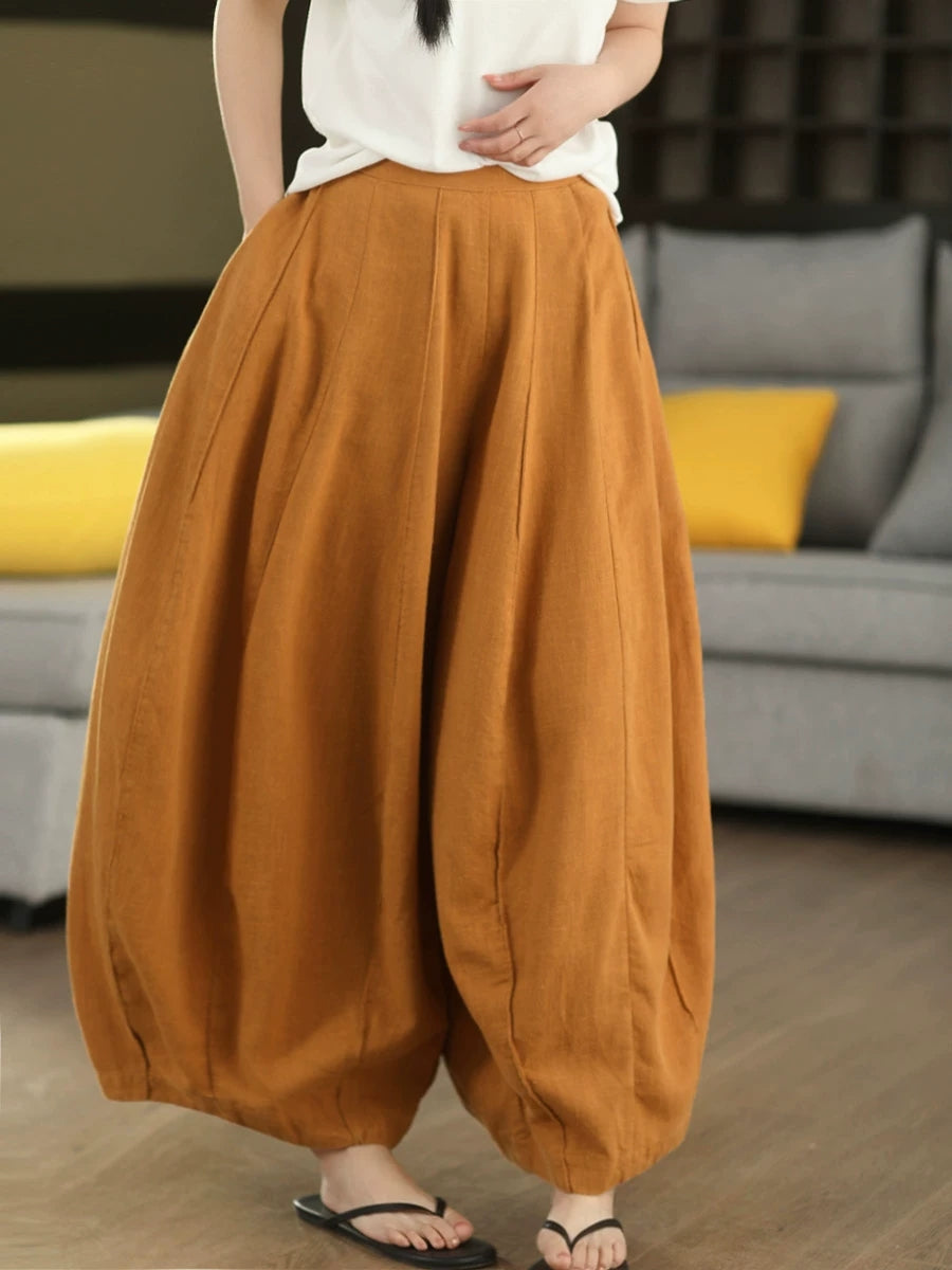 Kvinder Summer Retro Pure Color Ramie Blommers