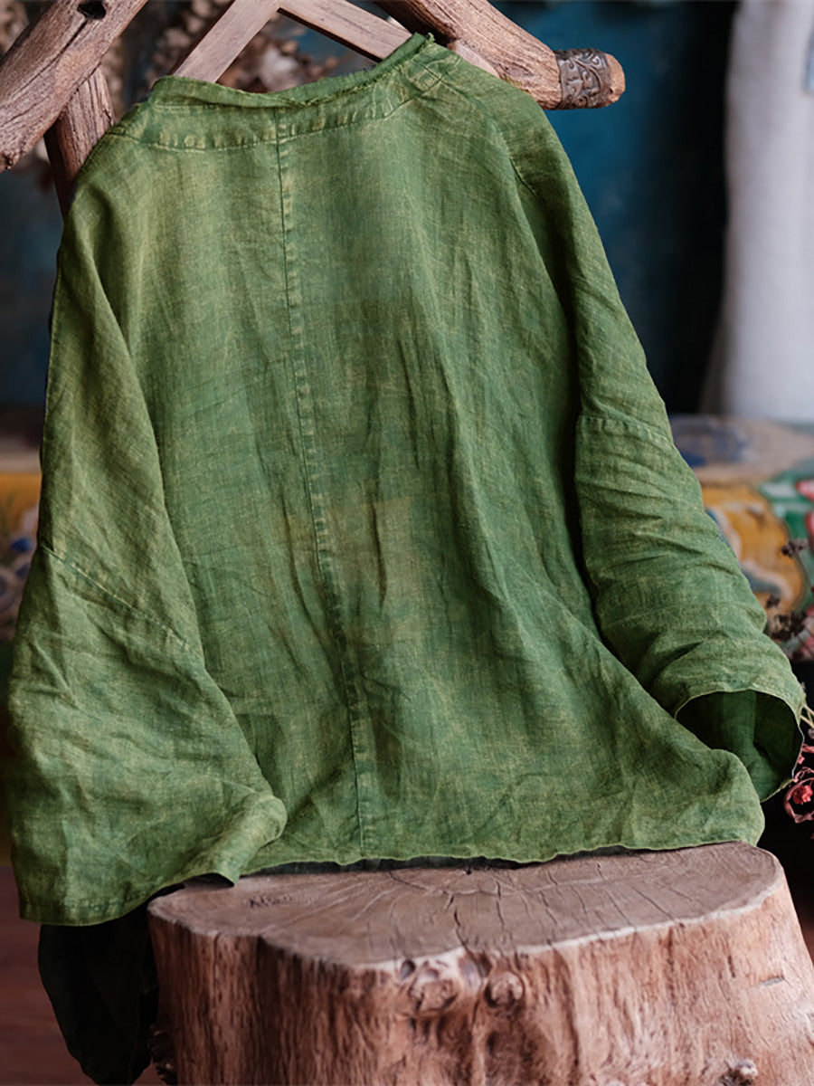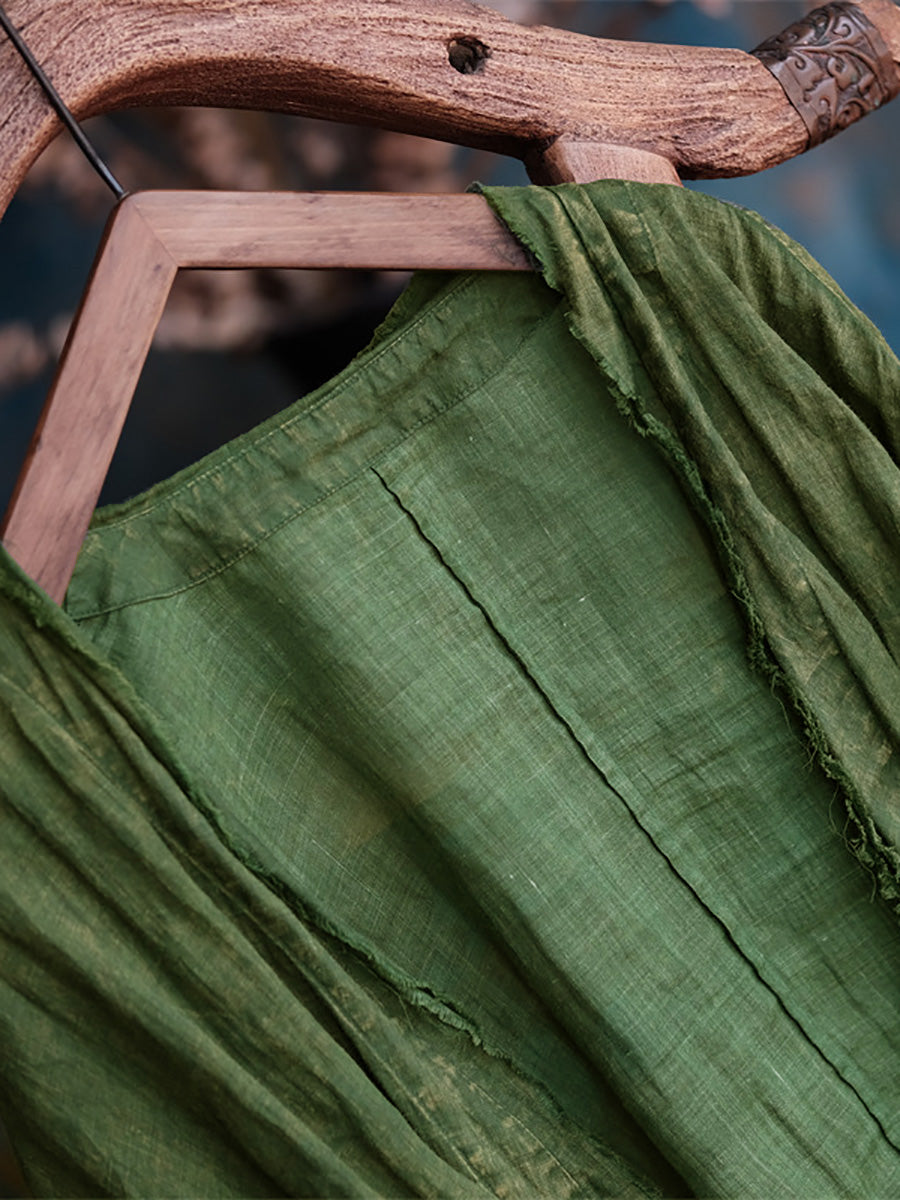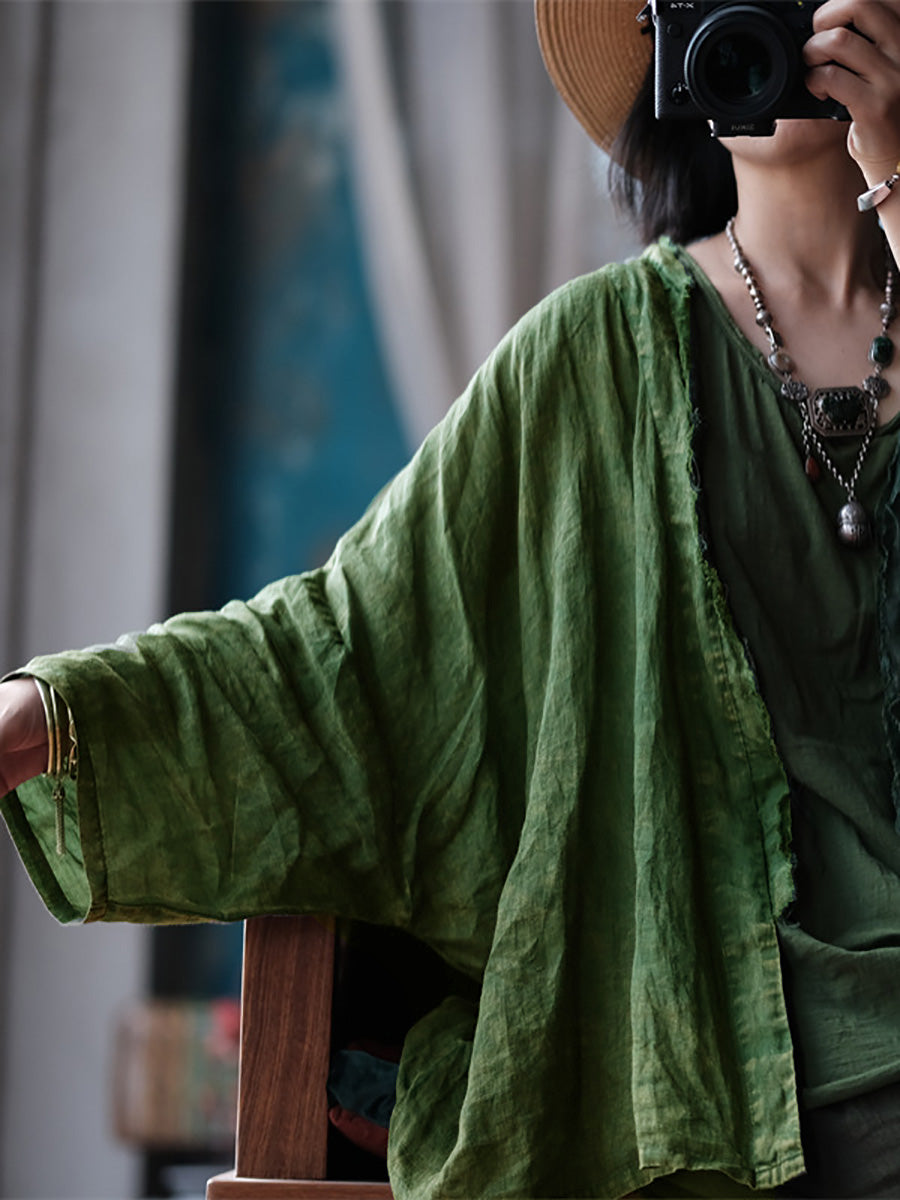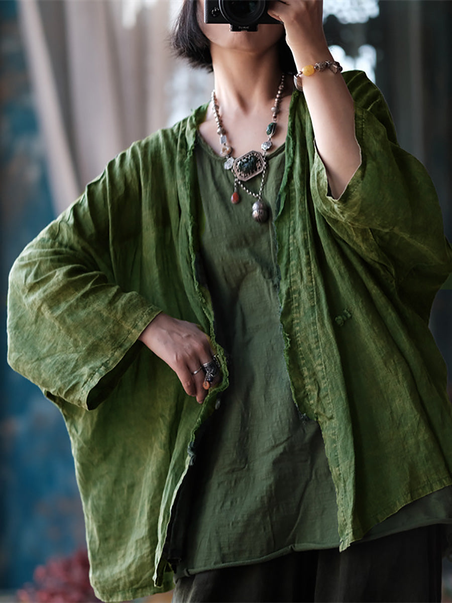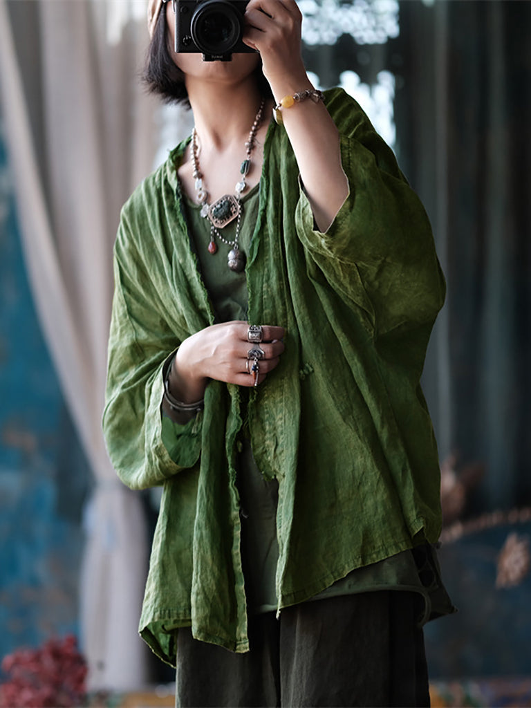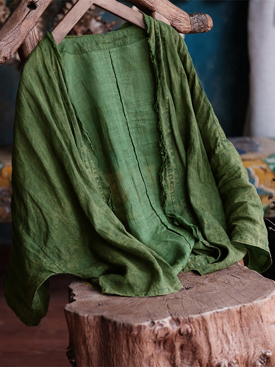Kvinder Sommer Retro slidt Raw-edge Ramie Shirt Coat