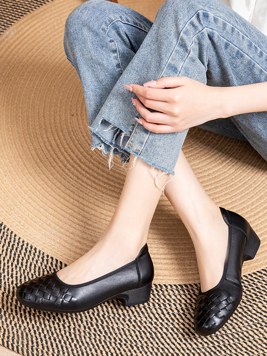 Kvinder Sommer Bløde Lædervævede Mellemhælesko