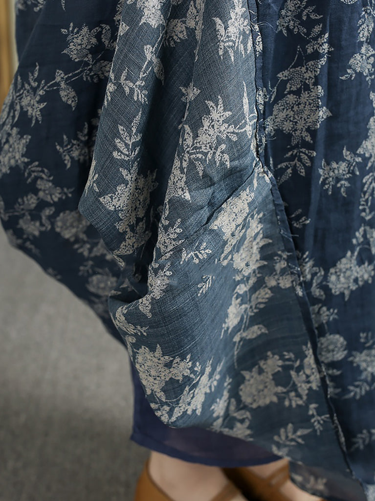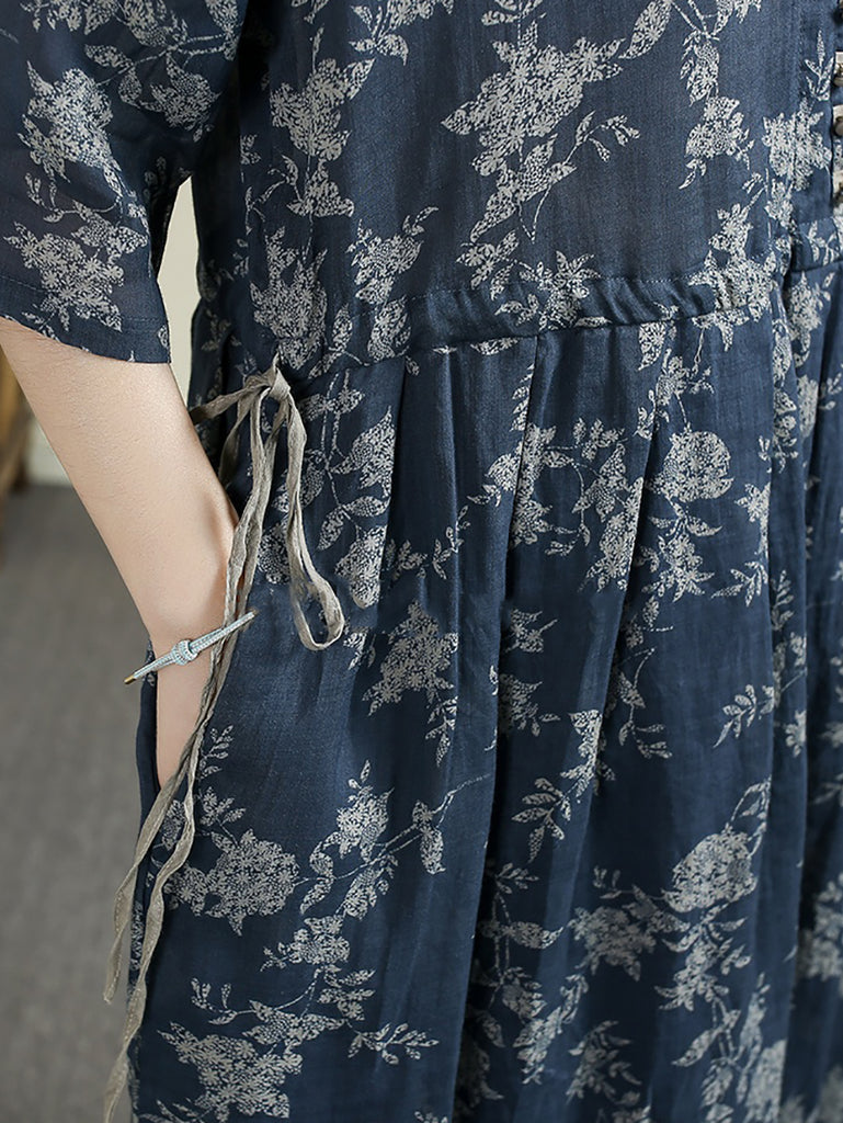 Kvinder Sommer Vintage Blomster V-hals 100% Ramie Kjole