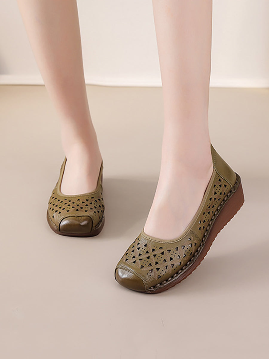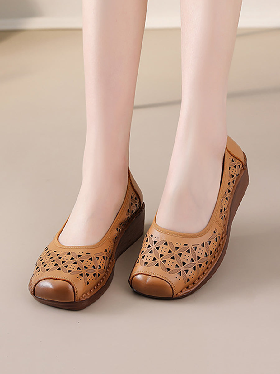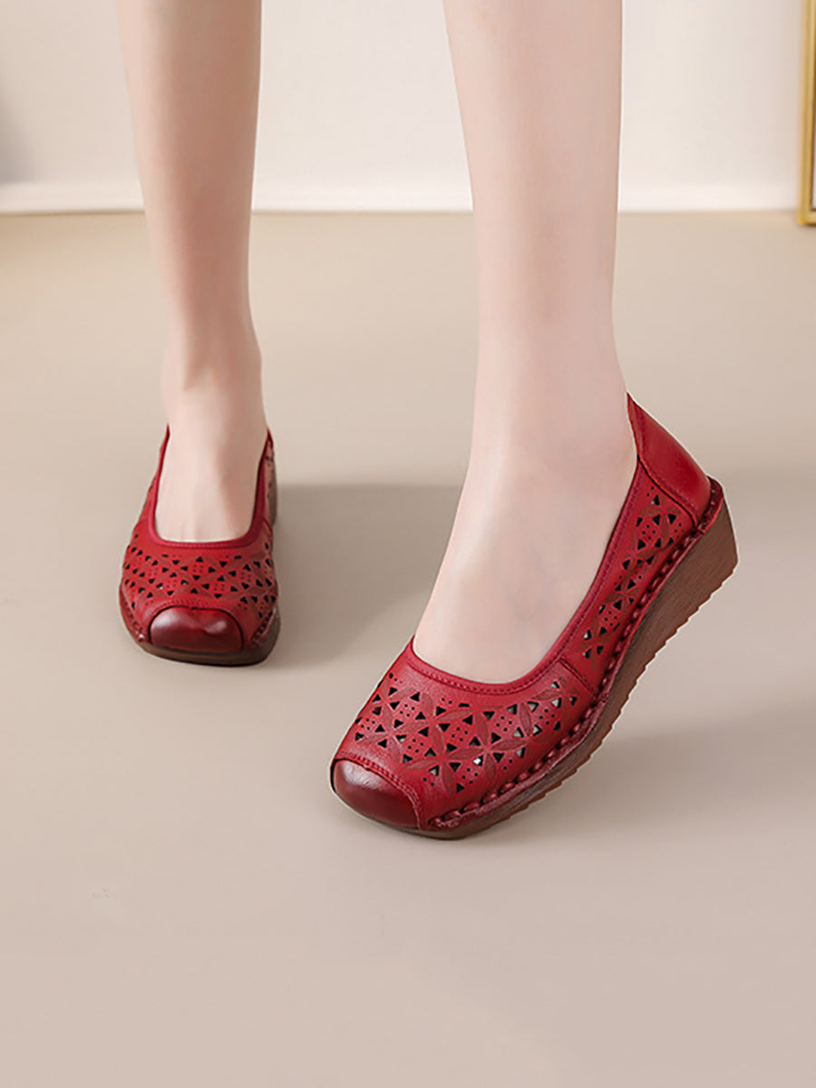 Kvinder Sommer Vintage Ægte Læder Platformsko