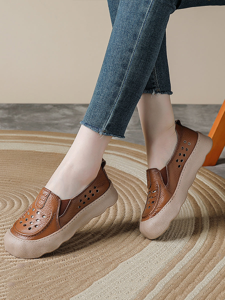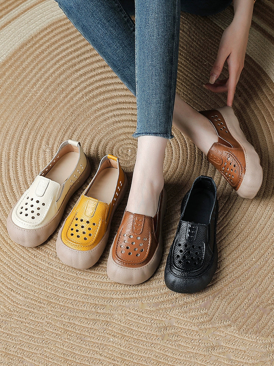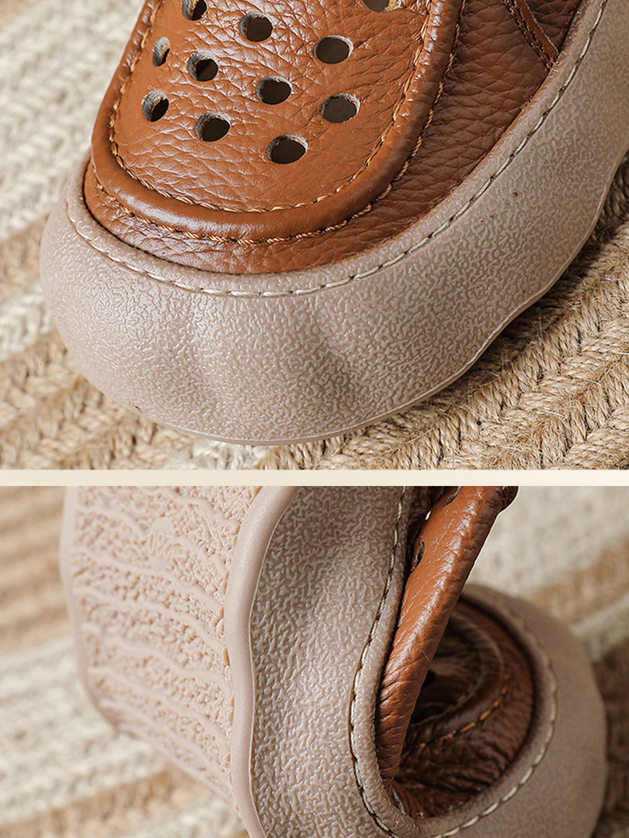Kvinder Sommer Vintage Ægte Læder Vævede Hjemmesko