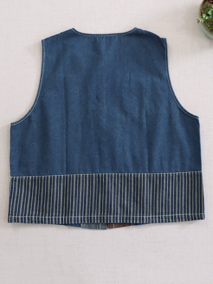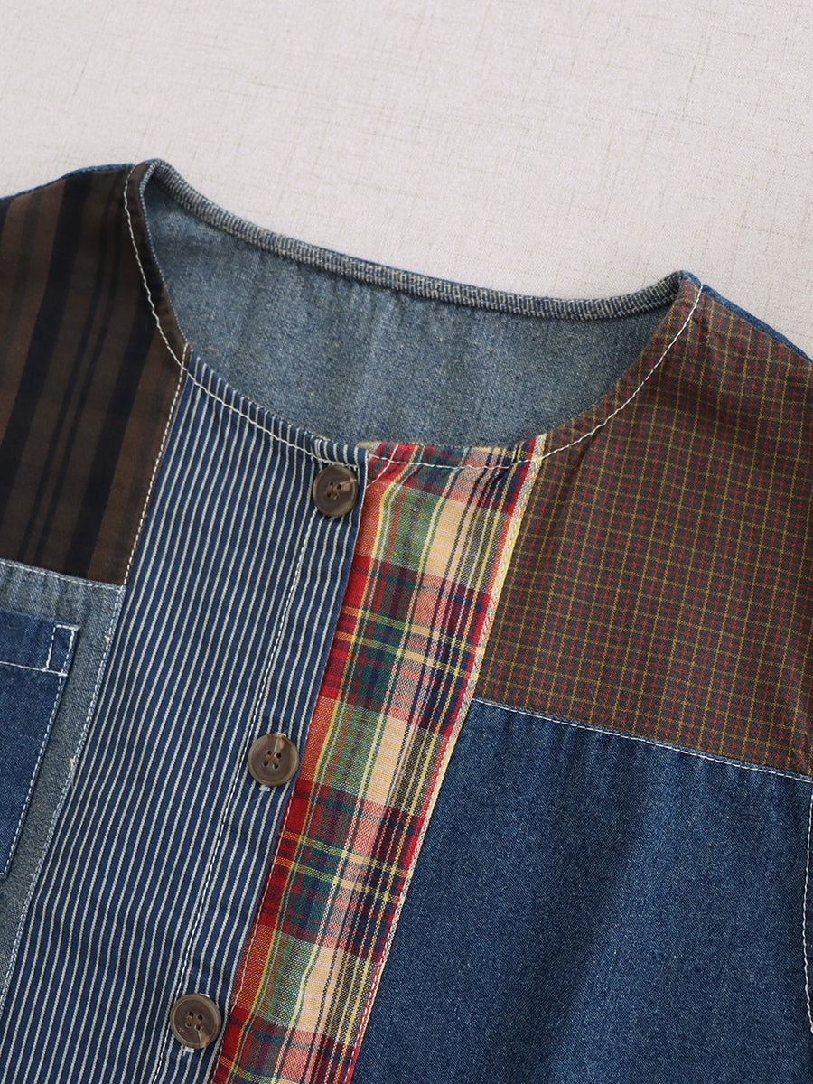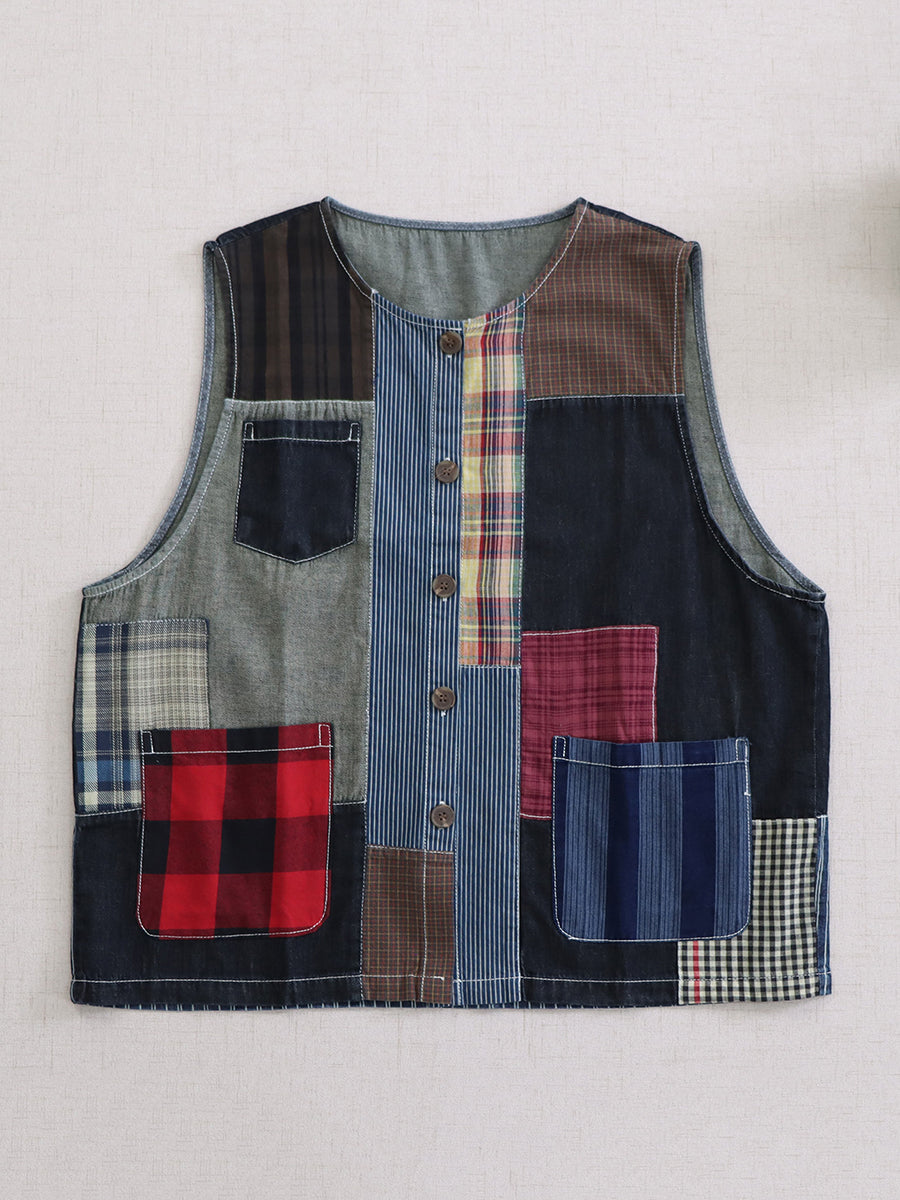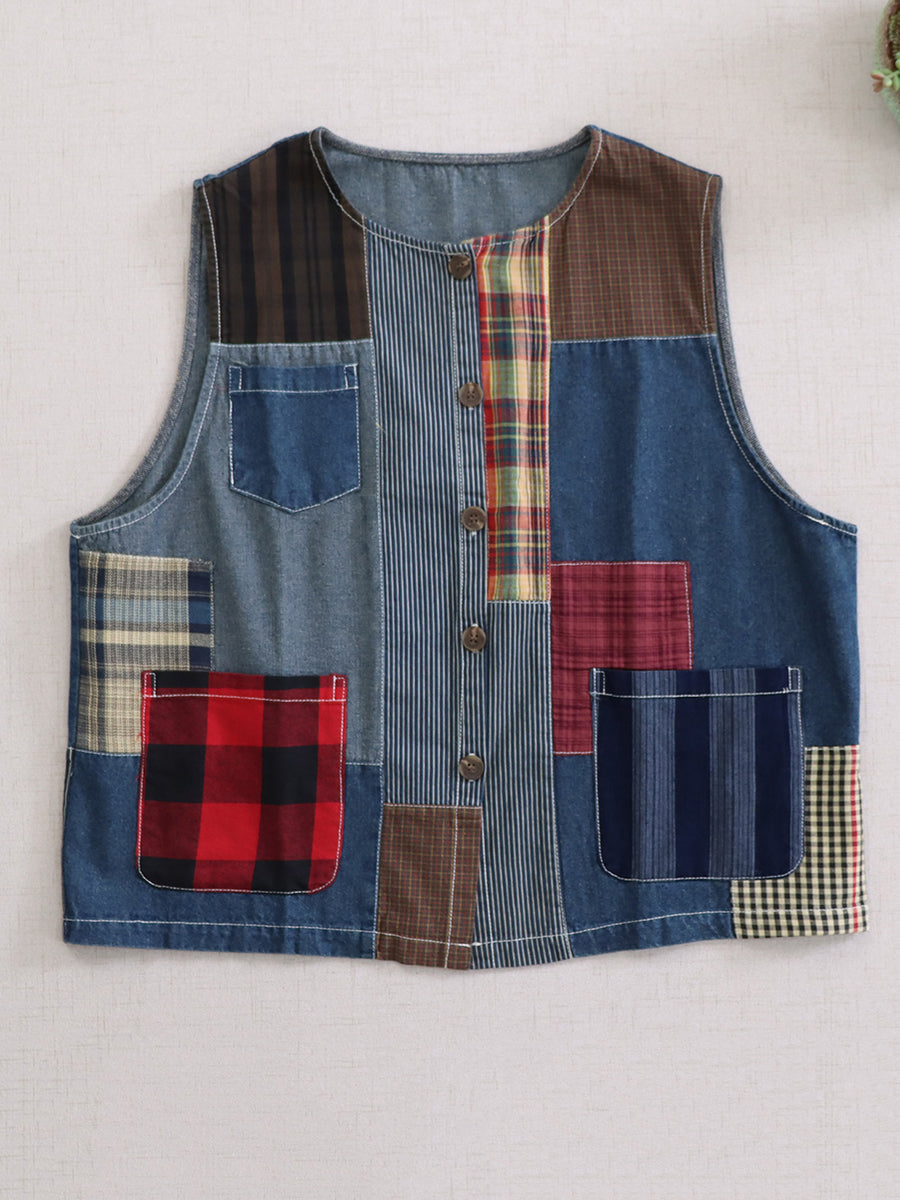 Kvinder Sommer Vintage Patchwork Bomuld O-Hals Vest