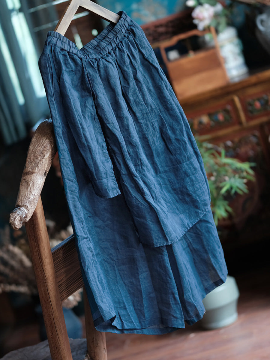 Lavet af 100 % Ramie-materiale, disse Summer Vintage Solid Spliced Wide-leg bukser til kvinder har en retrostil med en elastisk talje og et design i fuld længde. Perfekt til forårs- og sommersæsoner.