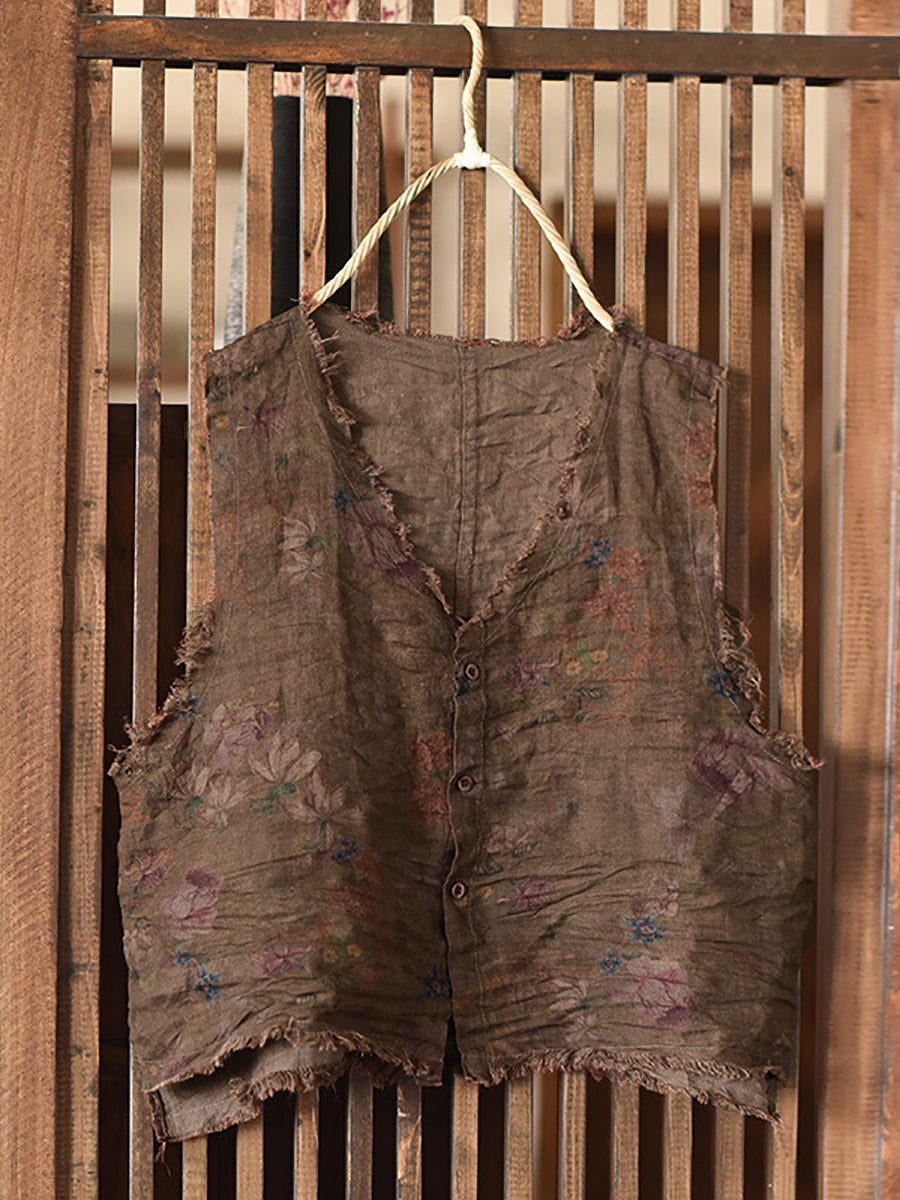 Kvinder Vintage Blomster Button-up Raw-edge Linned Vest