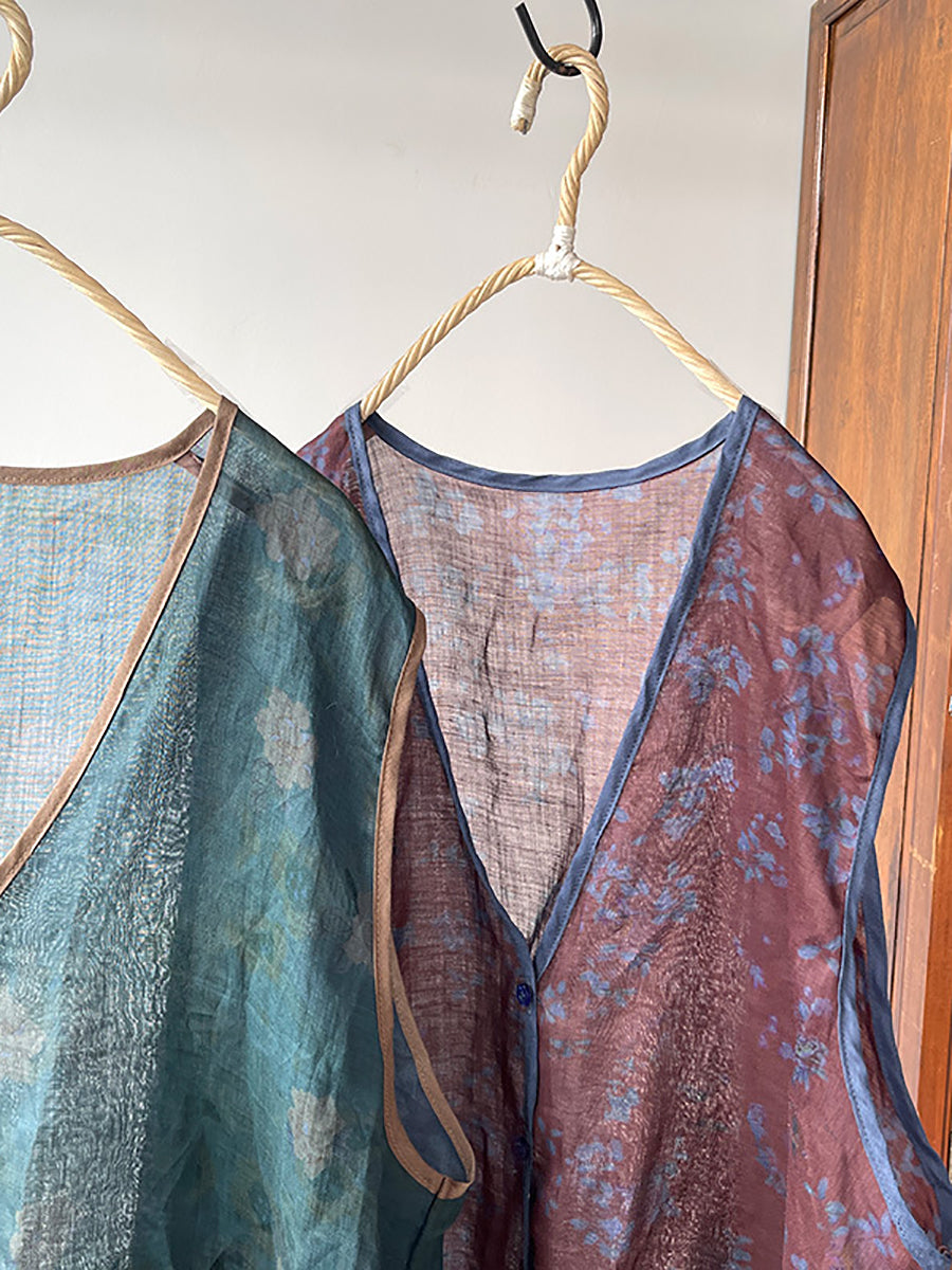 Kvinder vintage blomsterprint Ramie Vest