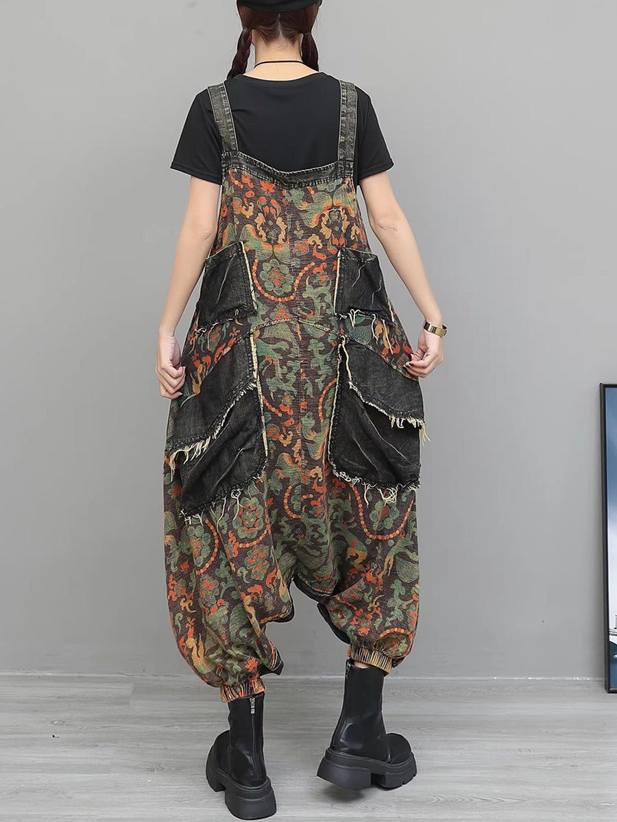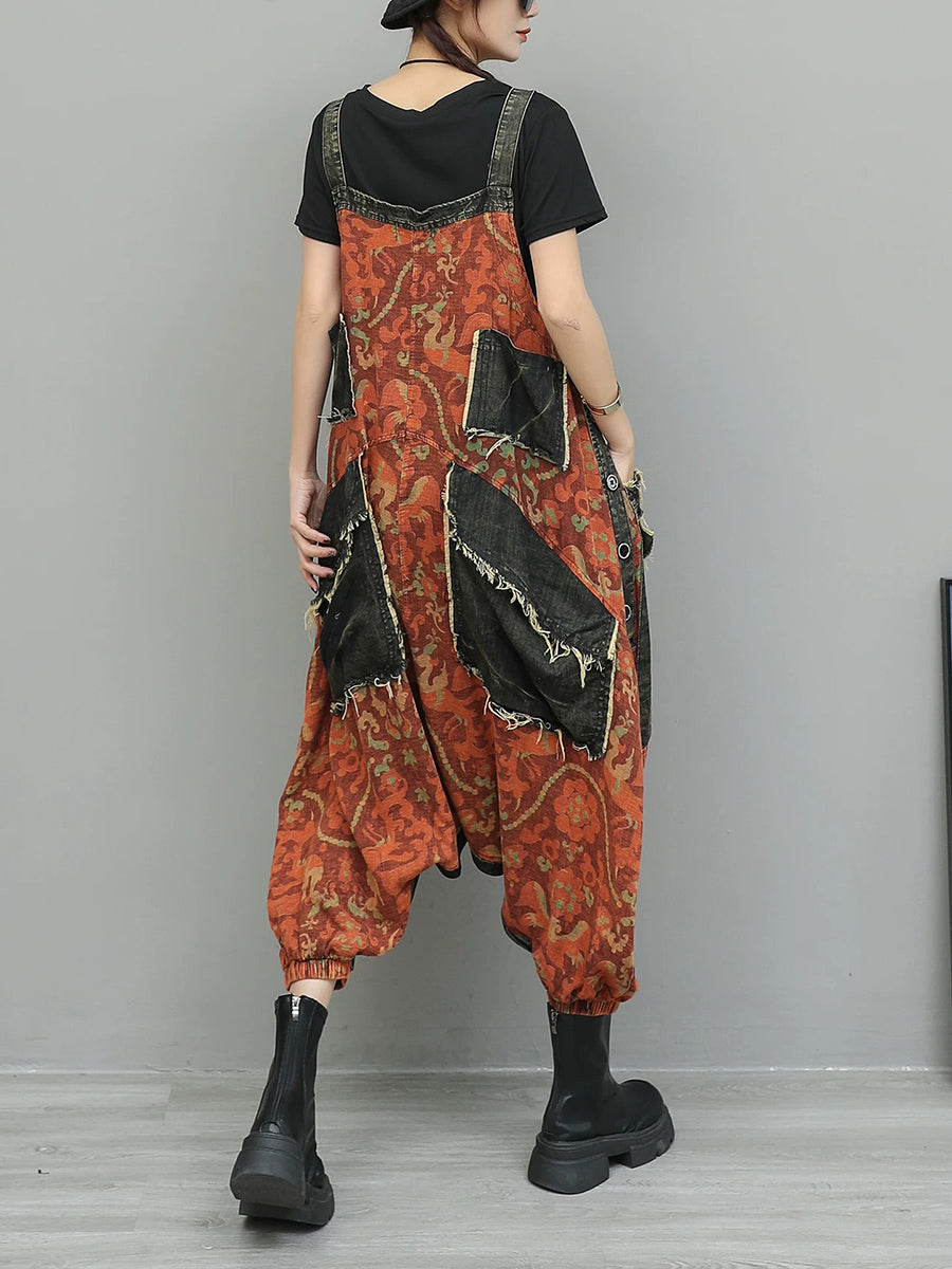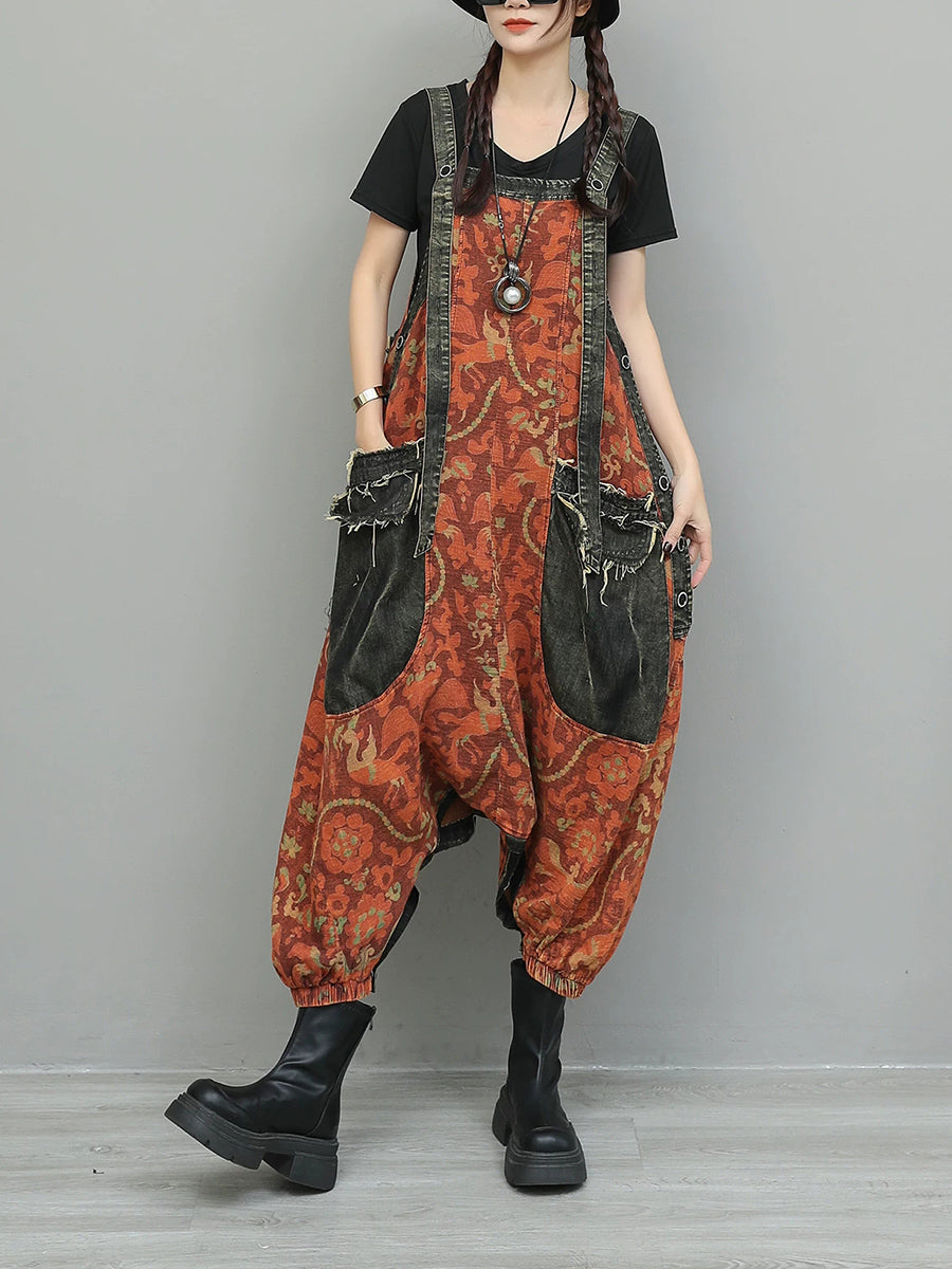 Kvinder Vintage Blomster Spliced Denim Jumpsuits