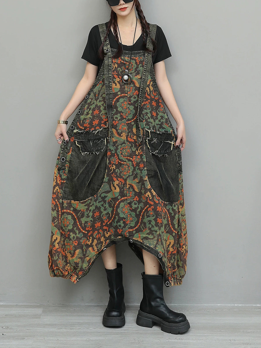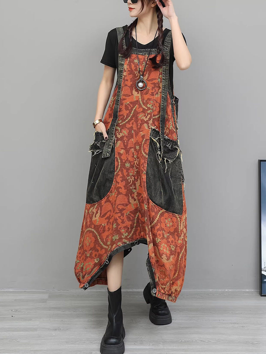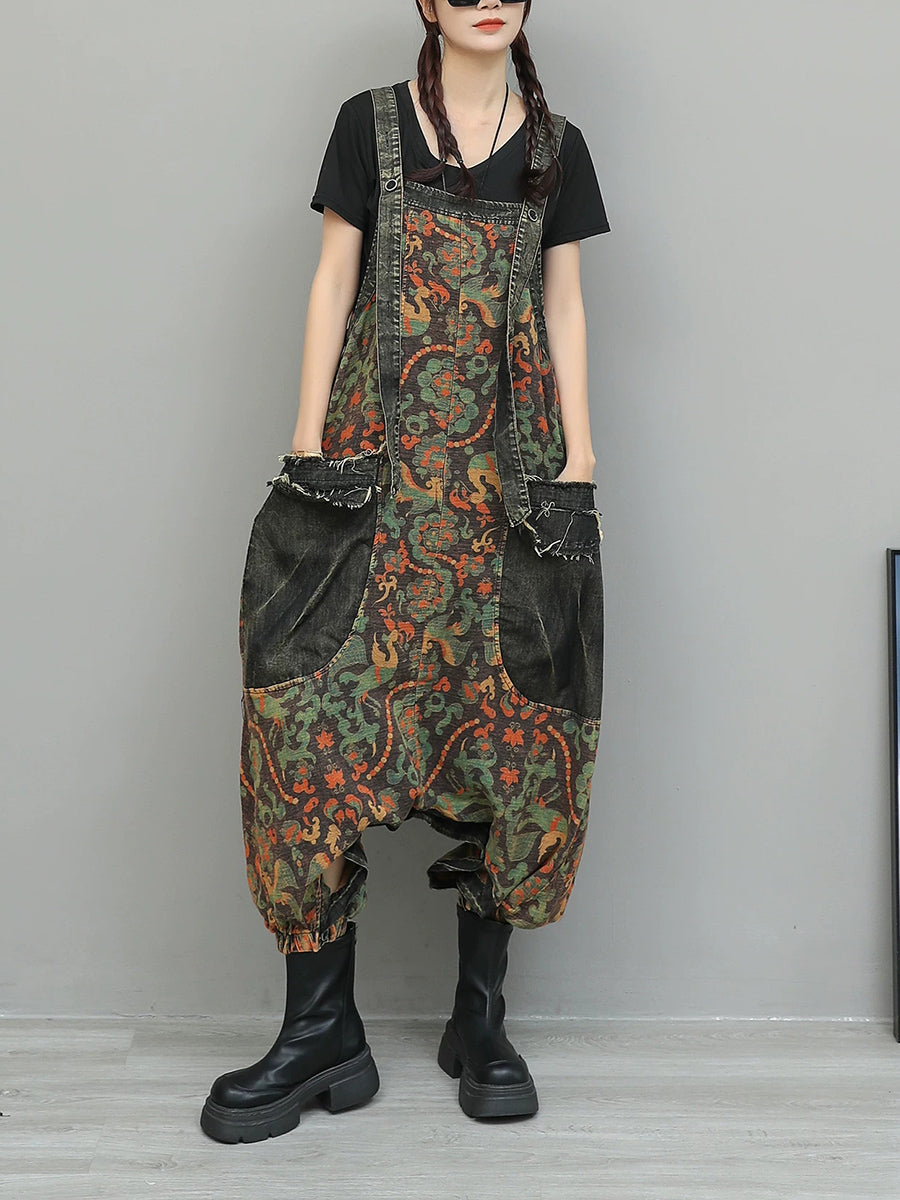 Kvinder Vintage Blomster Spliced Denim Jumpsuits