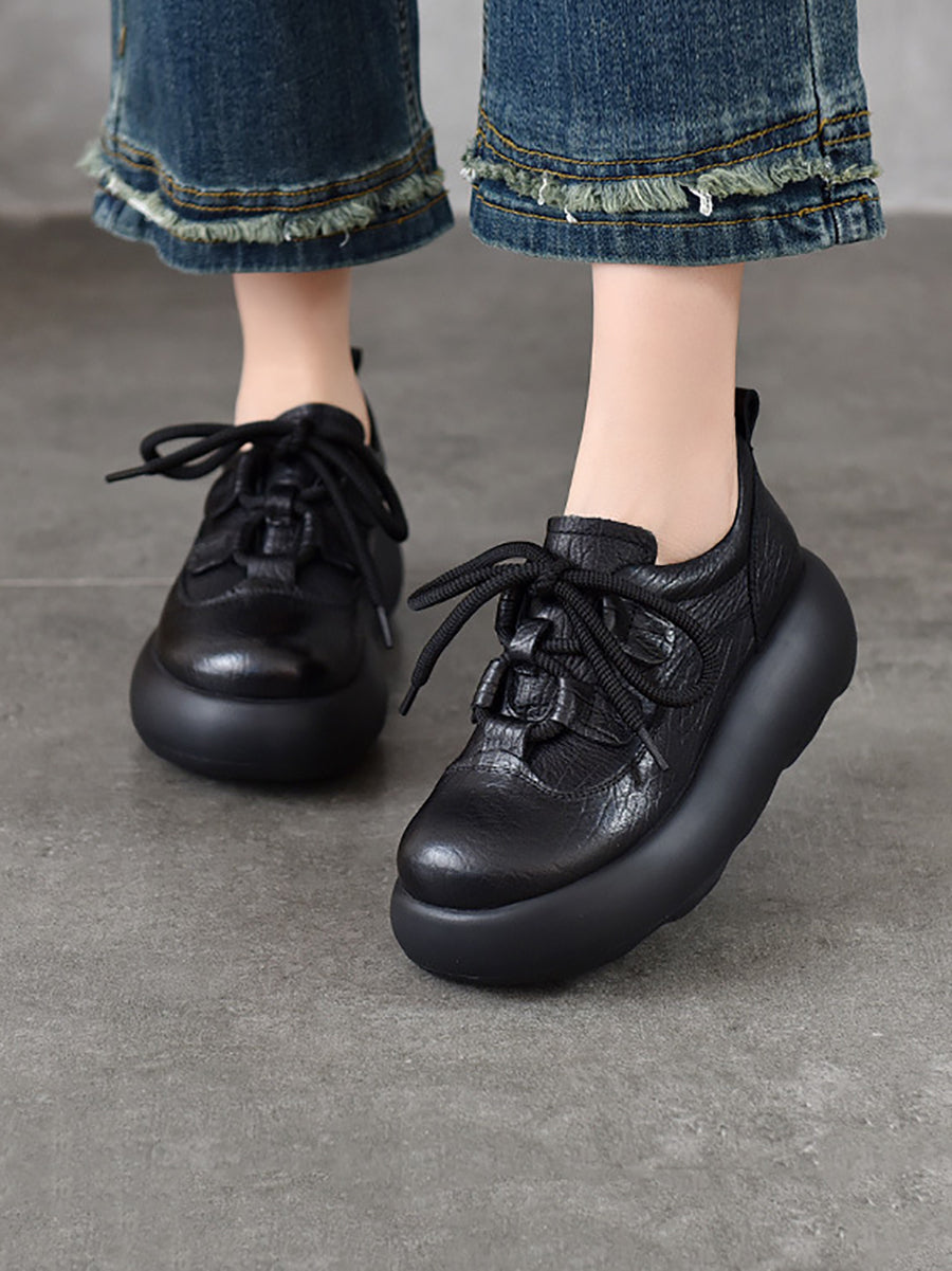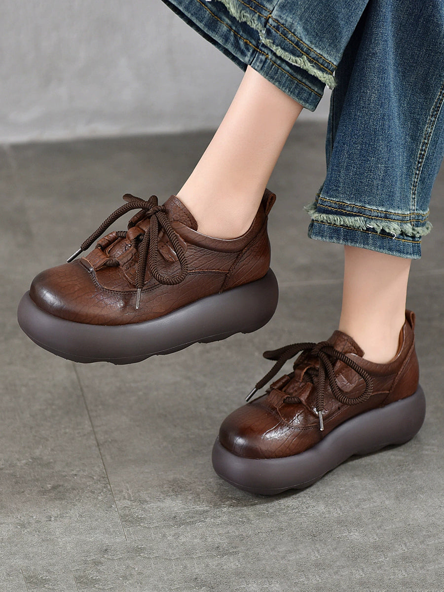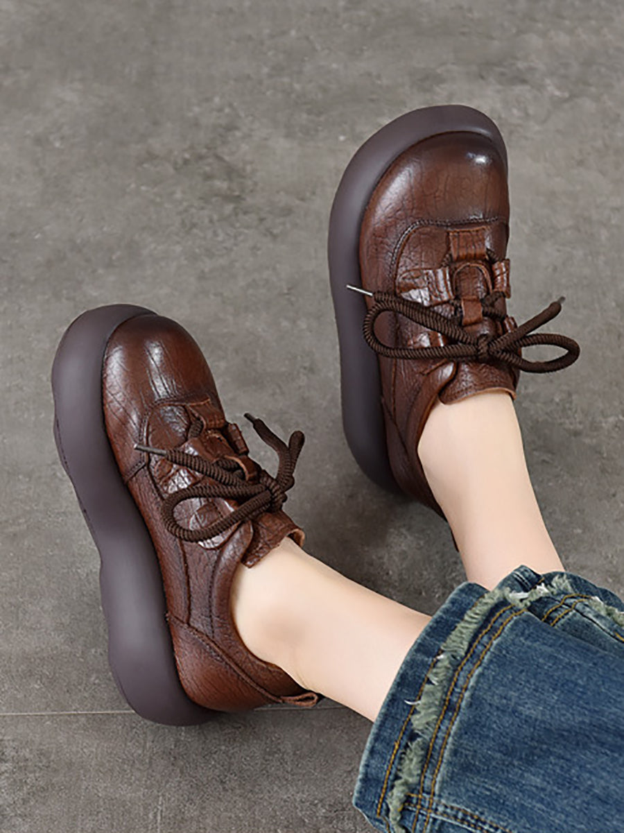 Dame Vintage Plateausko i Ægte Læder
