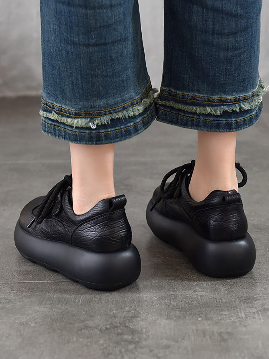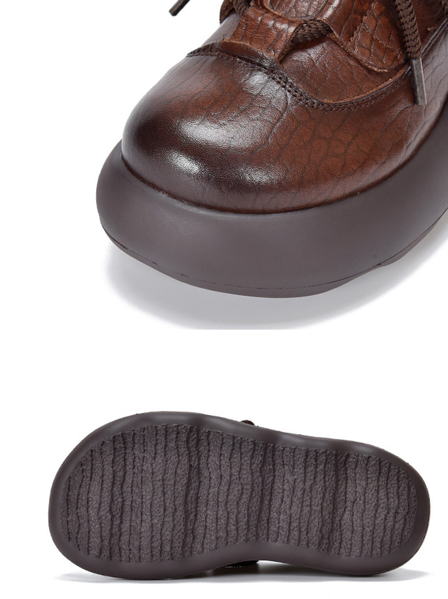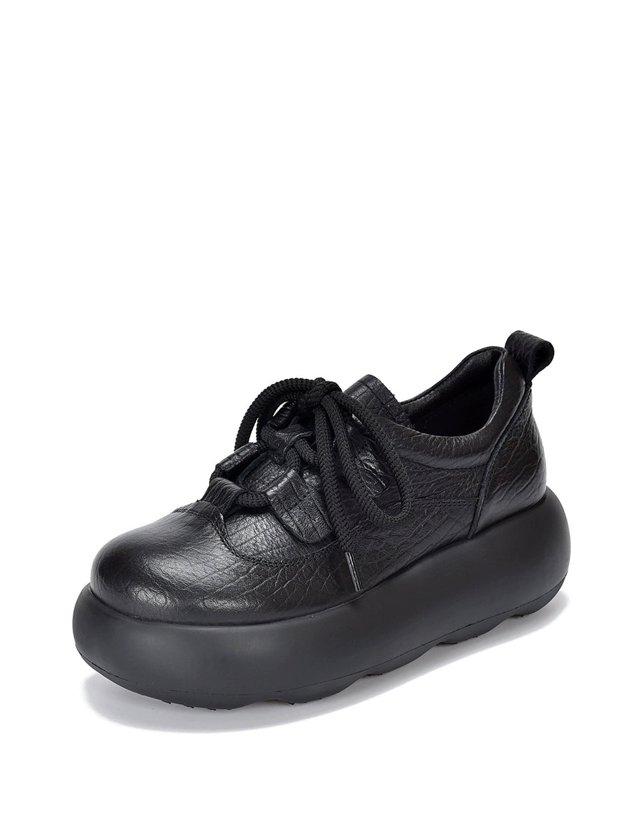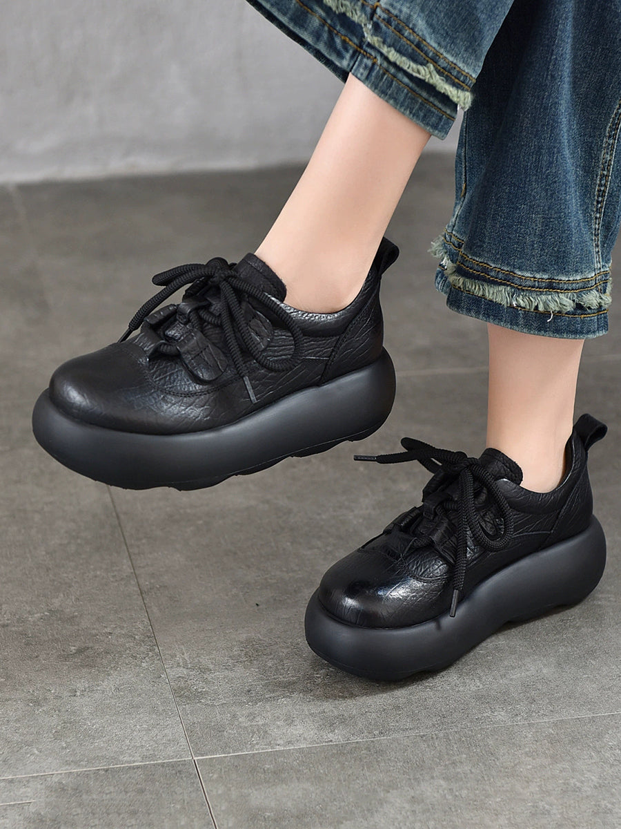 Dame Vintage Plateausko i Ægte Læder