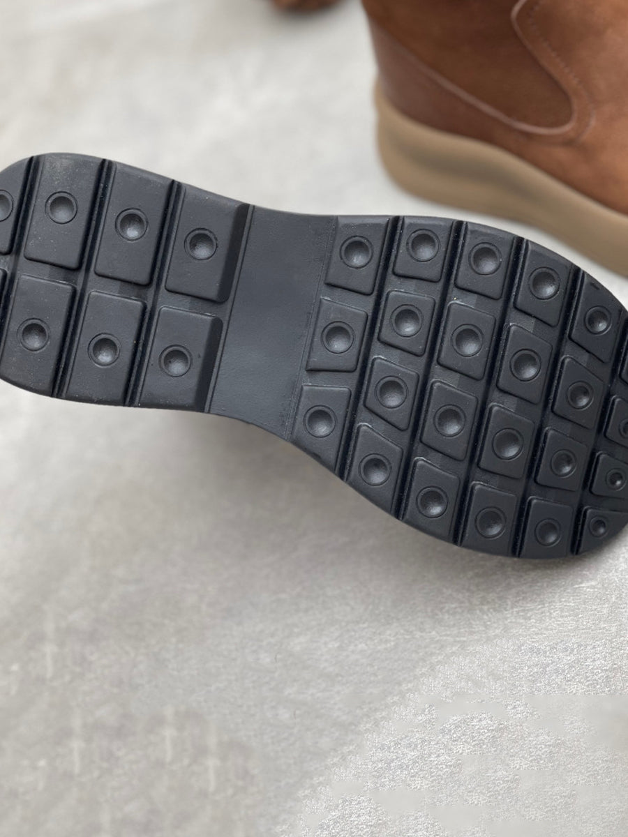 Dame vintage ægte læder fleeceforede platformstøvler